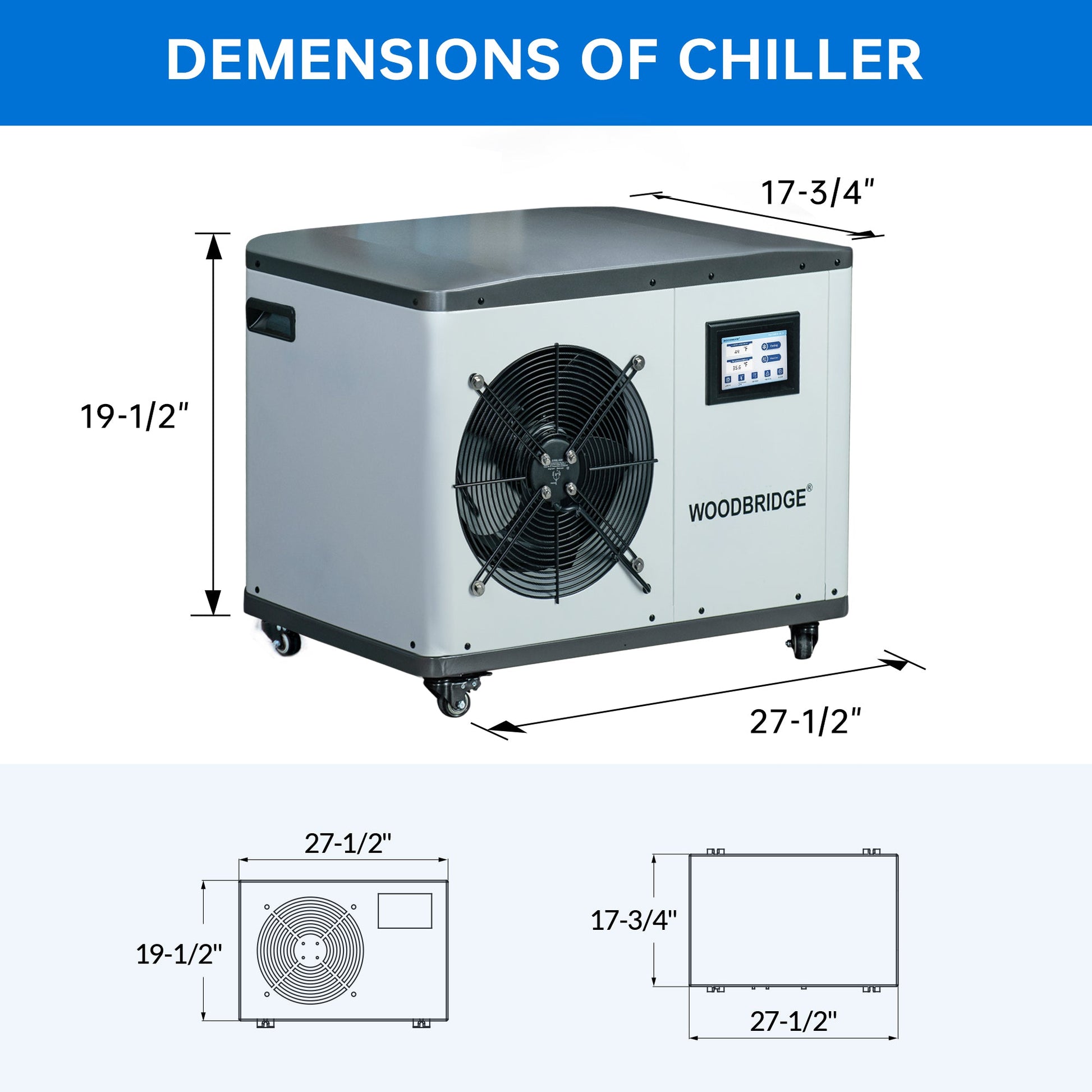 WOODBRIDGE 1.3HP Portable Chiller with Touch Screen Control Panel and Reusable Stainless Steel Filter