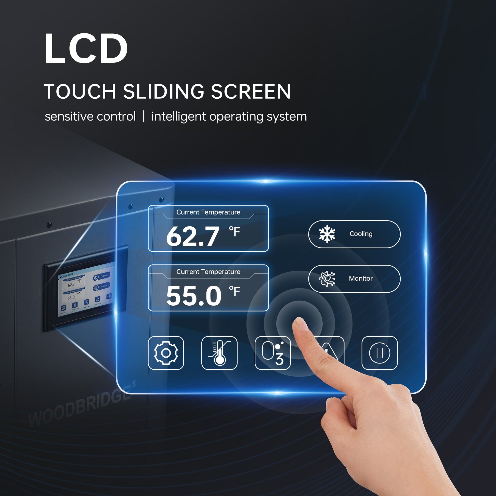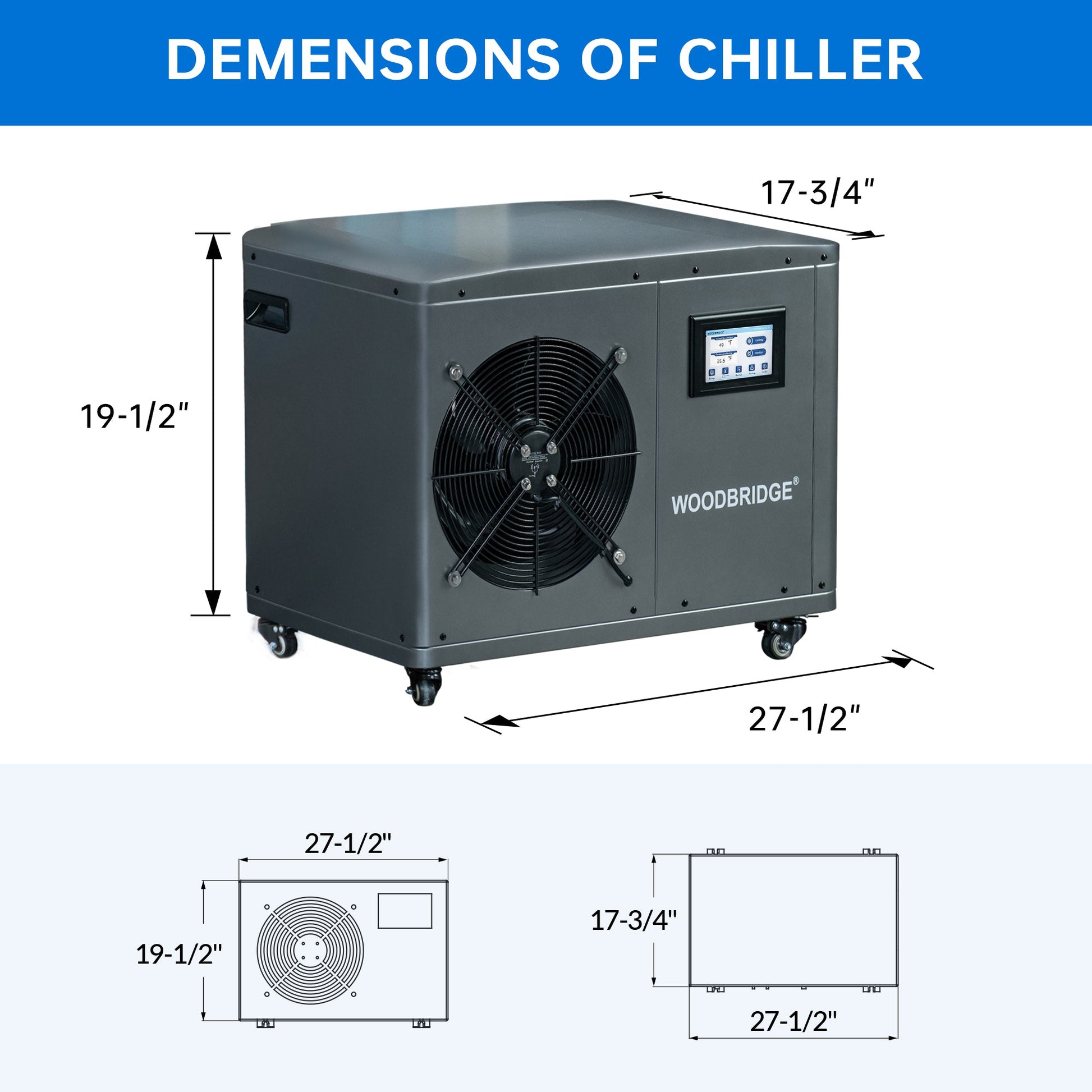 WOODBRIDGE 1.3HP Portable Chiller with Touch Screen Control Panel and Reusable Stainless Steel Filter