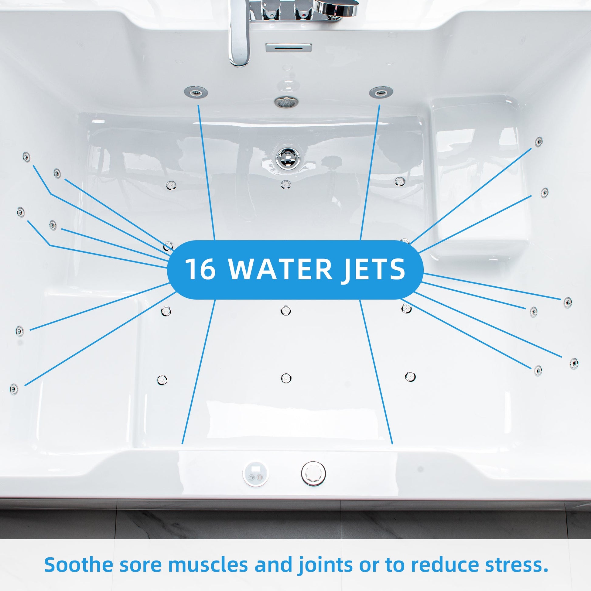 ? [JET QUANTITY]: 12 adjustable body massage jets and 16 whirlpool bubble bath jets for maximum bather comfort, The perfect mix of air and water delivers a powerful, yet comfortable hydro massage.