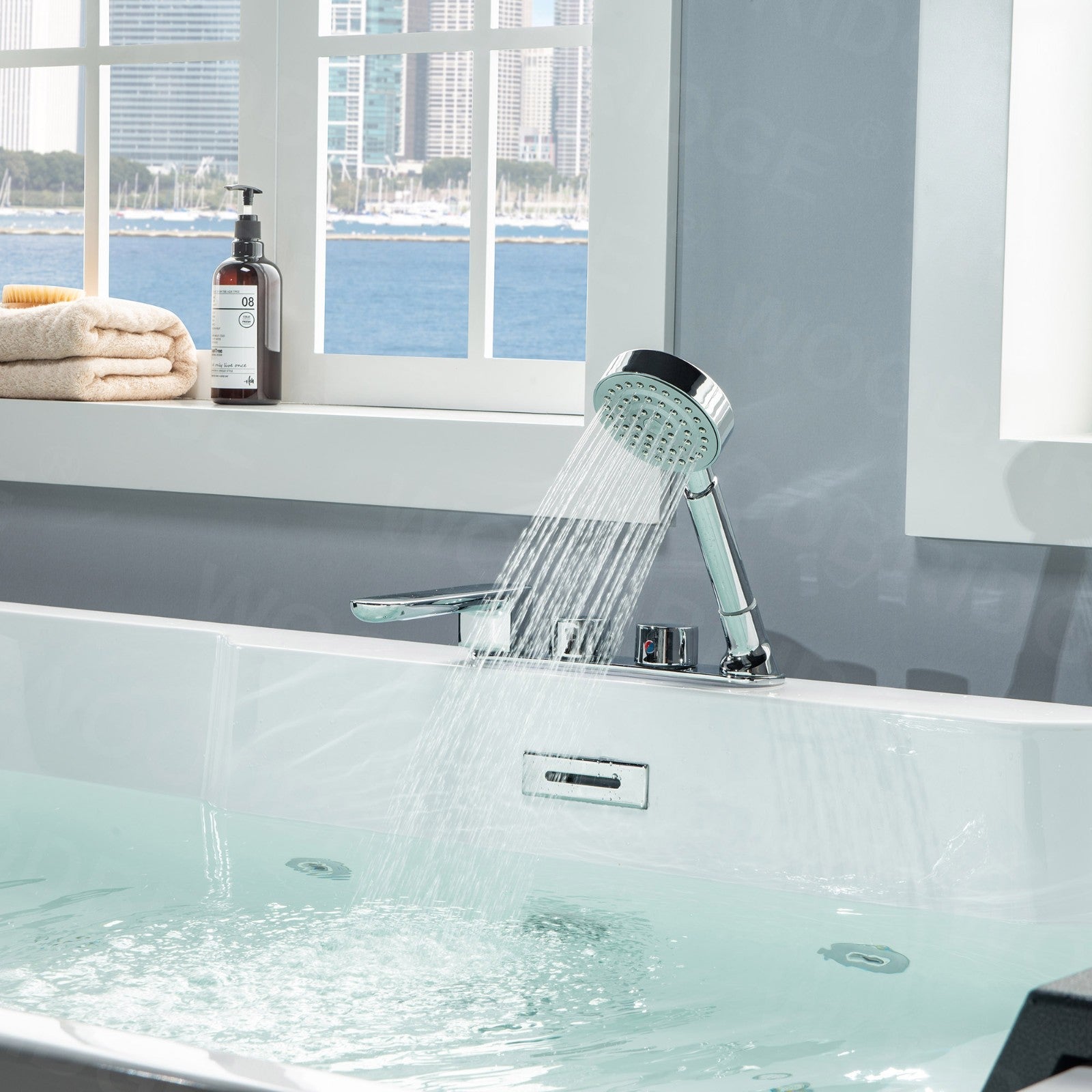 ? [PACKAGE CONTENT]: Massage Bathtub x 1, Pre-Installed Sealed Drain x 1, Deck Mount Faucet and Hand Shower x 1, User Manual x 1, Pillow x 1. All of them packed in a wooden crate.