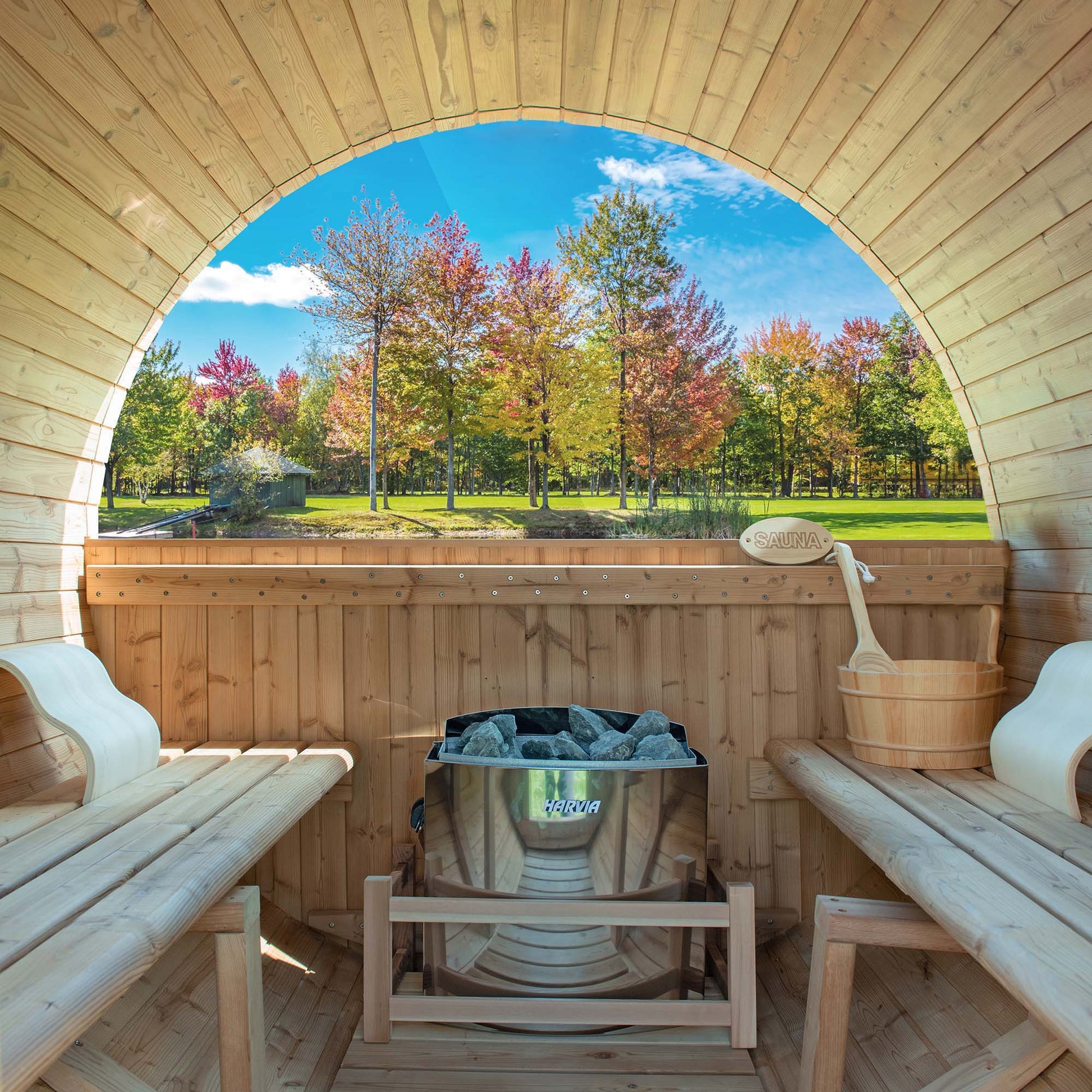 [BARREL FOR BETTER CIRCULATION]: the heat gets circulated back down along the curved walls instead of pooling near the top, this creates a constant flow of evenly distributed heat throughout the sauna.