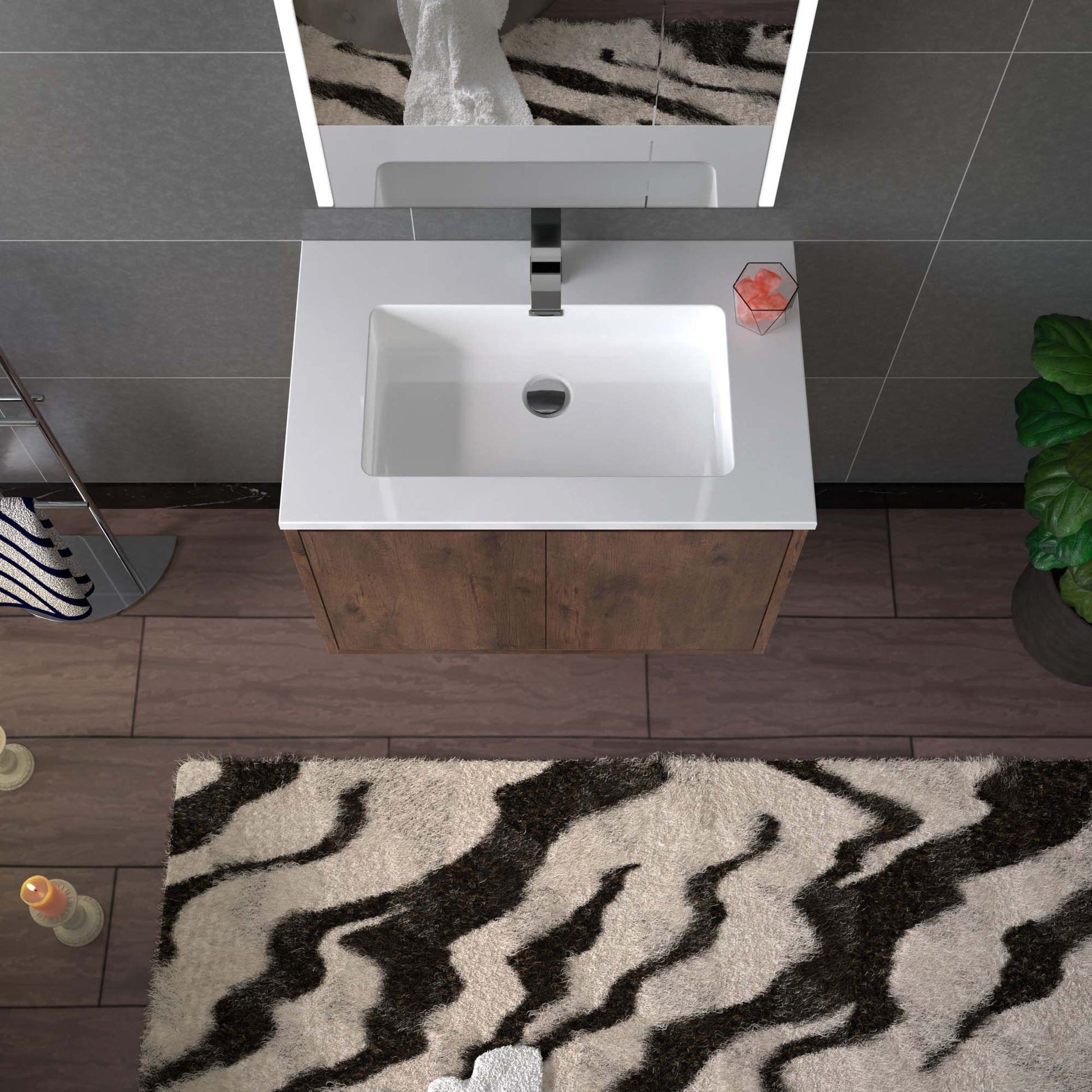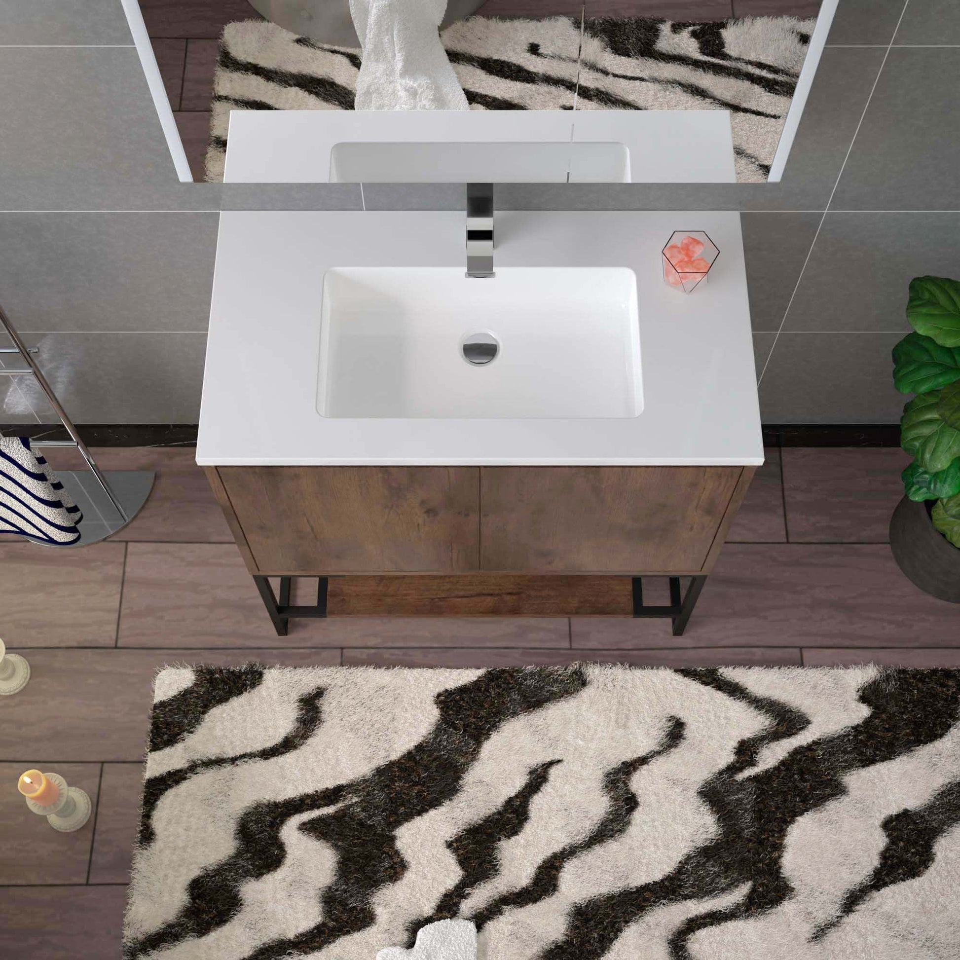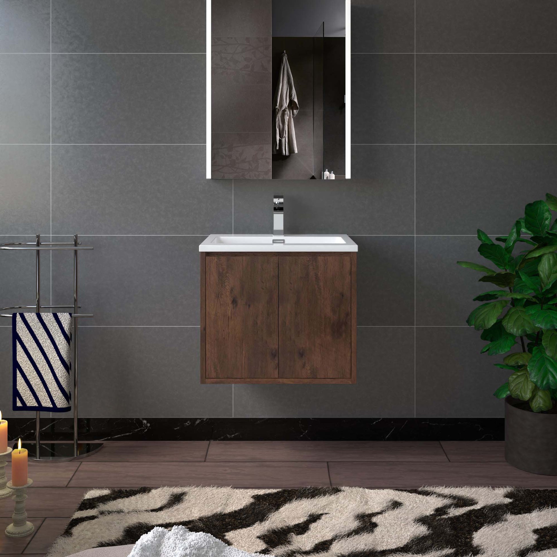 WOODBRIDGE 23-5/8 in. W x 18-7/8 in. D Bathroom Vanity in Rose Wood with Resin Composite Vanity Top in Glossy White, with Stainless Steel Frame