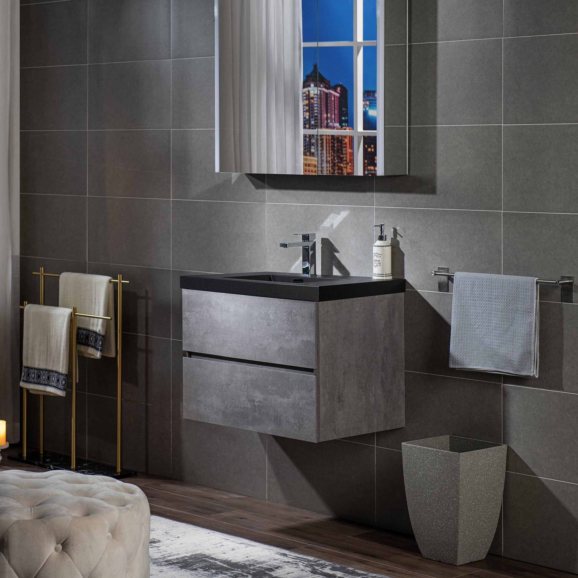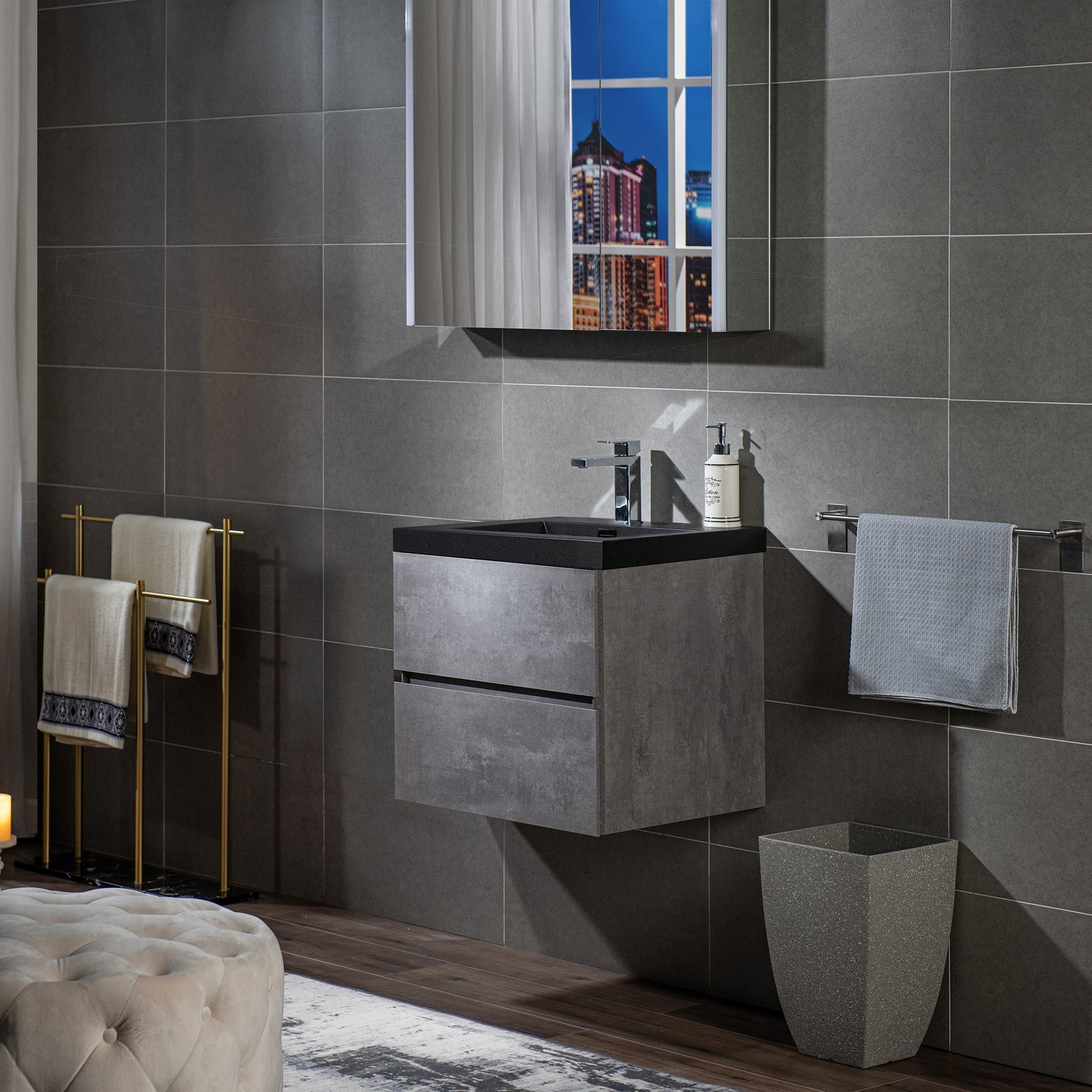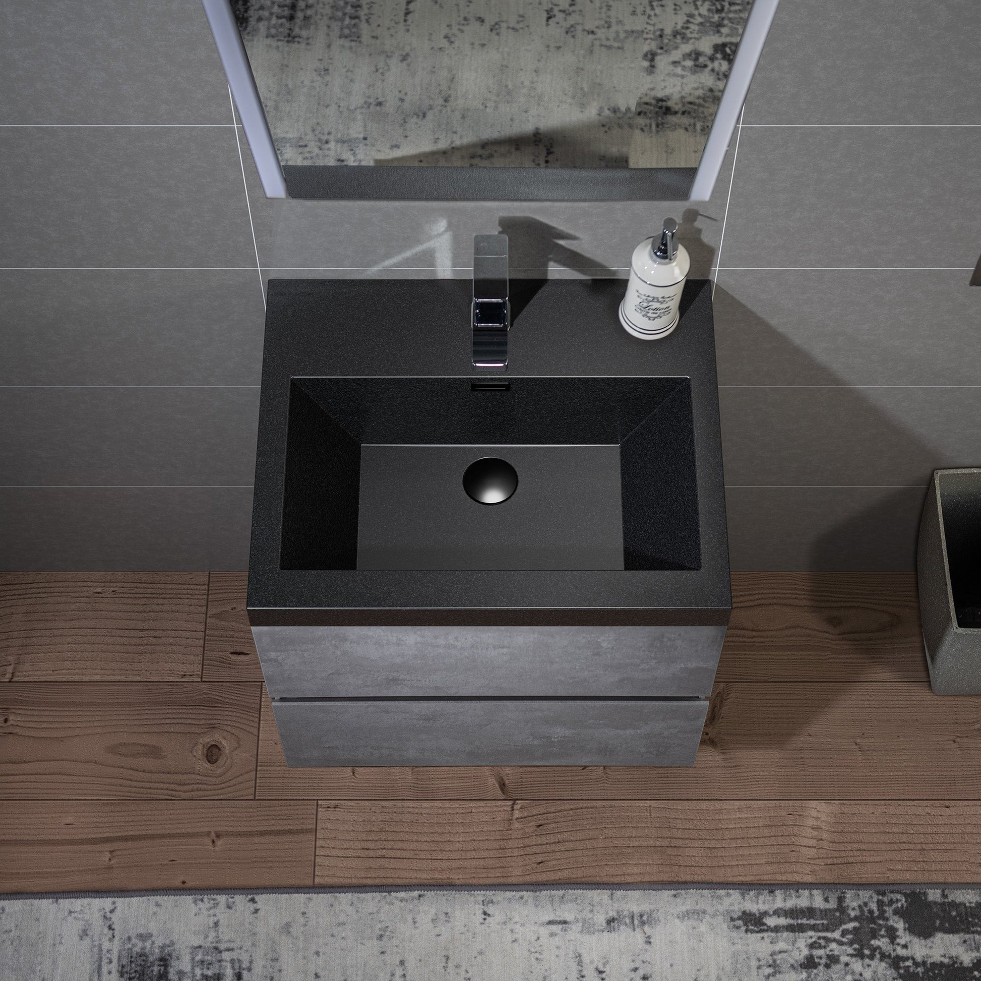 WOODBRIDGE 23-5/8 in. W x 19-5/8 in. D Wall Mounted Floating Bathroom Vanity in Gray with Quartz Sand Composite Vanity Top in Matte Black