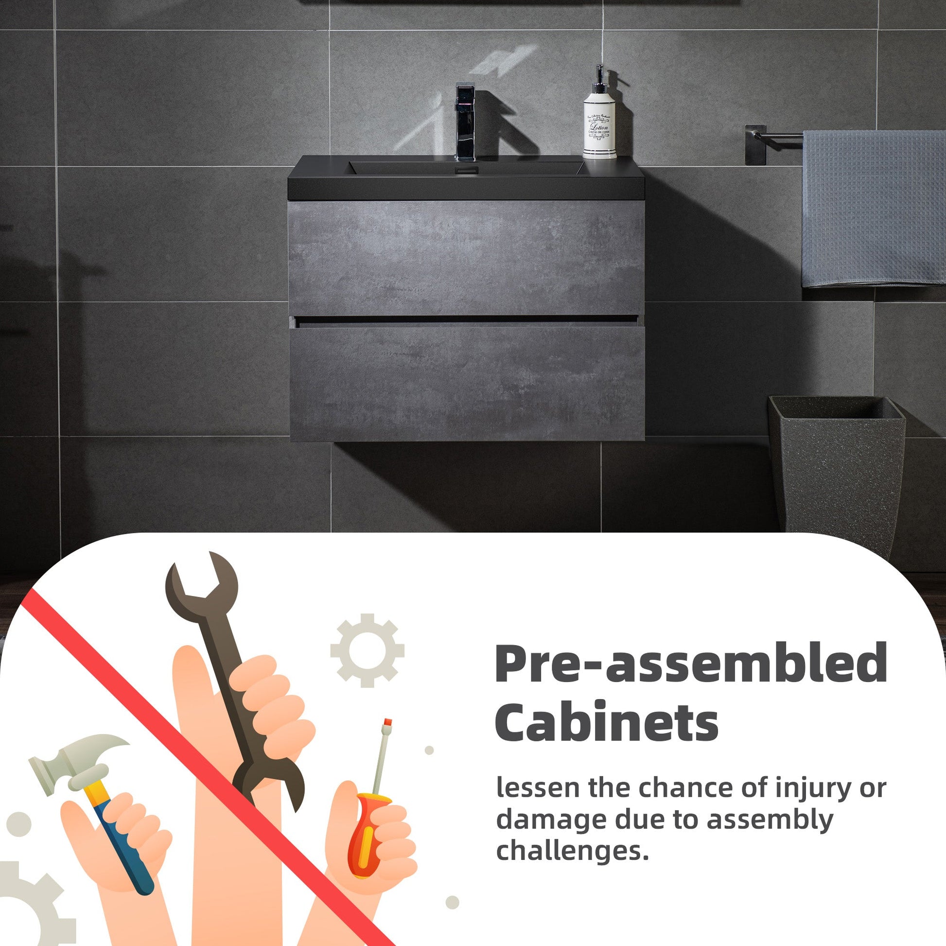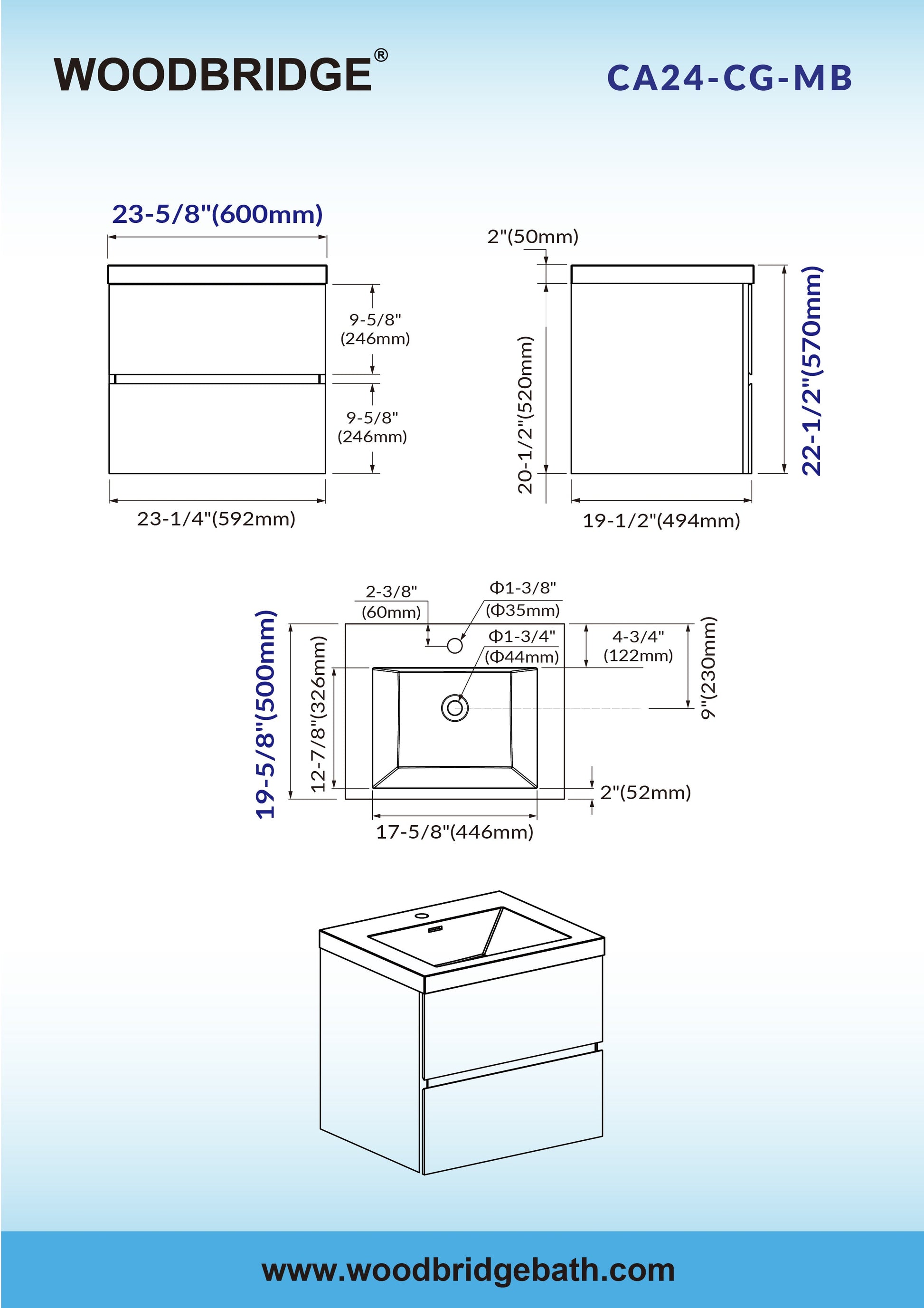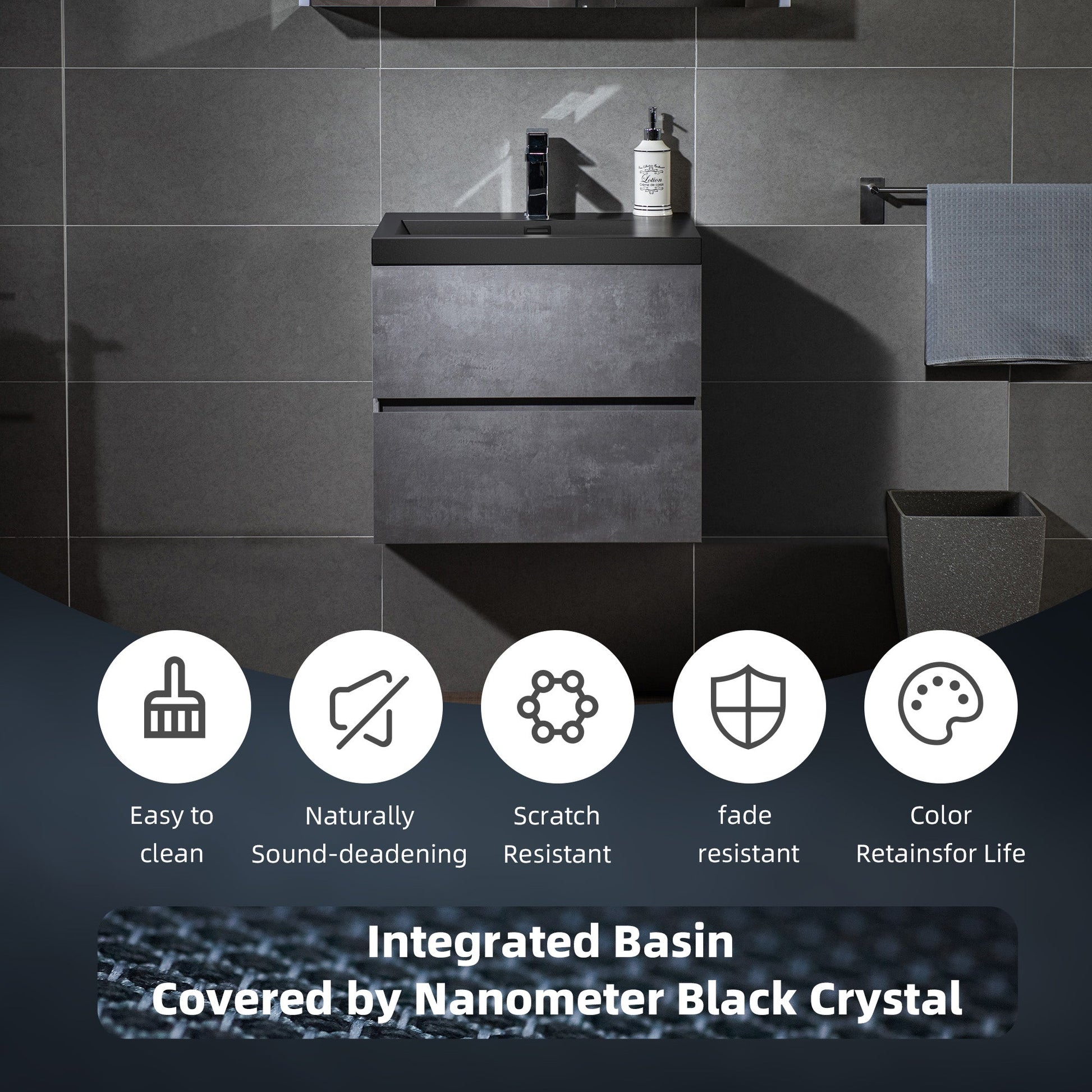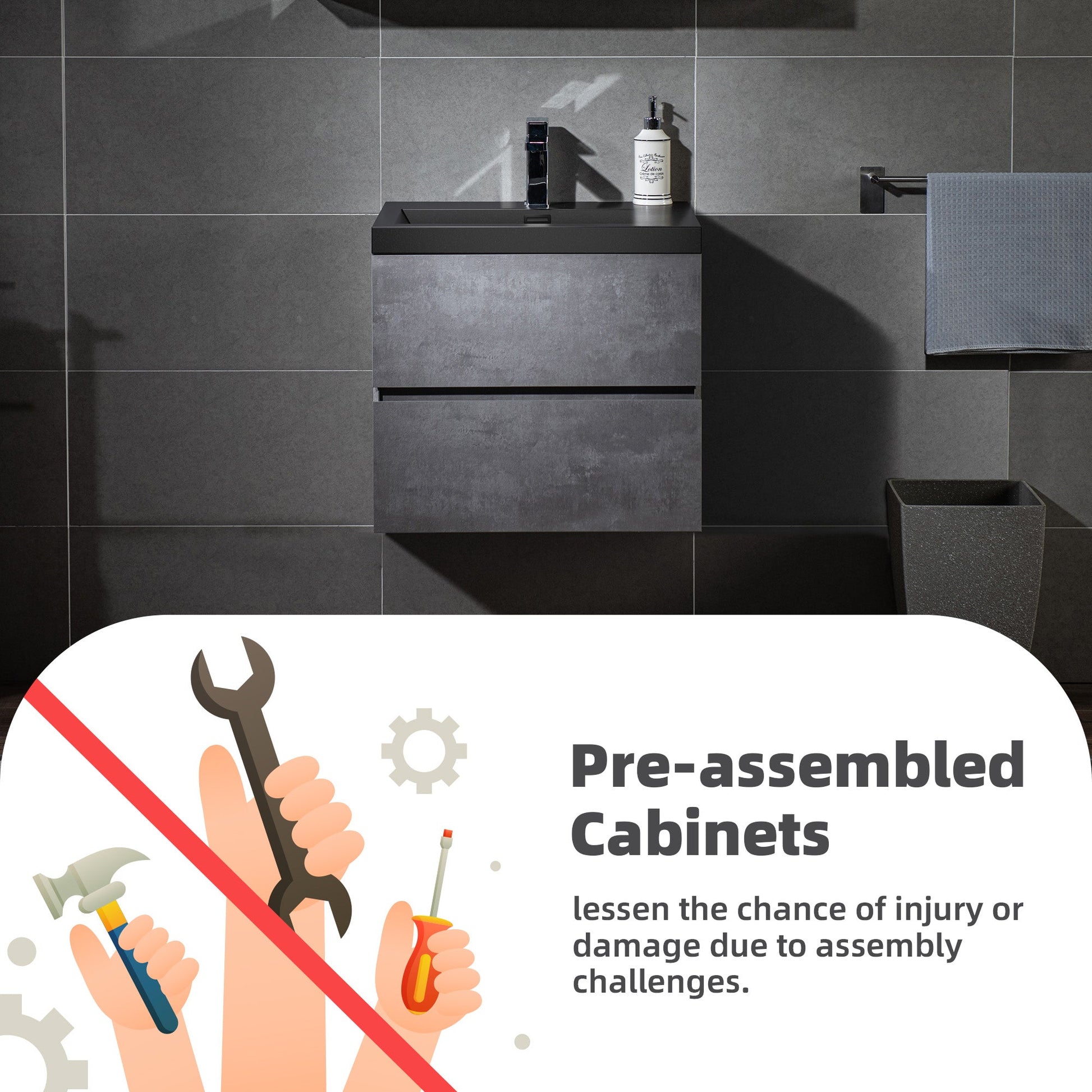 ? [SPACE-SAVING DESIGN]: With dimensions of 23-5/8" W x 19-5/8" D x 22-1/2" H, this floating vanity optimizes storage in your bathroom and powder room. By mounting on the wall, it frees up valuable floor space, creating a more open and spacious atmosphere.