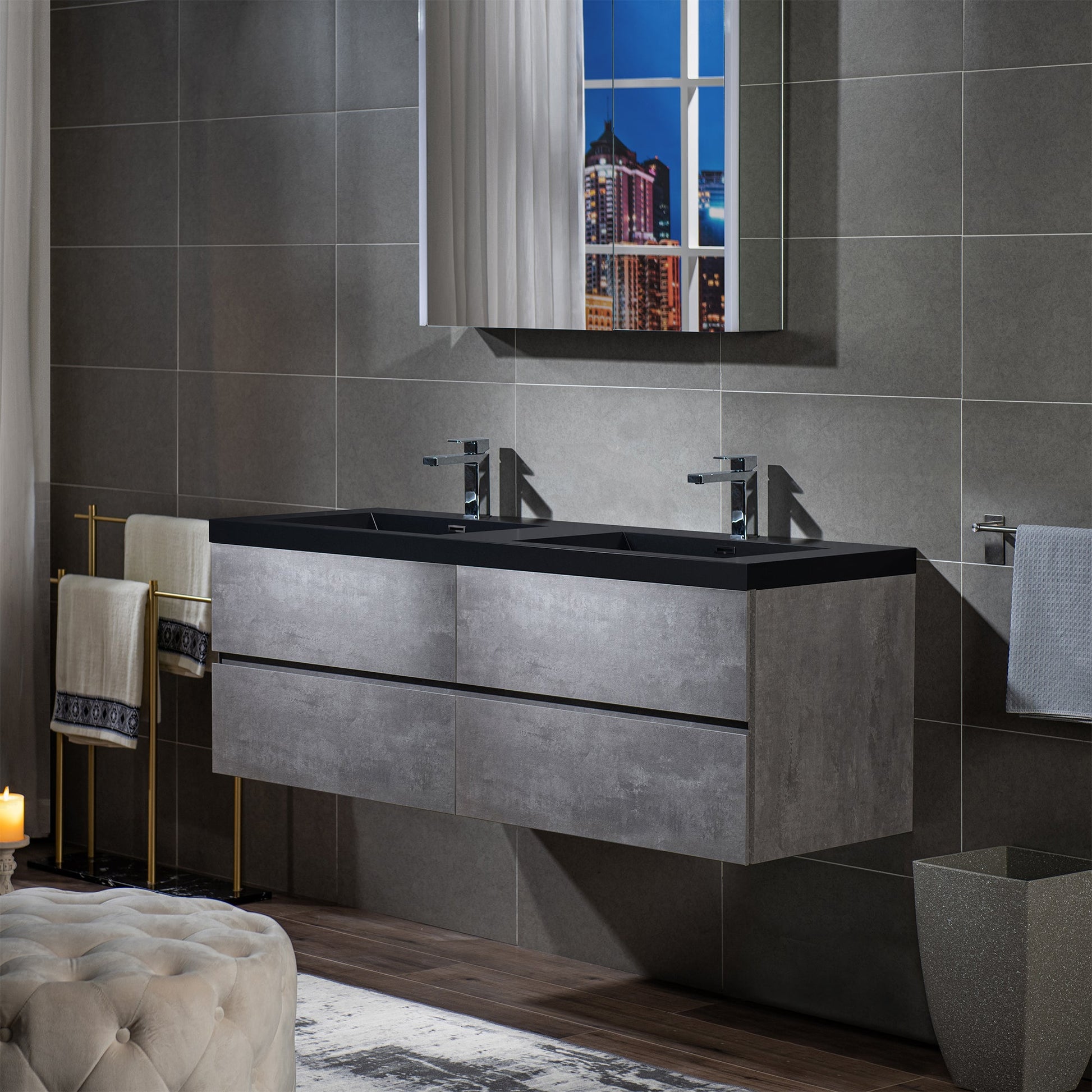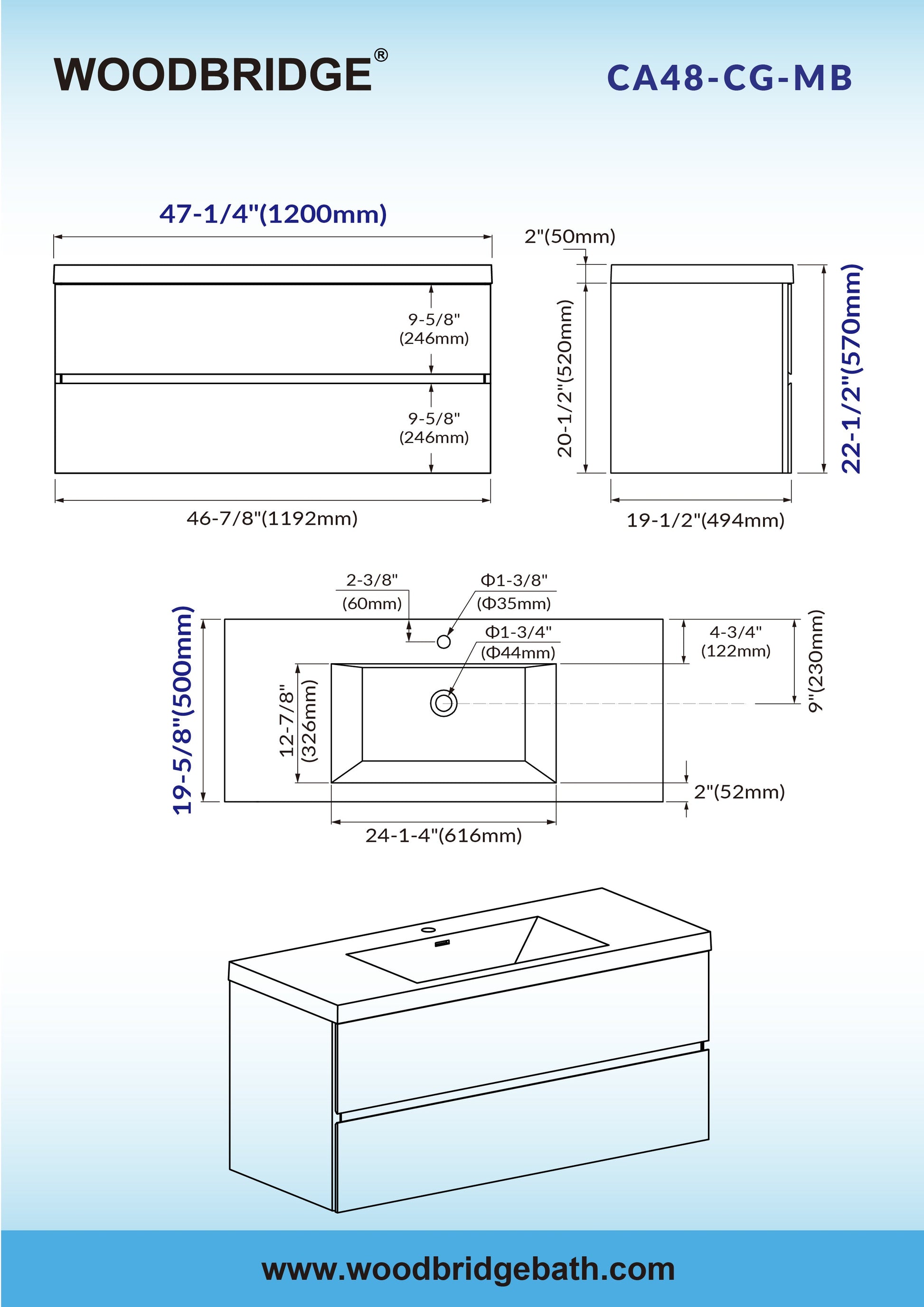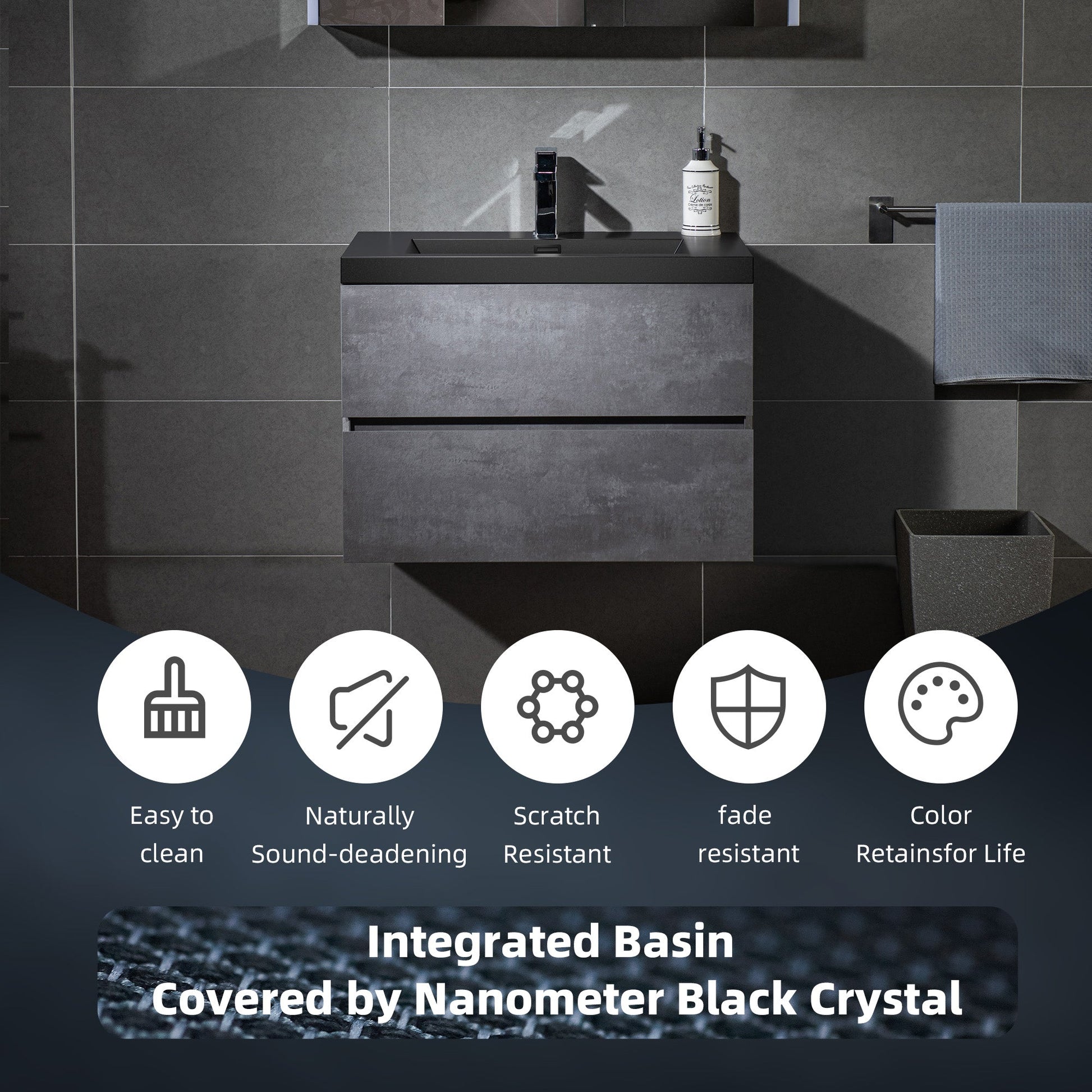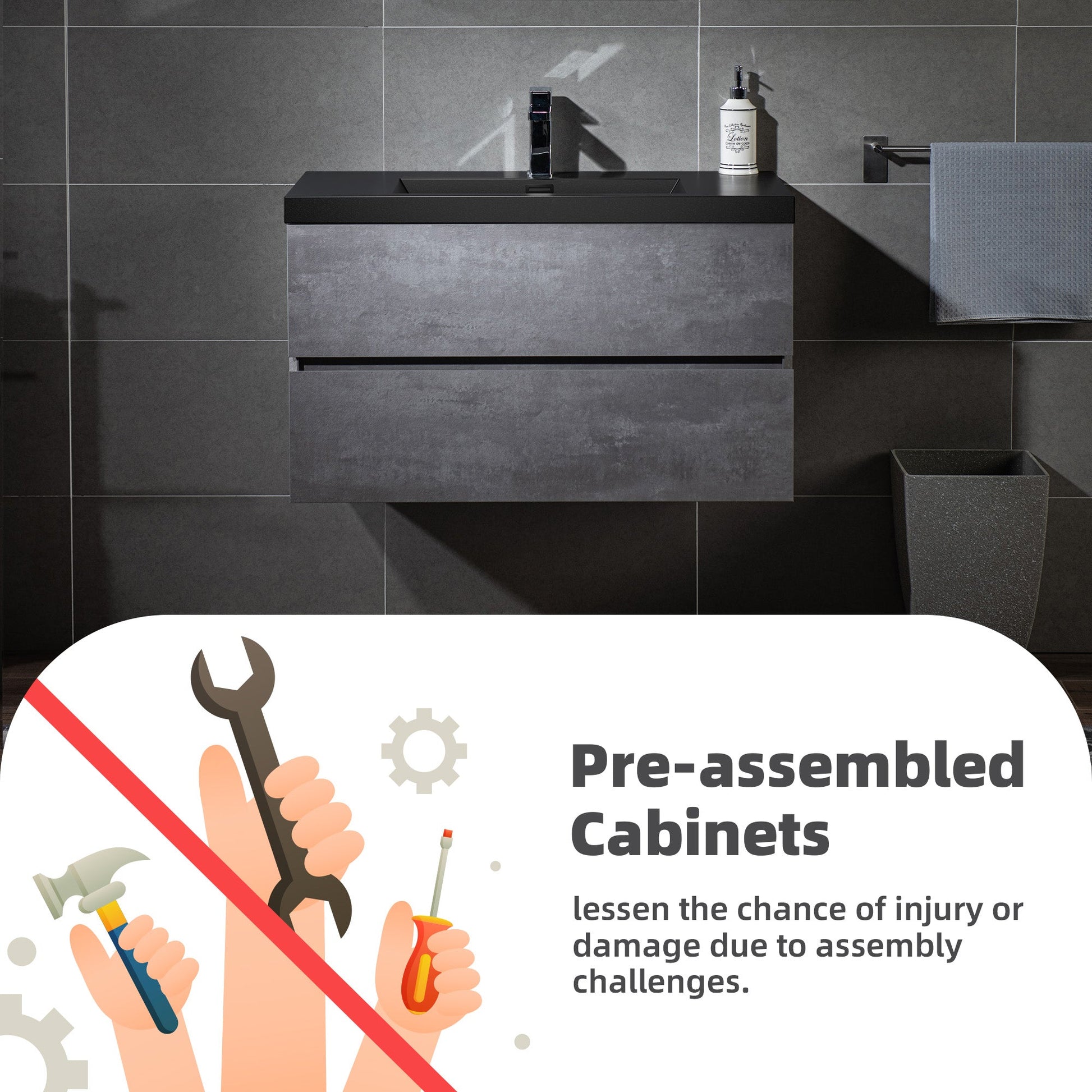 ? [SPACE-SAVING DESIGN]: With dimensions of 23-5/8" W x 19-5/8" D x 22-1/2" H, this floating vanity optimizes storage in your bathroom and powder room. By mounting on the wall, it frees up valuable floor space, creating a more open and spacious atmosphere.