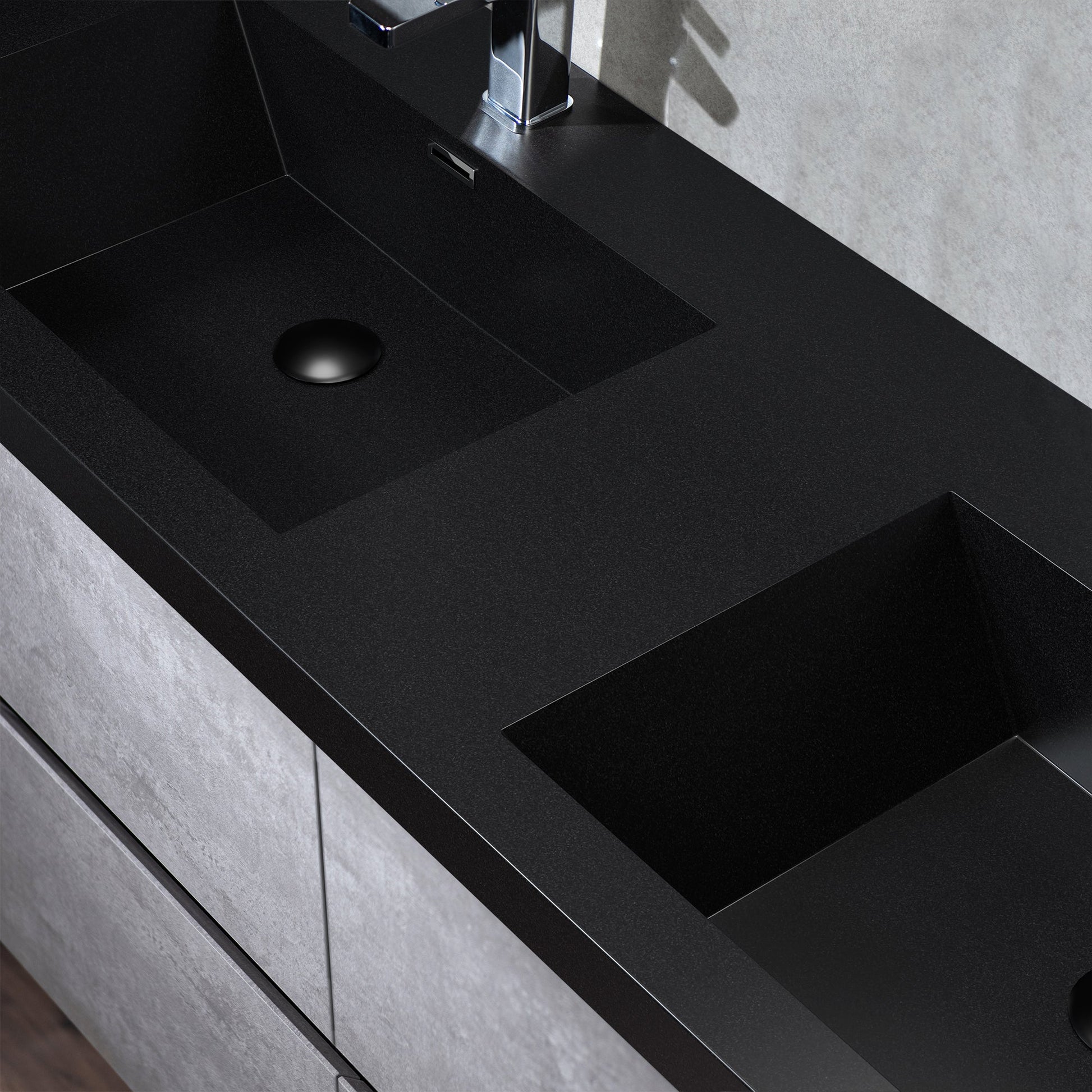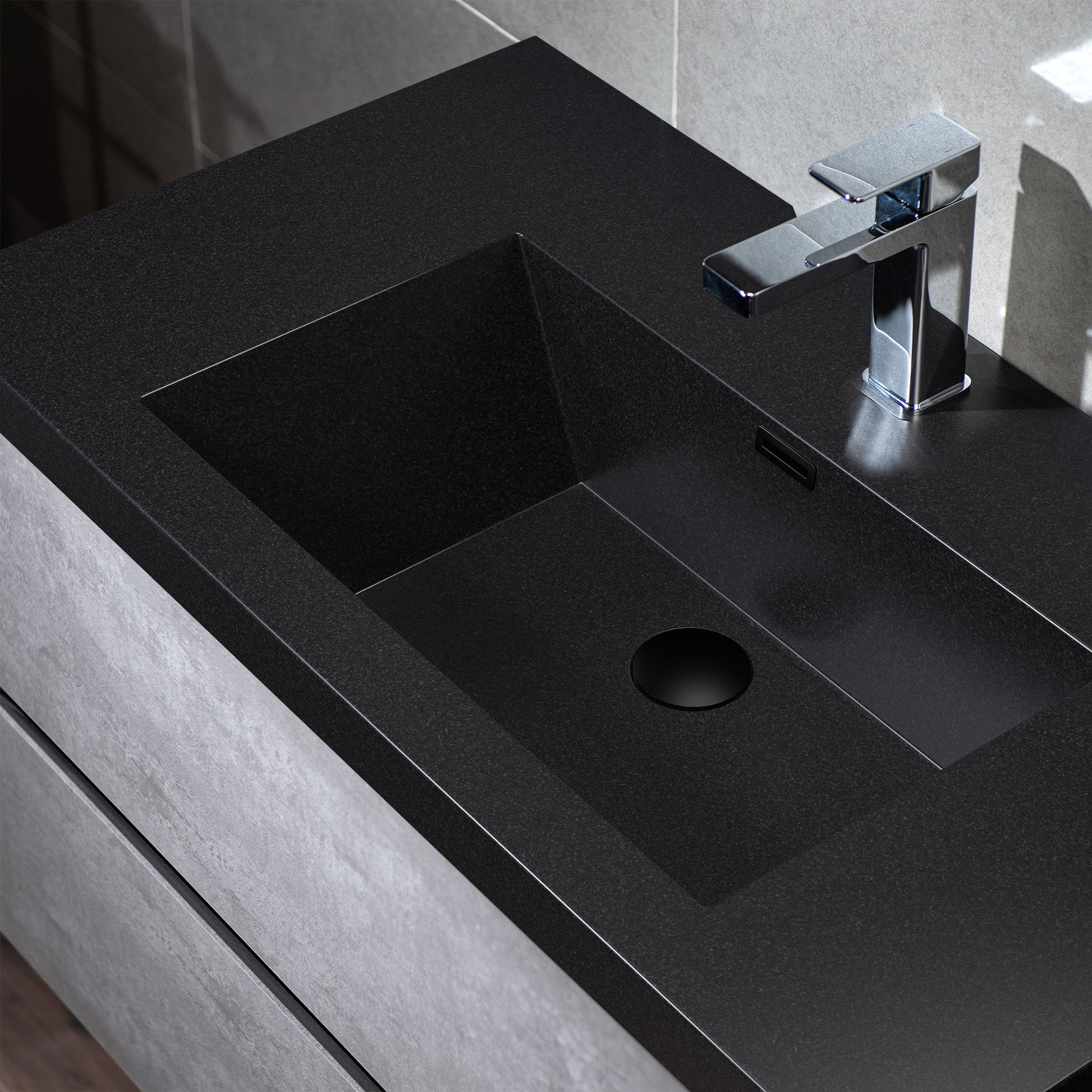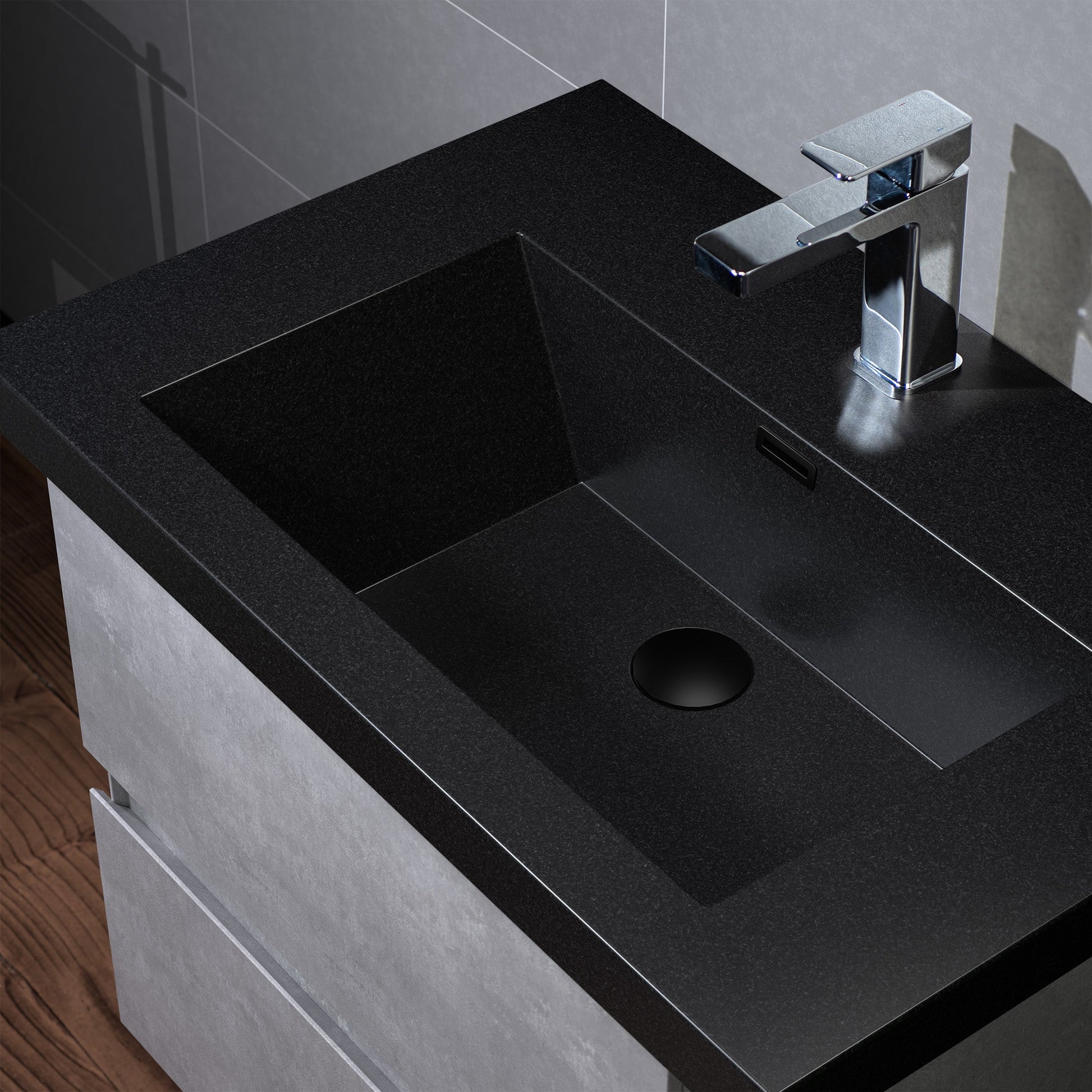 [MODERN INTEGRATED SINK]: A matte black quartz sand surface with nanometer black crystal particles, this countertop basin adds contemporary flair to your space. Easy to clean, scratch-resistant, and high-temperature-resistant for added durability.