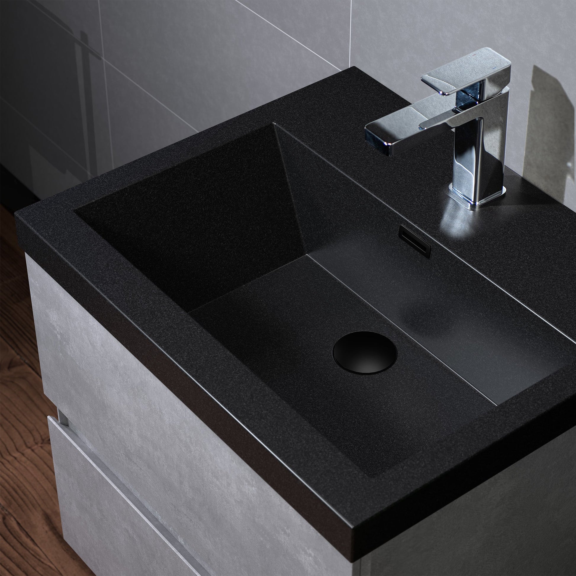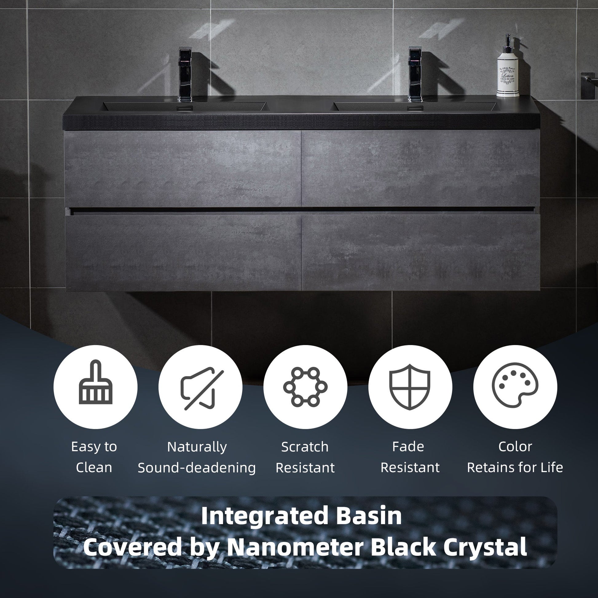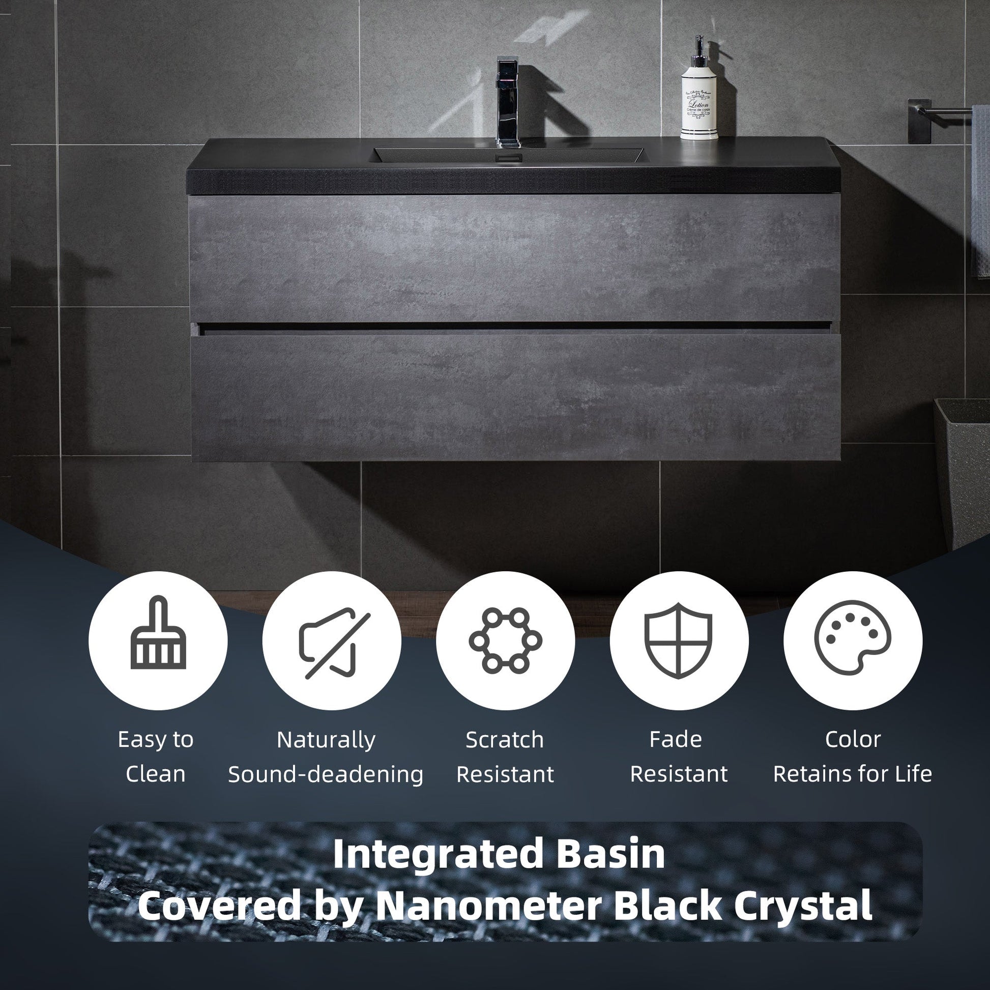 [MODERN INTEGRATED SINK]: A matte black quartz sand surface with nanometer black crystal particles, this countertop basin adds contemporary flair to your space. Easy to clean, scratch-resistant, and high-temperature-resistant for added durability.