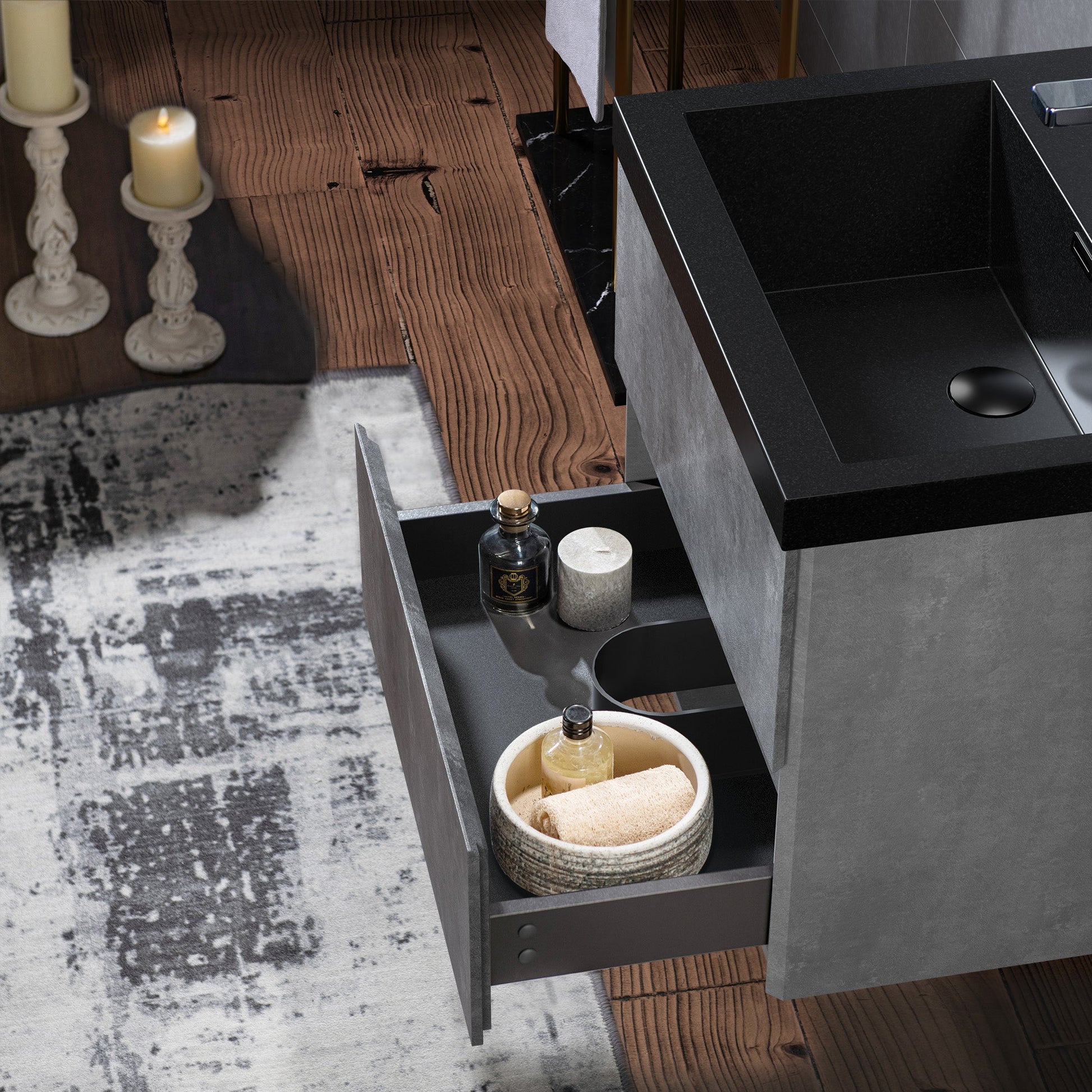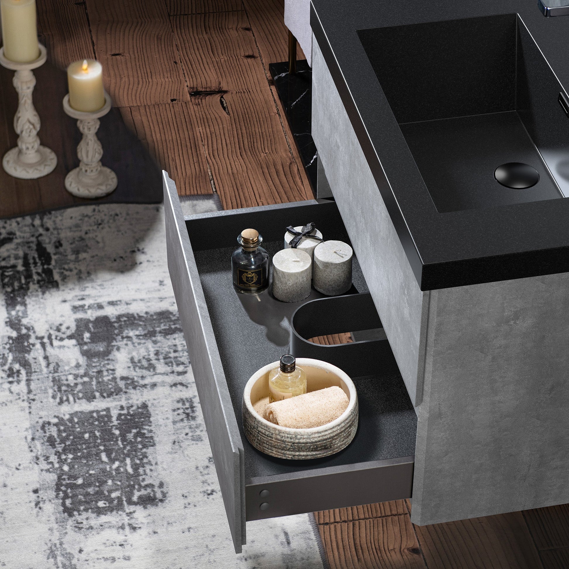[PATENTED U-SHAPED DRAINAGE ACCESS]: Our innovative U drawer features an ultra-thin ABS material U-shaped drainage pipeline access, keeping toiletries separated from plumbing, providing a tidy appearance and more storage space.