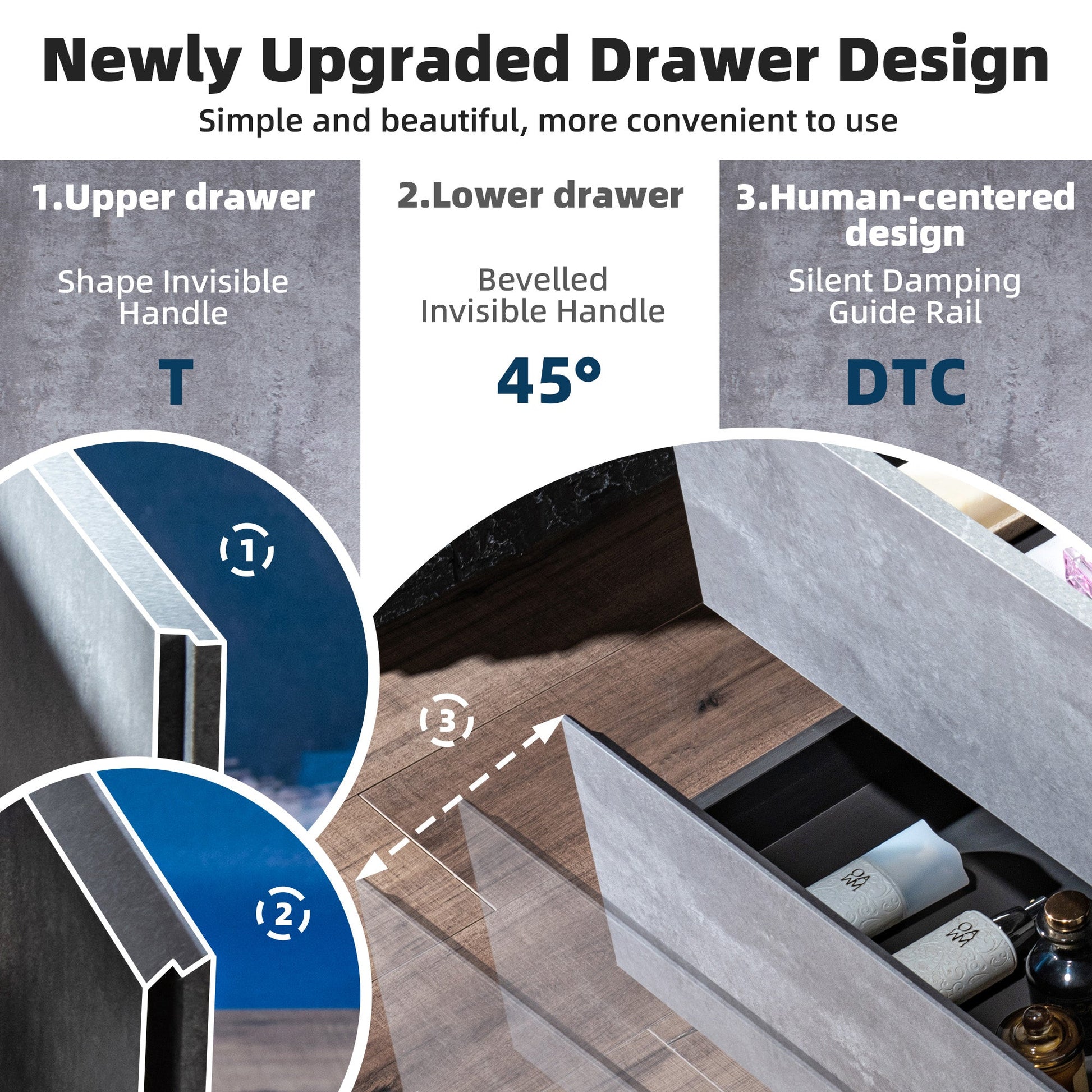 ? [QUIET & SLEEK DRAWER DESIGN]: Enjoy the convenience of the soft-closing drawer slides for a quiet, slam-free operation. Both drawers feature 45° beveled invisible handles, providing a sleek and ergonomic design that fits perfectly to your fingers.