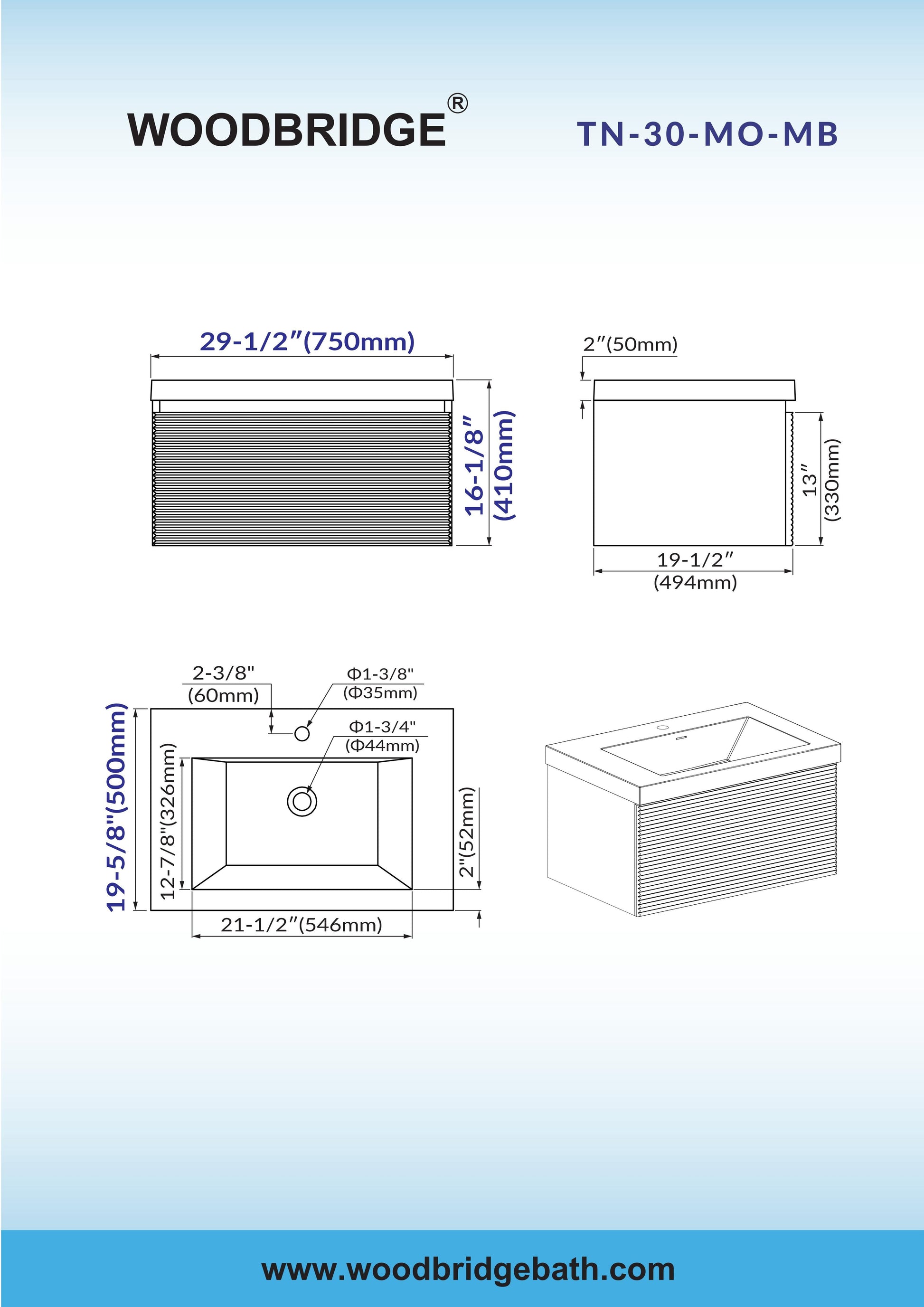 ? [SPACE-SAVING DESIGN]: With dimensions of 29-1/2" W x 19-5/8" D x 16-1/8" H, this floating vanity optimizes storage in your bathroom and powder room. By mounting on the wall, it frees up valuable floor space, creating a more open and spacious atmosphere.