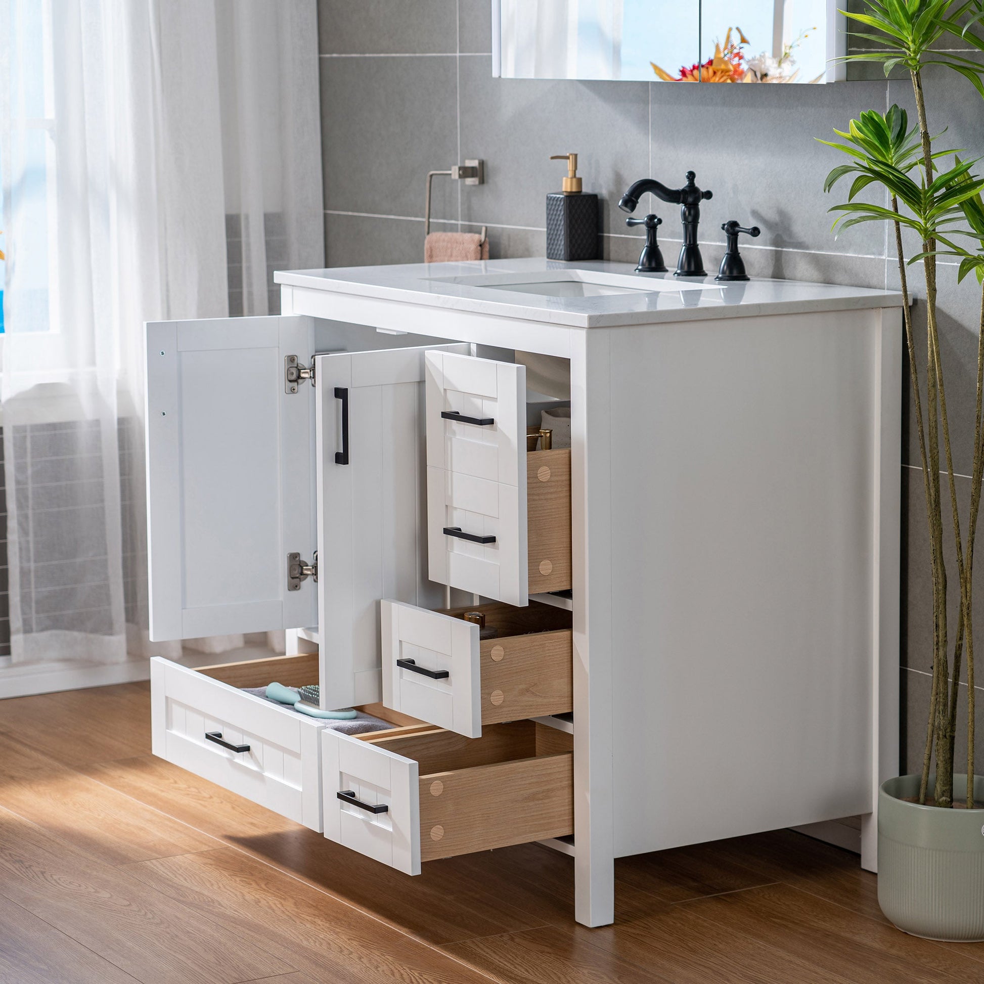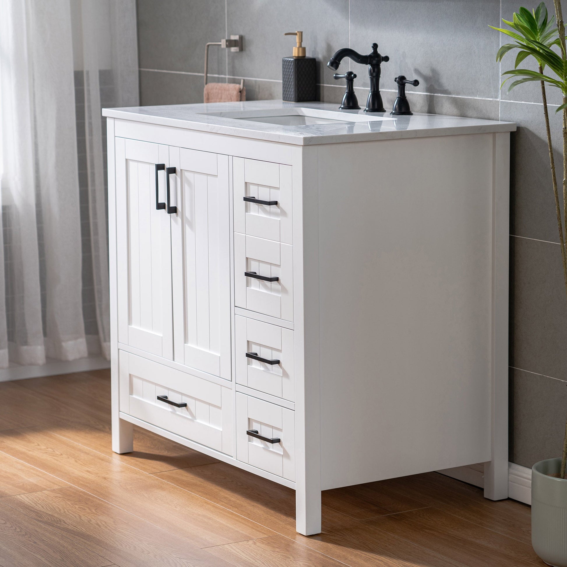 ? [Elegant & Functional Design]: This 35-7/8" bathroom vanity seamlessly blends modern aesthetics with practical functionality, making it a stylish addition to any bathroom.
