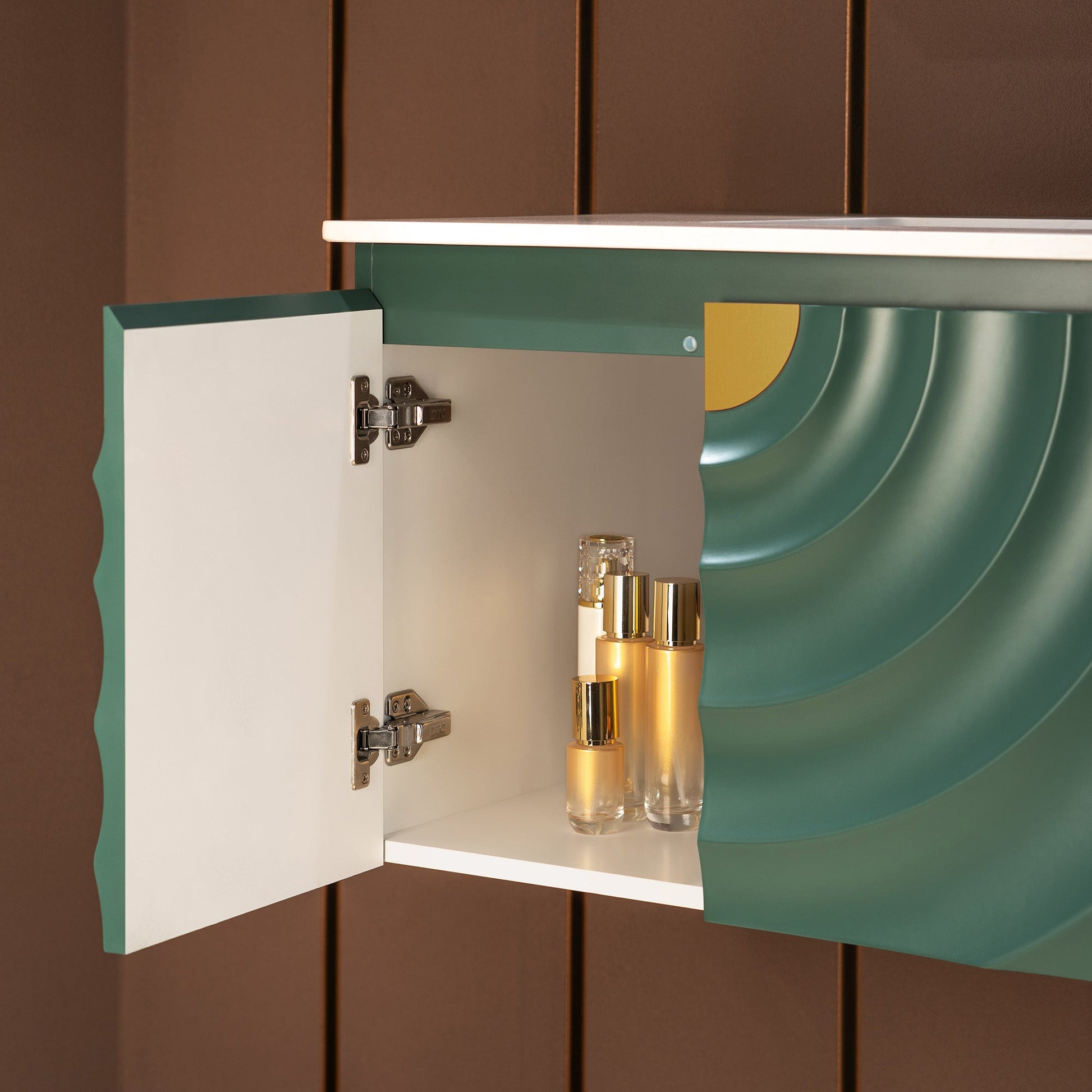 ? [Stylish Design & Aesthetics]: This bathroom cabinet pairs a smooth matte green finish, adding texture and calm luxe, with durable, easy maintenance for lasting elegance. Doors feature 3D wave lines and natural artistry to elevate bathroom style.