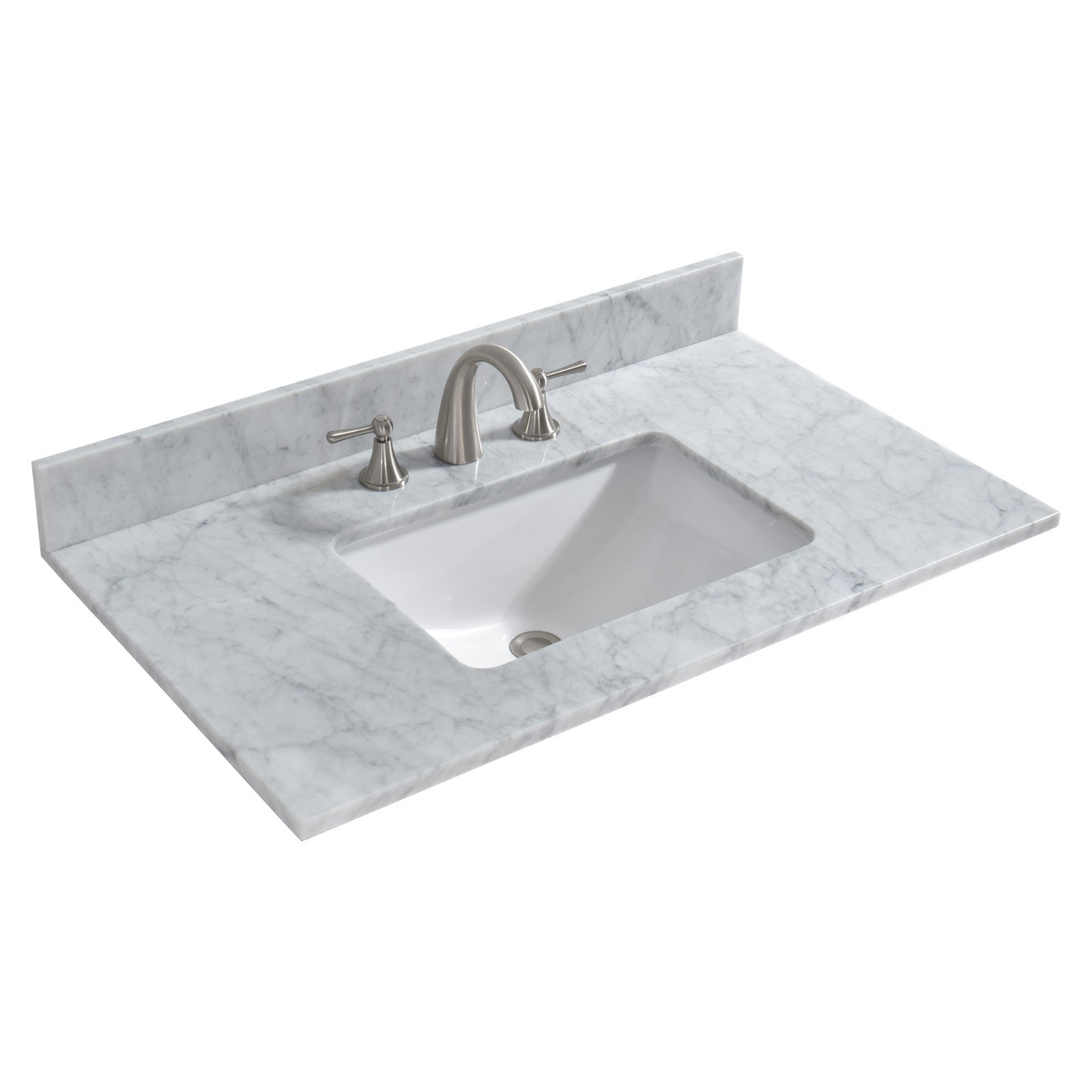 [Elegant & Stylish Top]: Warmly elegant and stylish, Carrara marble vanity top complement most Bathroom designs and coordinate with both light and dark cabinetry. High-end and classic natural stone top Pre-sealed and Polished for added protection.