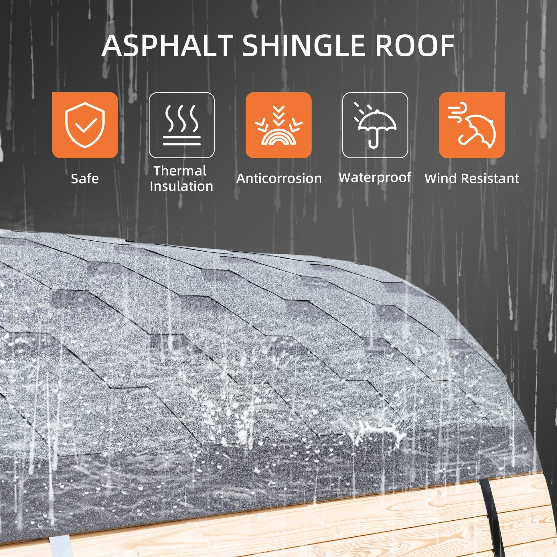 [PACKAGE INCLUDED]: Barrel Sauna Kit x 1, Electric Heater x 1, Black Asphalt Shingle Roof kit x 1, base cradles, wood benches