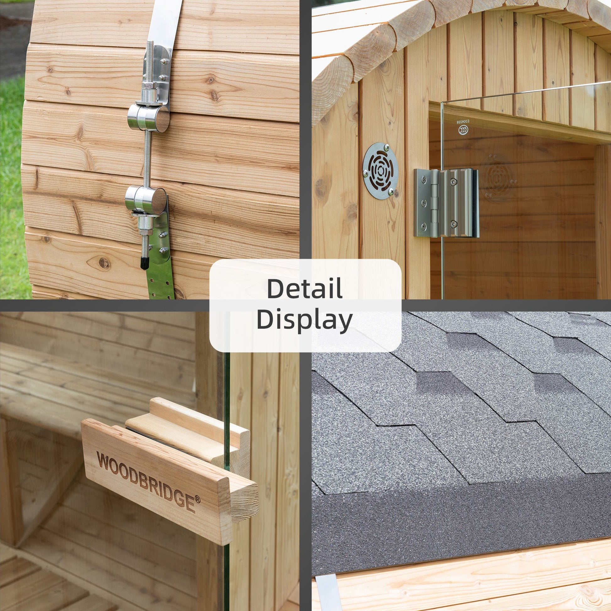 WOODBRIDGE 4-Person Luxury Canada Red Cedar Outdoor Barrel Sauna with half View Window,Harvia Electric Heater with Sauna Stone, Sauna accessories Kit and Asphalt Shingle Roof, 4'x6'