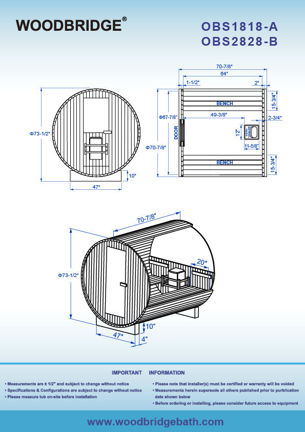 ? [DIMENSIONS AND SPECIFICATIONS]: Barrel exterior dimension: 70-7/8" (L) x 70-7/8 (W) x 70-7/8" (H). Base cradle dimension: 47" (L) x 4” (D), Room capacity: 4 persons