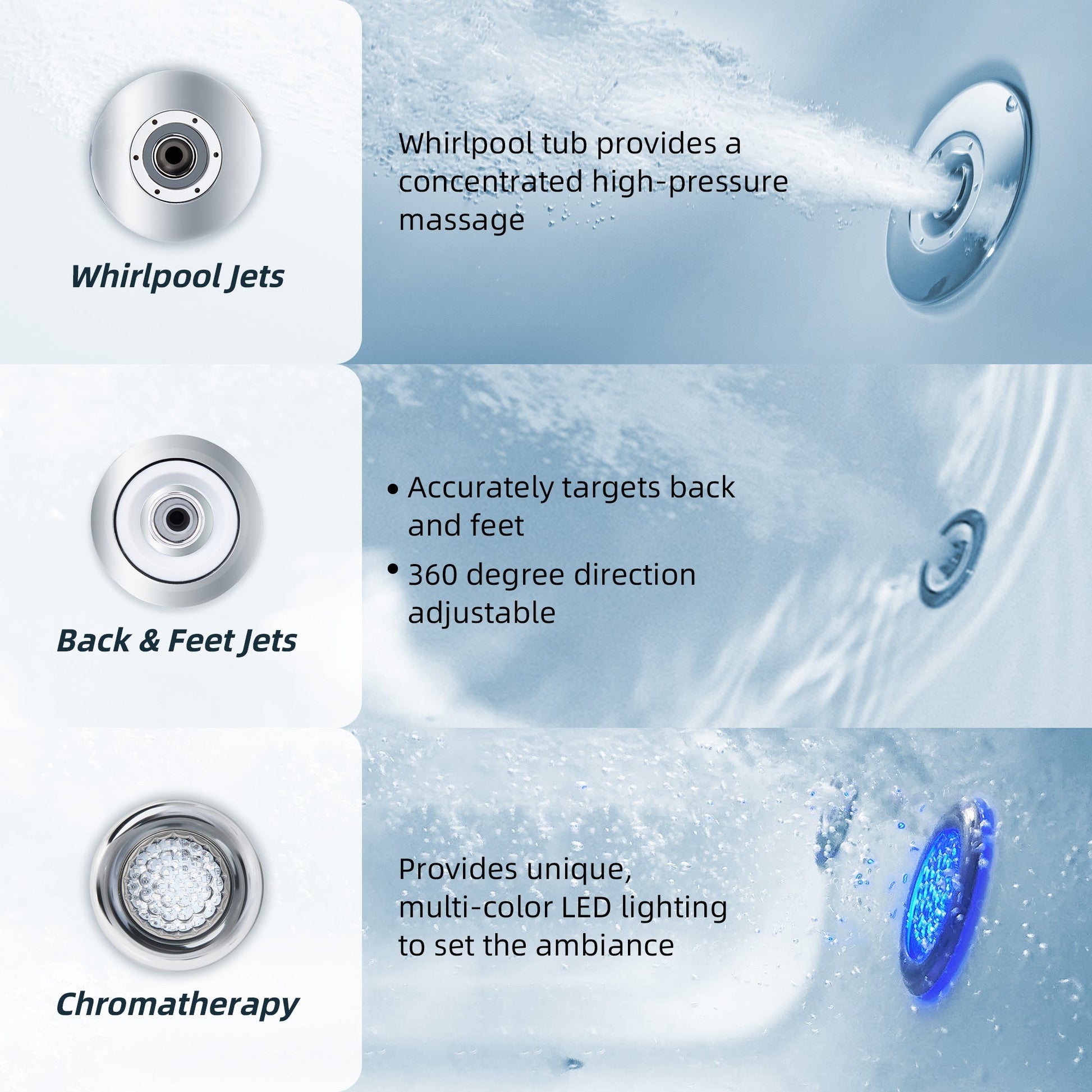 ? [JETS QUANTITY]: 4 large and 3 small adjustable body massage jets for maximum bather comfort, The perfect mix of air and water delivers a powerful, yet comfortable hydro massage.
