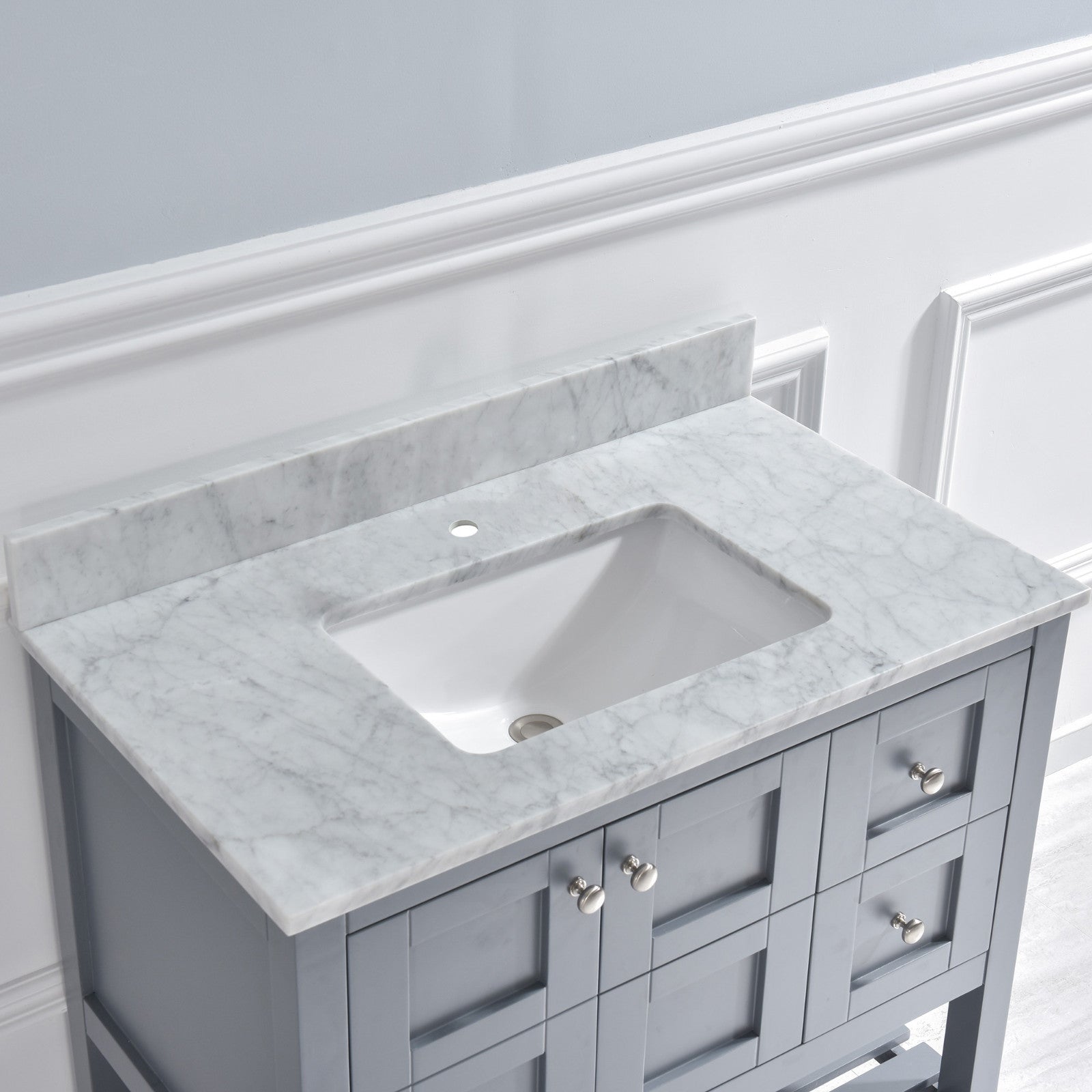 [Elegant & Stylish Top]: Warmly elegant and stylish, Carrara marble vanity top complement most Bathroom designs and coordinate with both light and dark cabinetry. High-end and classic natural stone top Pre-sealed and Polished for added protection.