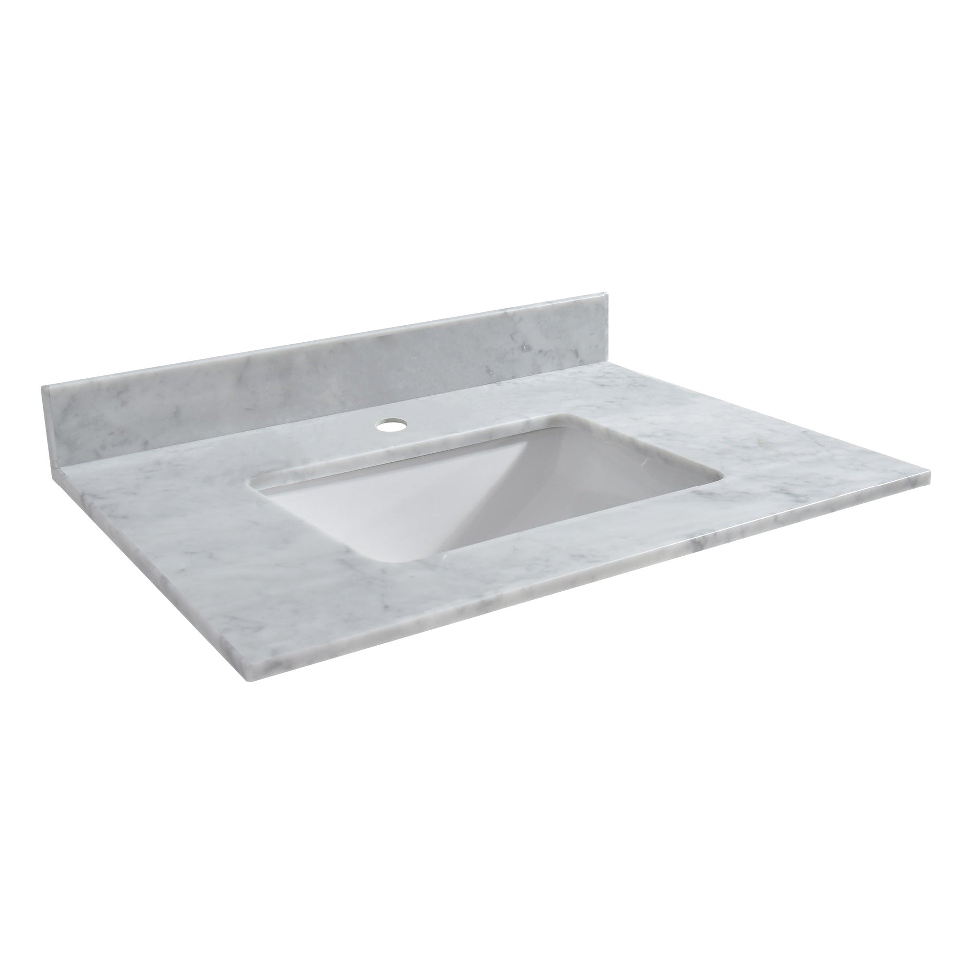 [PACKAGE INCLUDED]: Vanity top with assembled rectangular undermount bowl , matching 4" high Backsplash. Besides, extremely solid package - very firm carton box with foam is used to transport top, making sure a safe delivery. (Attention) Faucet and side splash NOT included