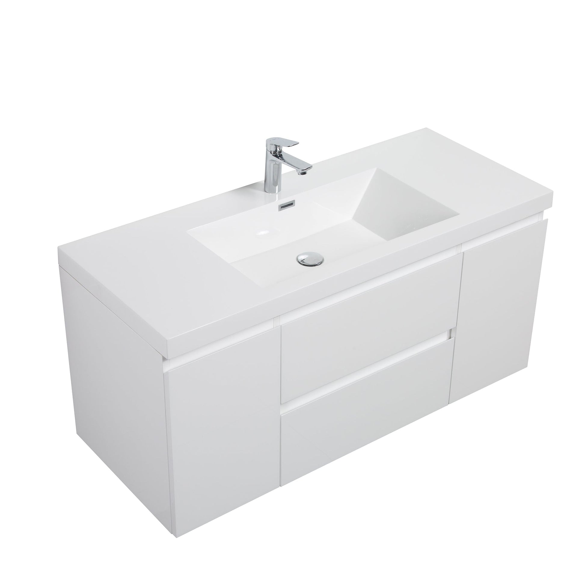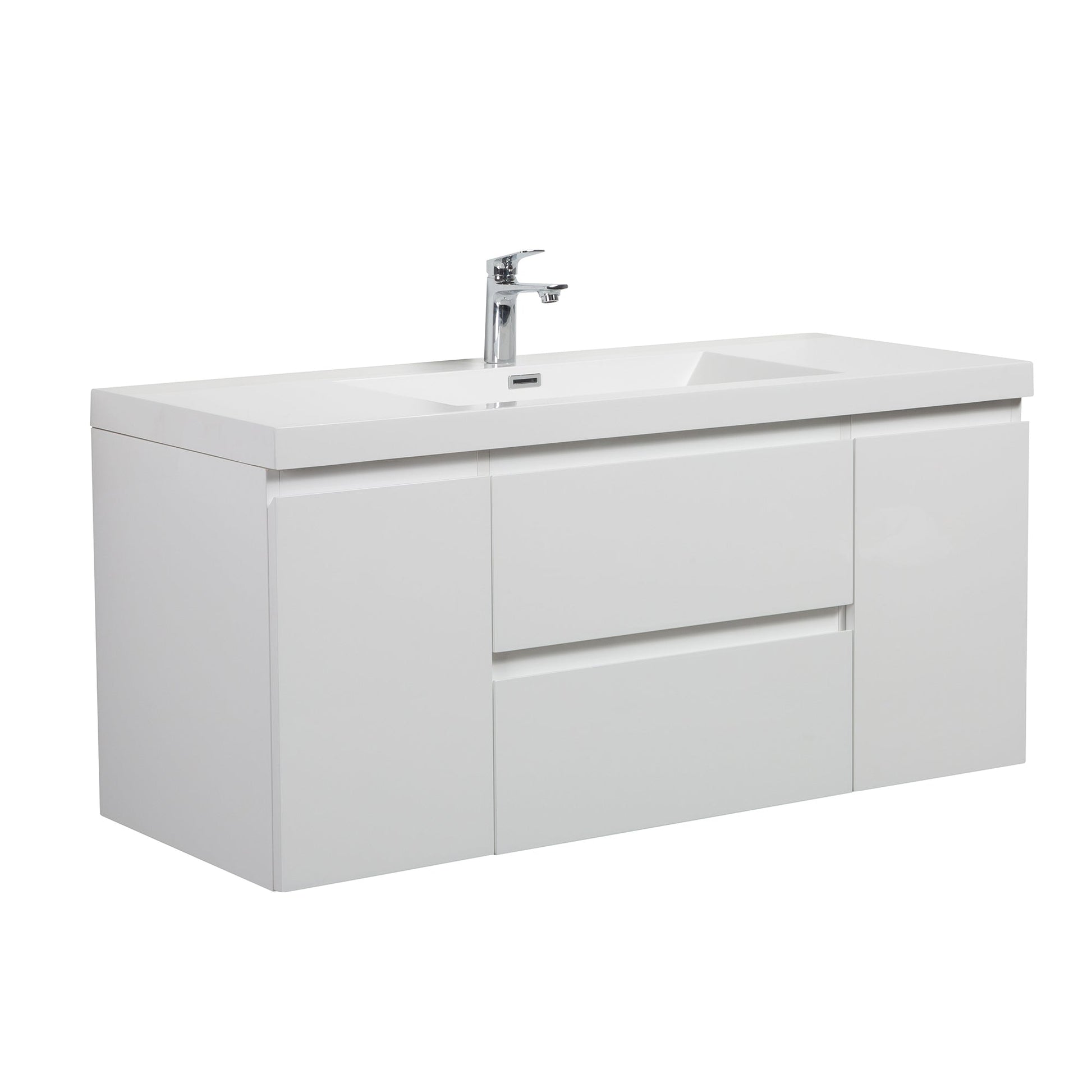 WOODBRIDGE 47-1/4 in. W x 19-5/8 in. D Wall Mounted Floating Vanity in Glossy White with Resin Composite Vanity Top in Glossy White