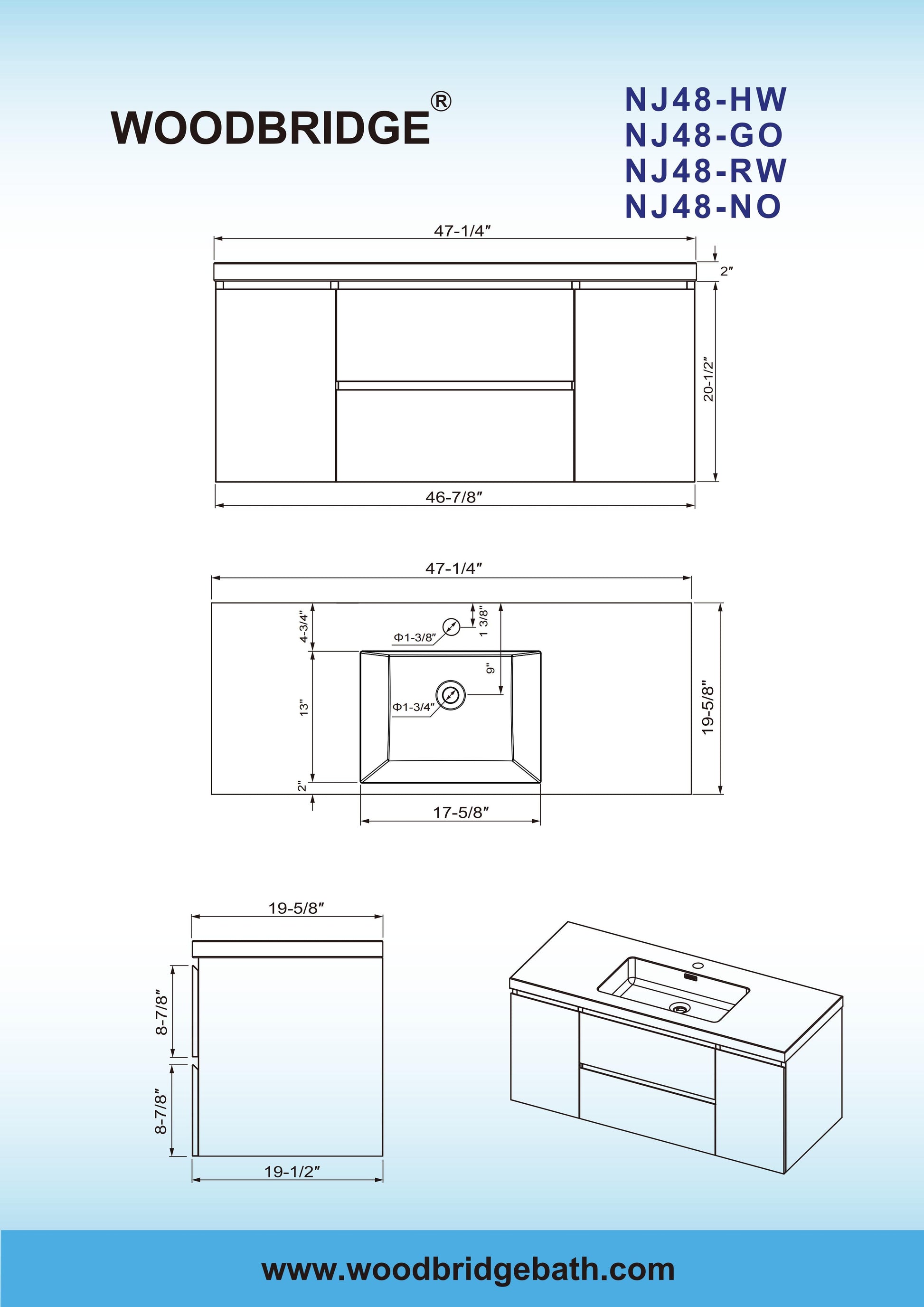 ? [SPACE-SAVING DESIGN]: 47-1/4 in. W x 19-5/8 in. D x 22-1/2 in. H floating bathroom vanity maximizes storage in your bathroom and powder room. Mounting the vanity on the wall, frees up valuable floor space, making your bathroom feel more open and spacious