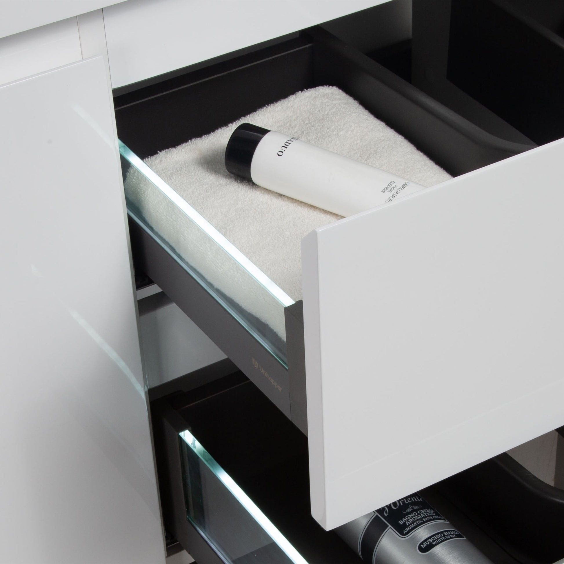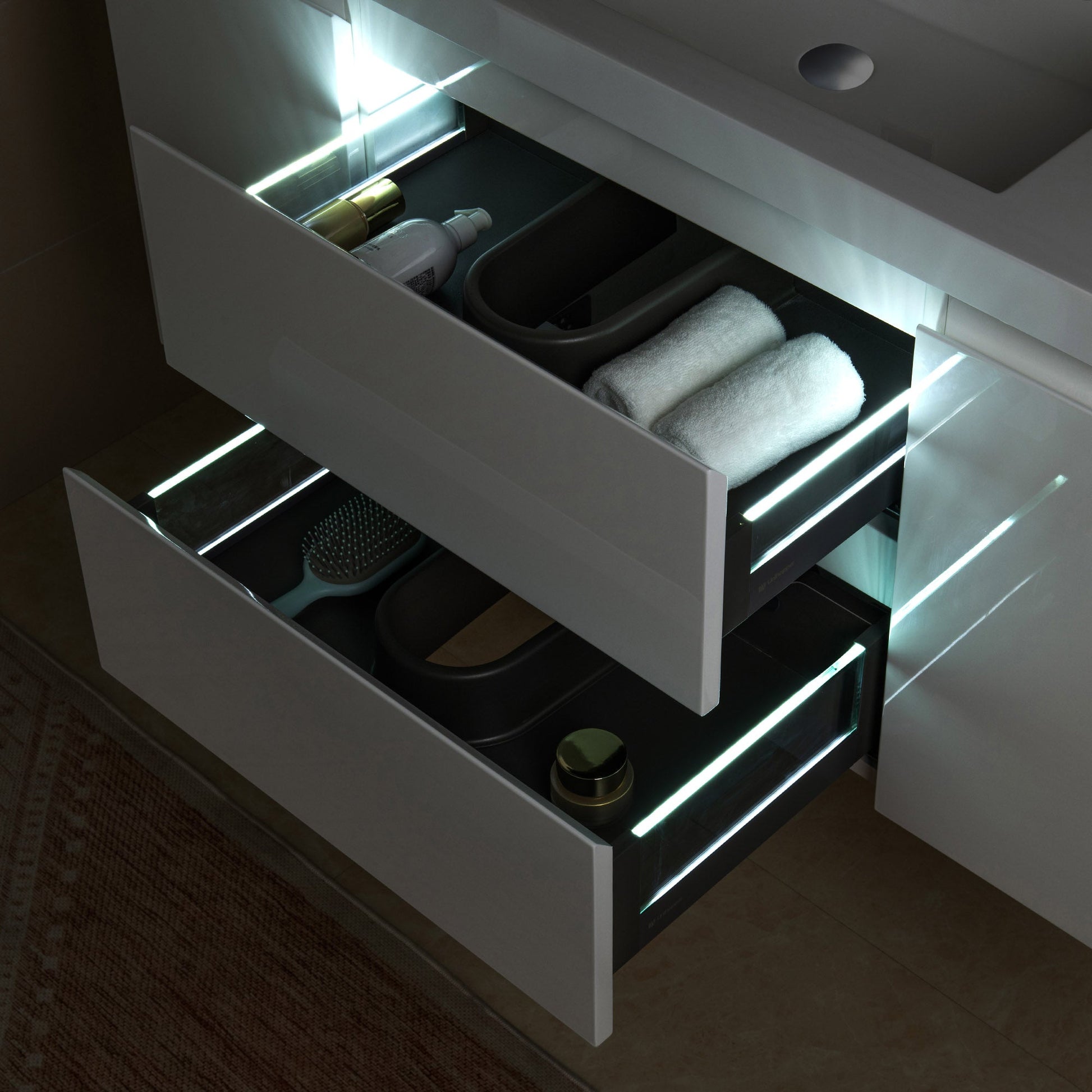? [BUILT-IN LED LIGHT]: The drawer features LED strips on both sides that automatically light up when the drawer is opened. This provides optimal illumination, saves energy, and maintains a clean appearance when the drawer is closed.