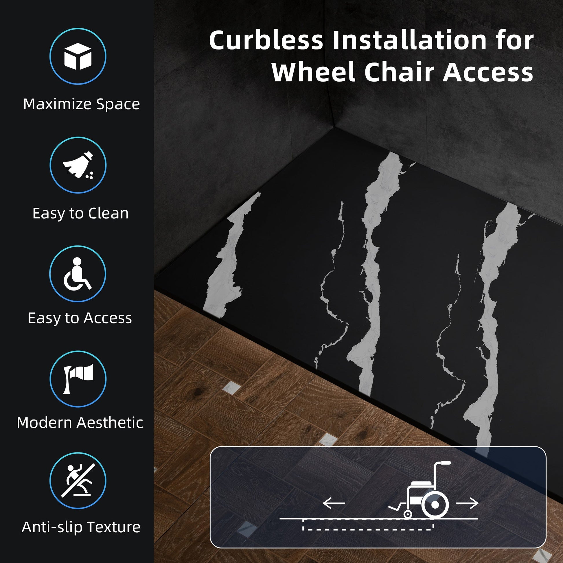 ? [LOW PROFILE EASY ACCESS]:Low step easy shower entry and anti-slip texture floor for safe access, Perfect for wheelchair access or person having difficulty stepping over higher threshold.