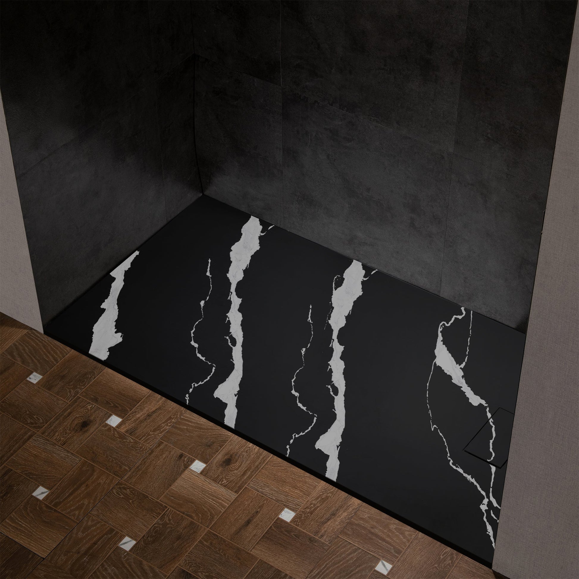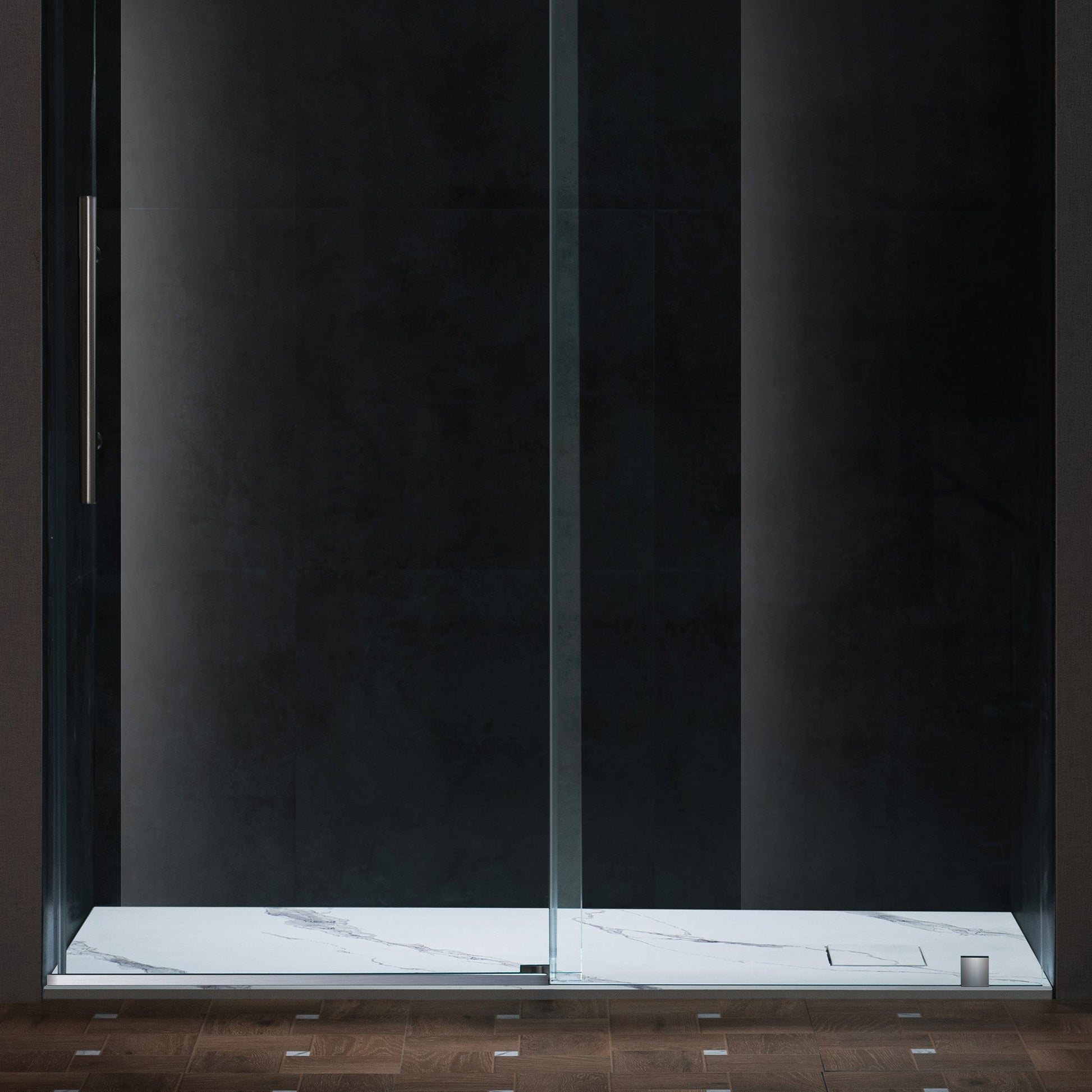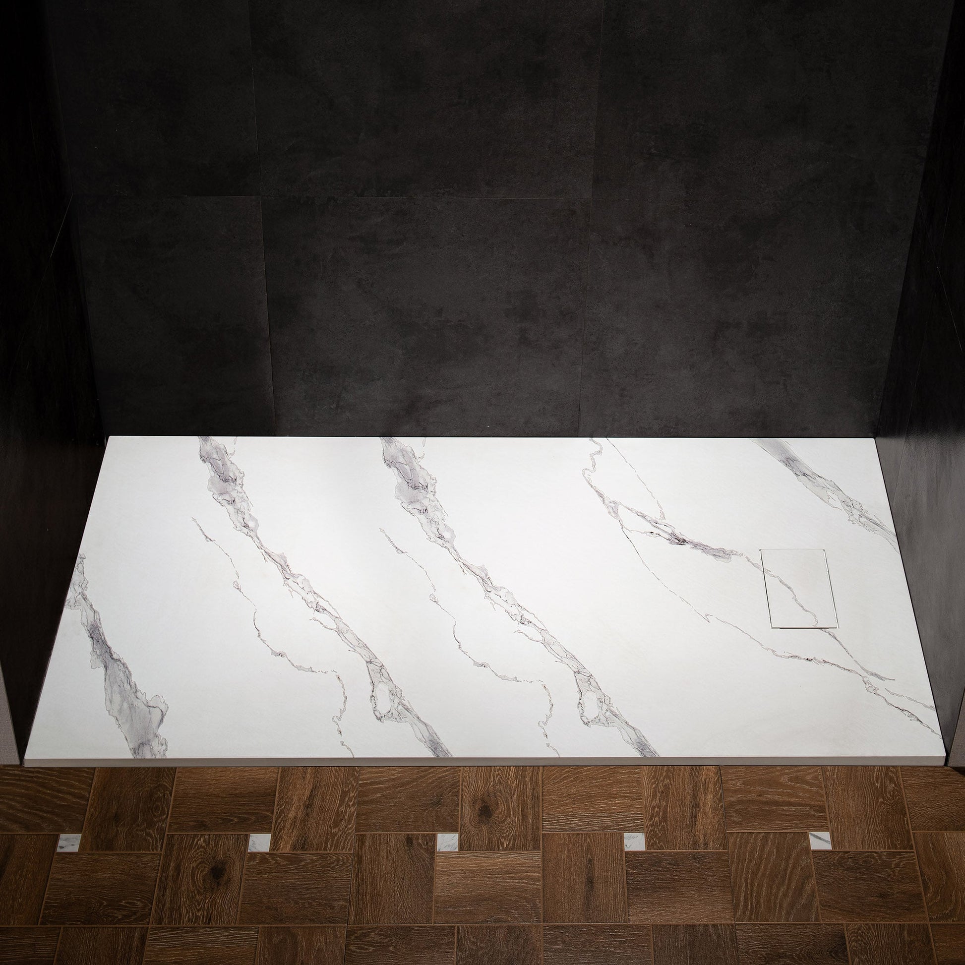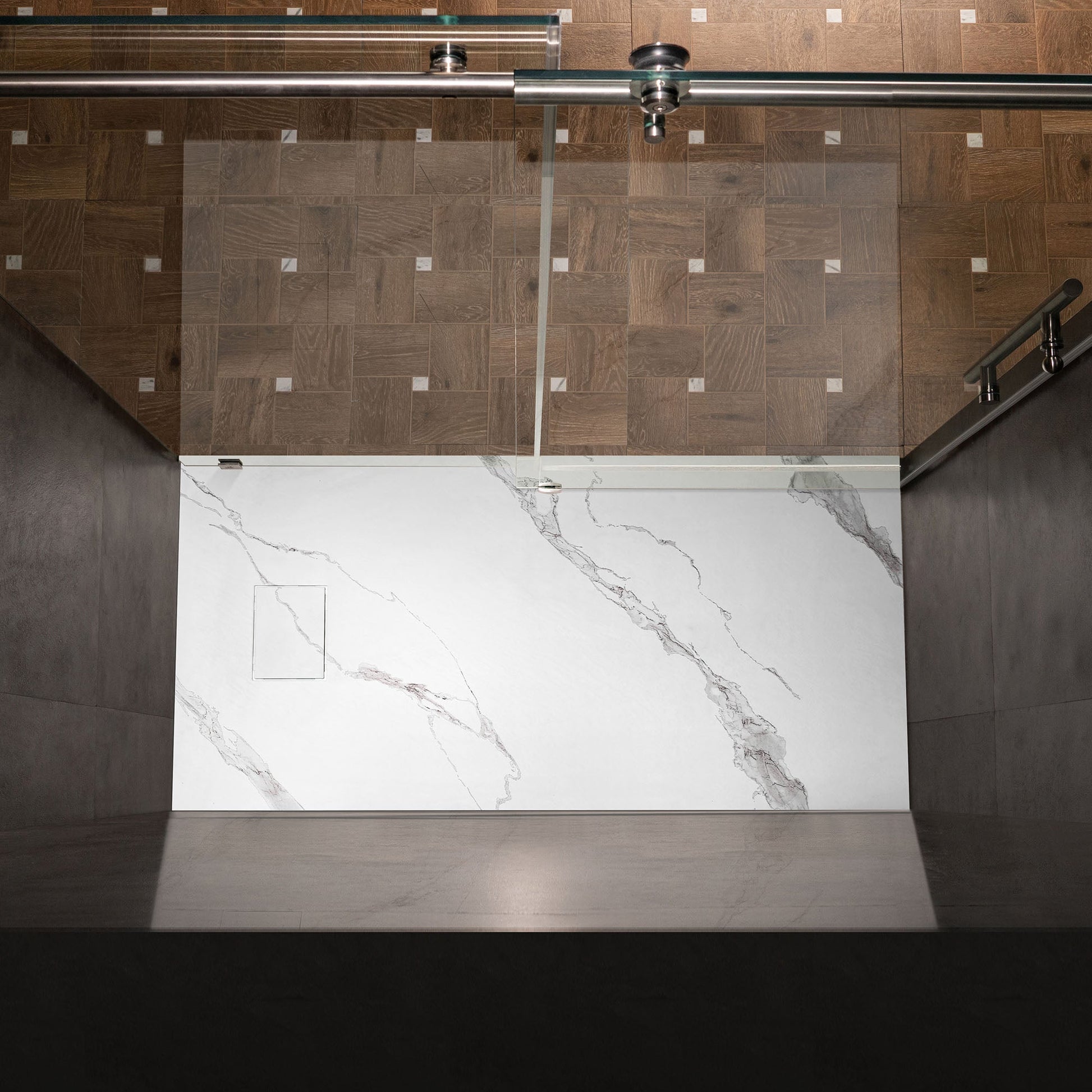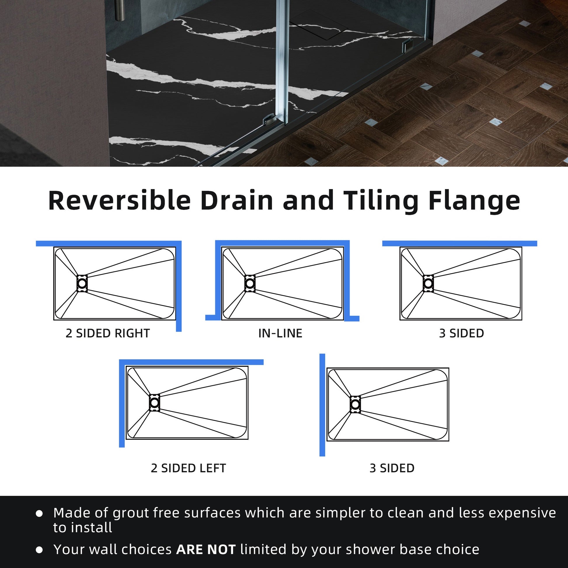 [REVERSIBLE DRAIN AND TILING FLANGE]:shower base can accommodate to a left or right-handed drain and the integrated tiling flange ensures no leaks will come between the shower base and walls, giving you peace of mind.