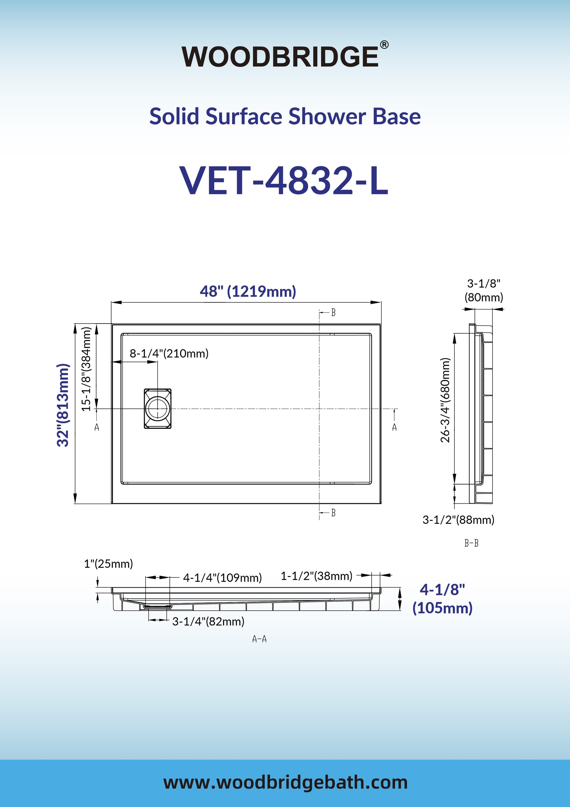 [DIMENSIONS]: Measures 48 in. L x 32 in. W x 4-1/8 in. H with Left drain placement