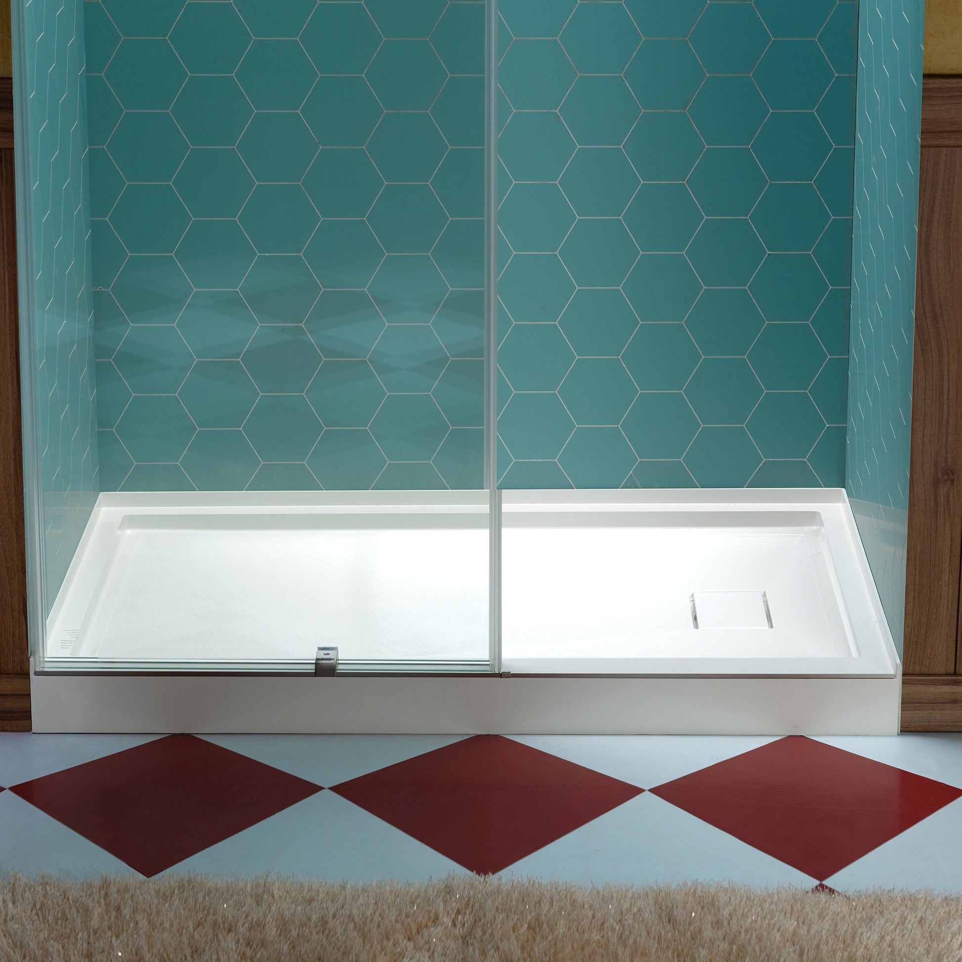 [DIMENSIONS]: Measures 48 in. L x 32 in. W x 4-1/8 in. H with Right drain placement