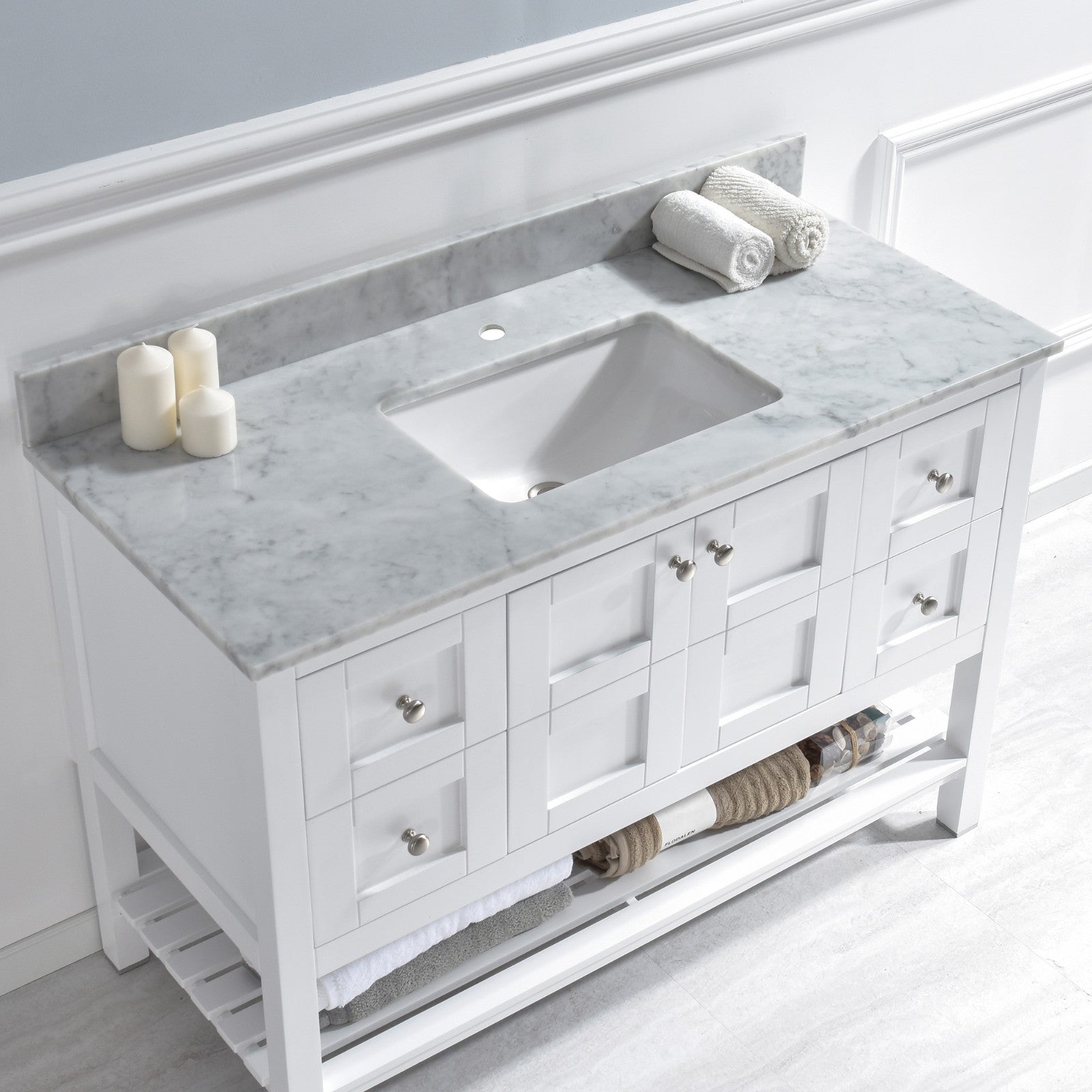 WOODBRIDGE 49"x22" Vanity Top with Single Under Mount Rectangle Bowl, Carrara White Marble, Pre-drilled with Single hole Faucet set up Option