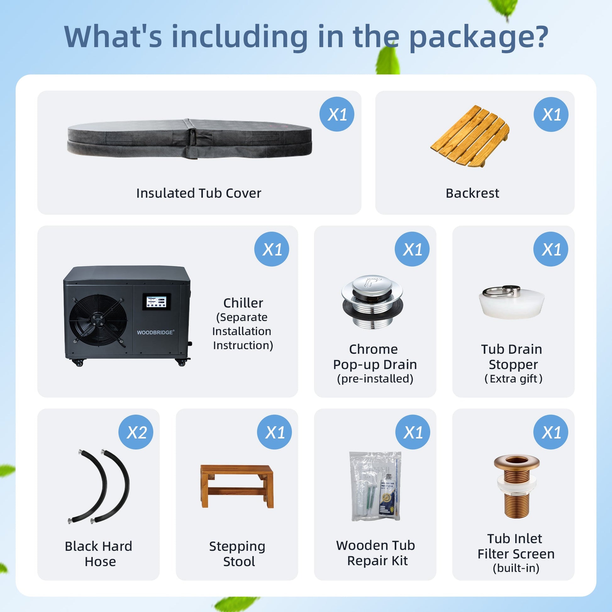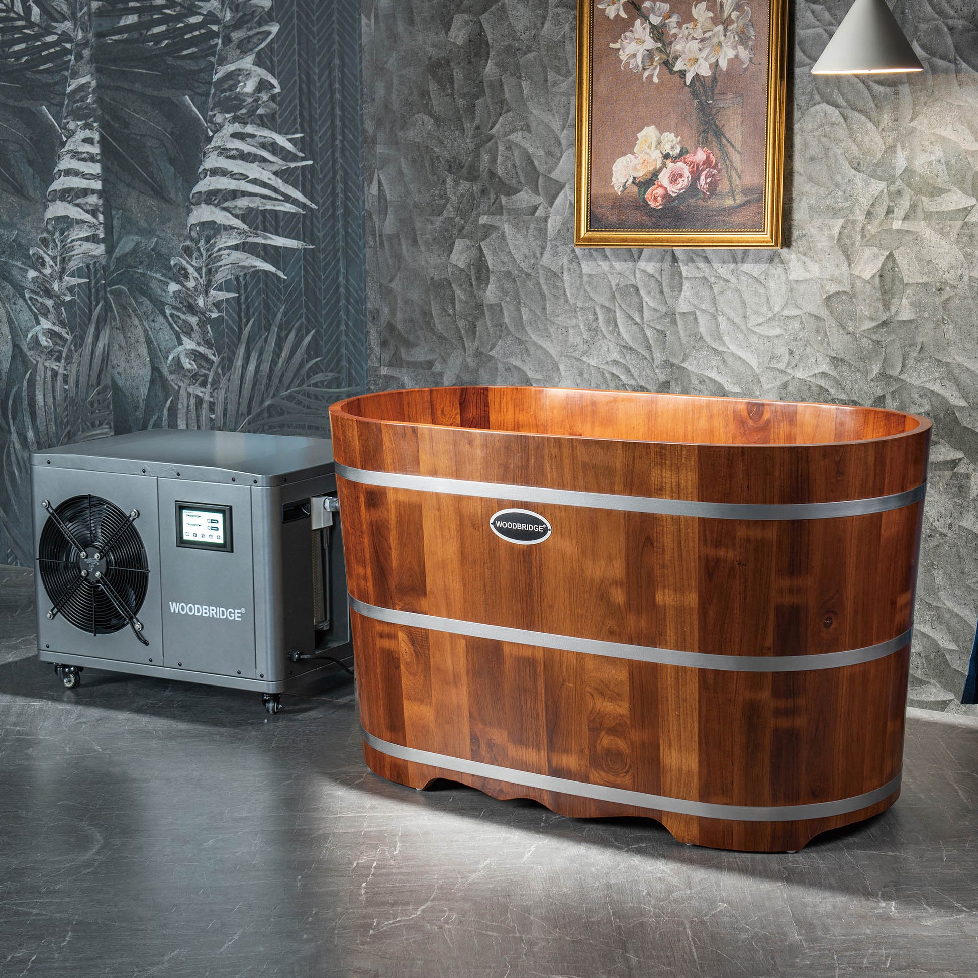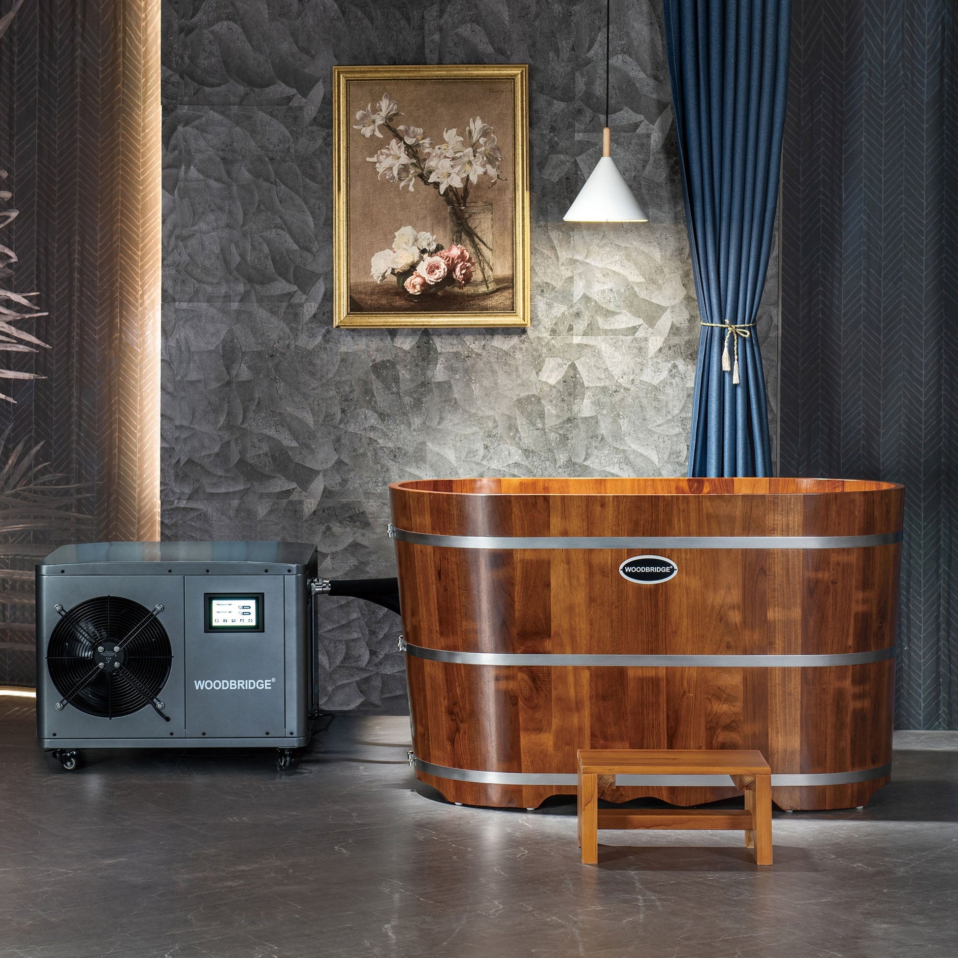 WOODBRIDGE 54" Cold Plunge Tub with 1.3 HP High-Performance Cooling and Heating Chiller in Gray, Ozone sanitation, Filter circulation system, Insulated Tub Lid, Wood Stool, Wood Seat