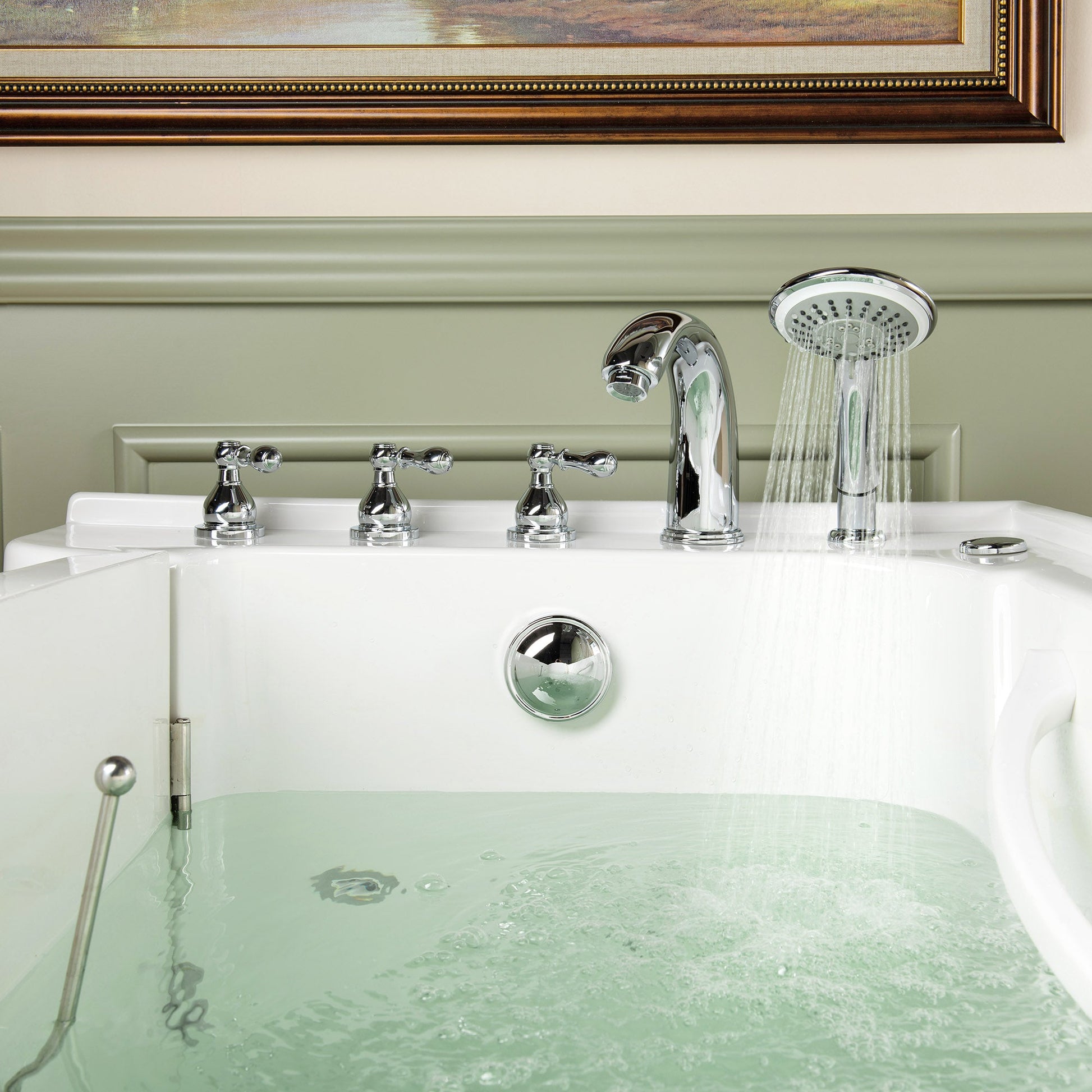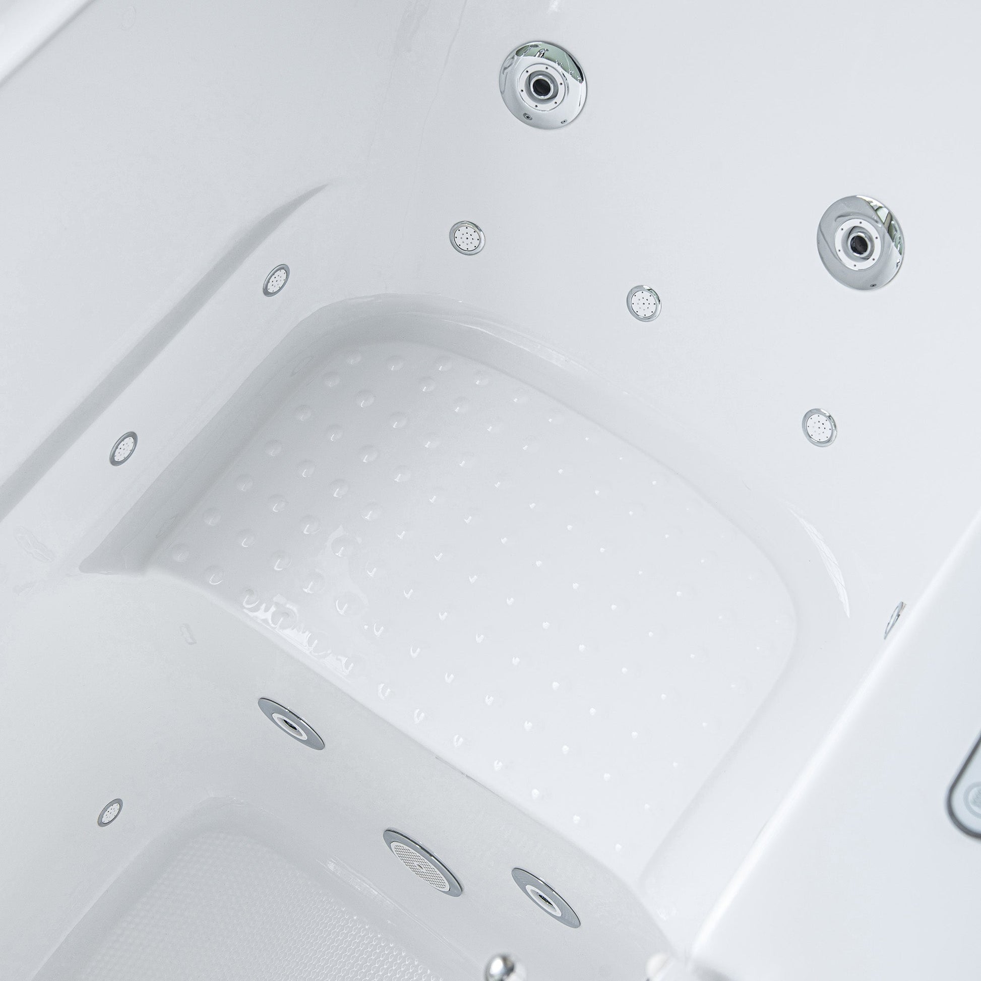 ? [SAFETY AND COMFORT ]: ADA height bult-in seat reduce stress on knees and back, non-Slip design bottom for secure standing and built in safety hand held safety grab bar to provide support and balance while getting in and out from the tub.