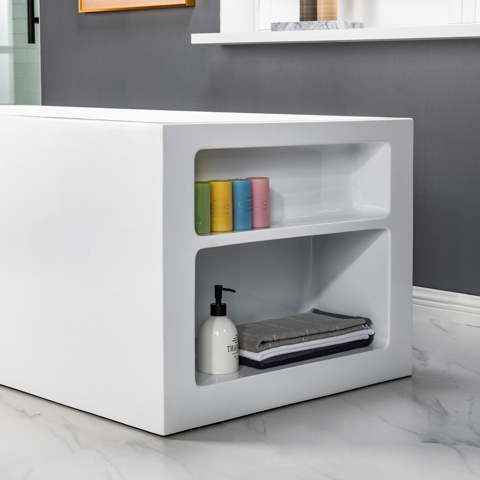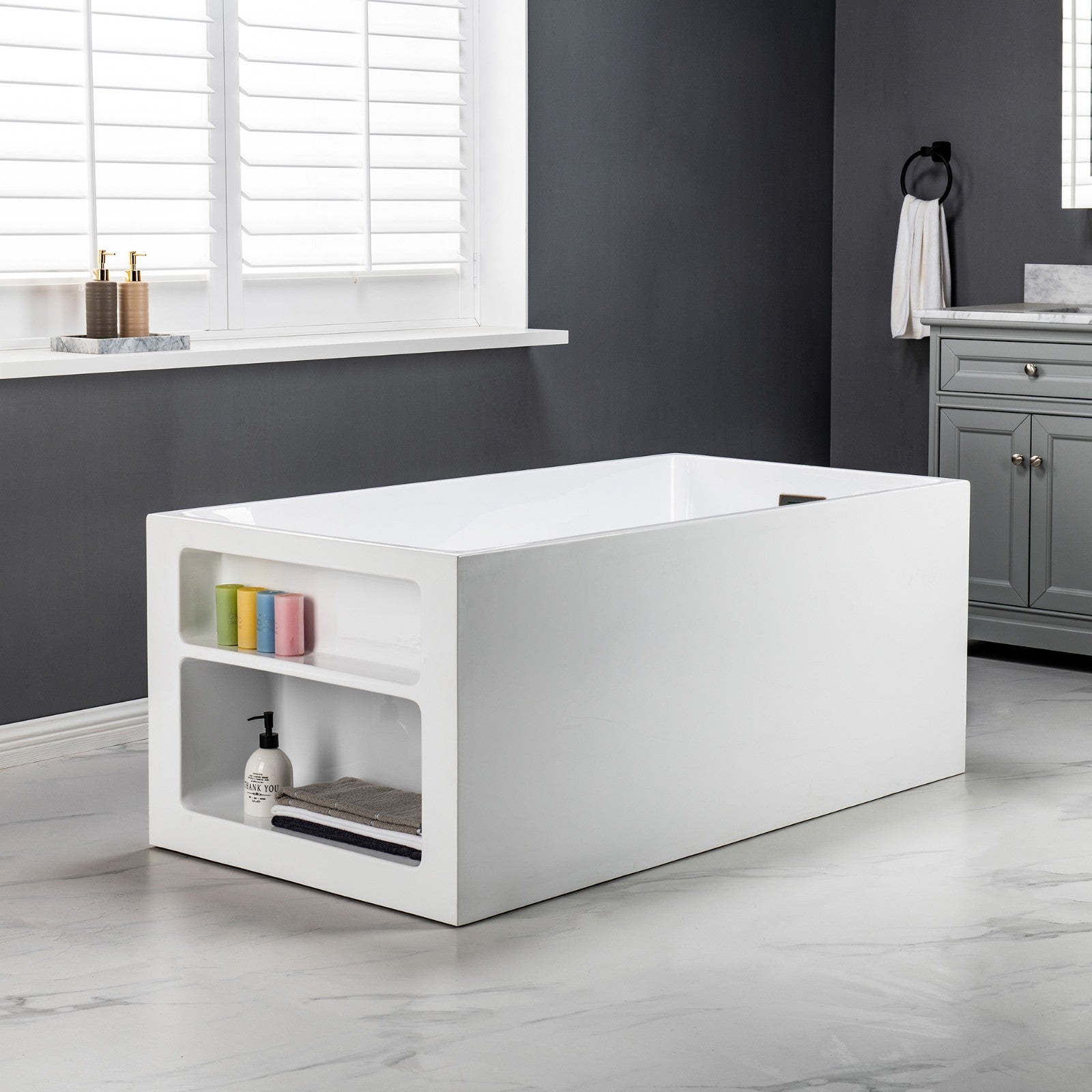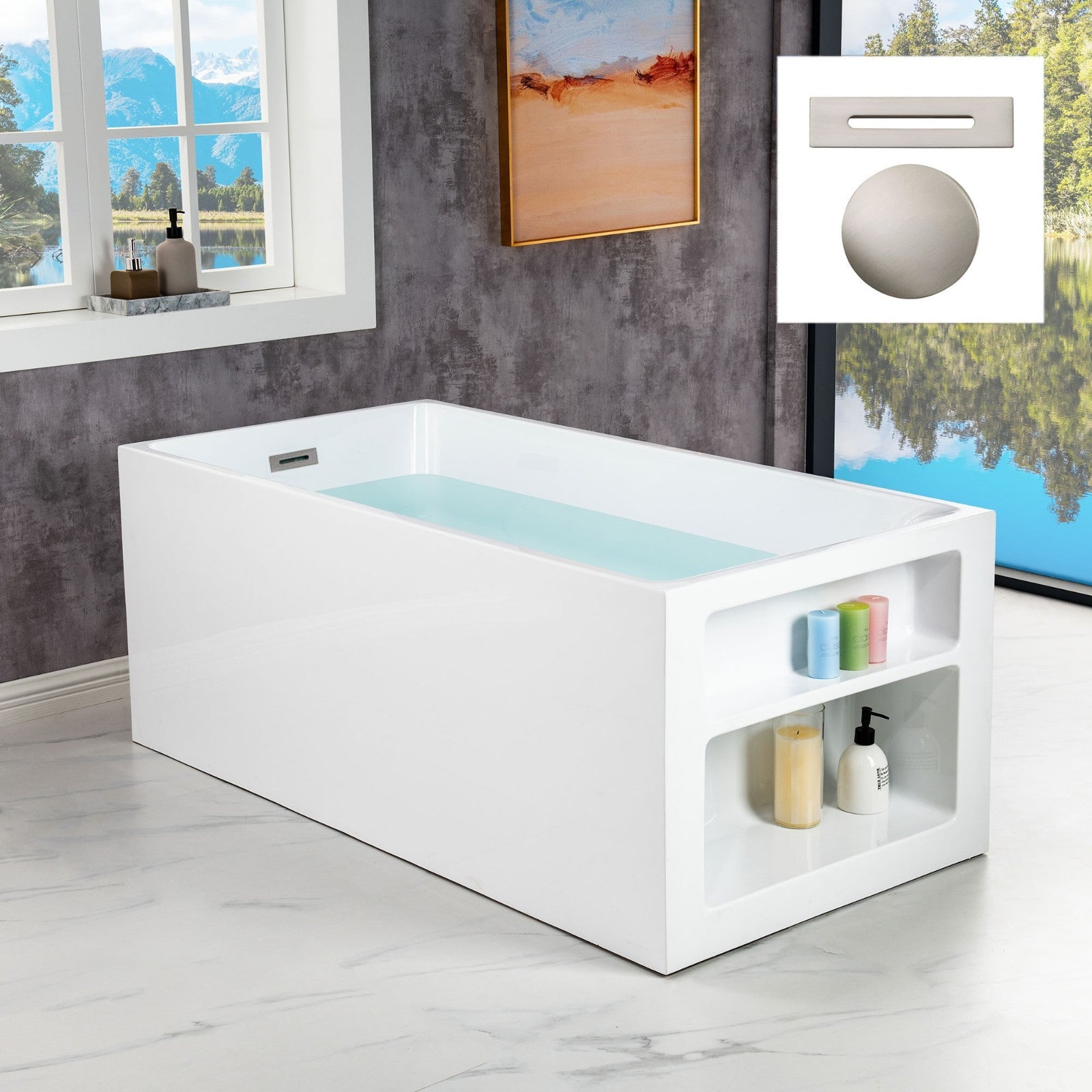 ? [UNIQUELY BUILT-IN STORAGE DESIGN]: With a uniquely built-in storage shelf on the side of the tub, this tub doesn’t only look fabulous but will give you extra storage room too.