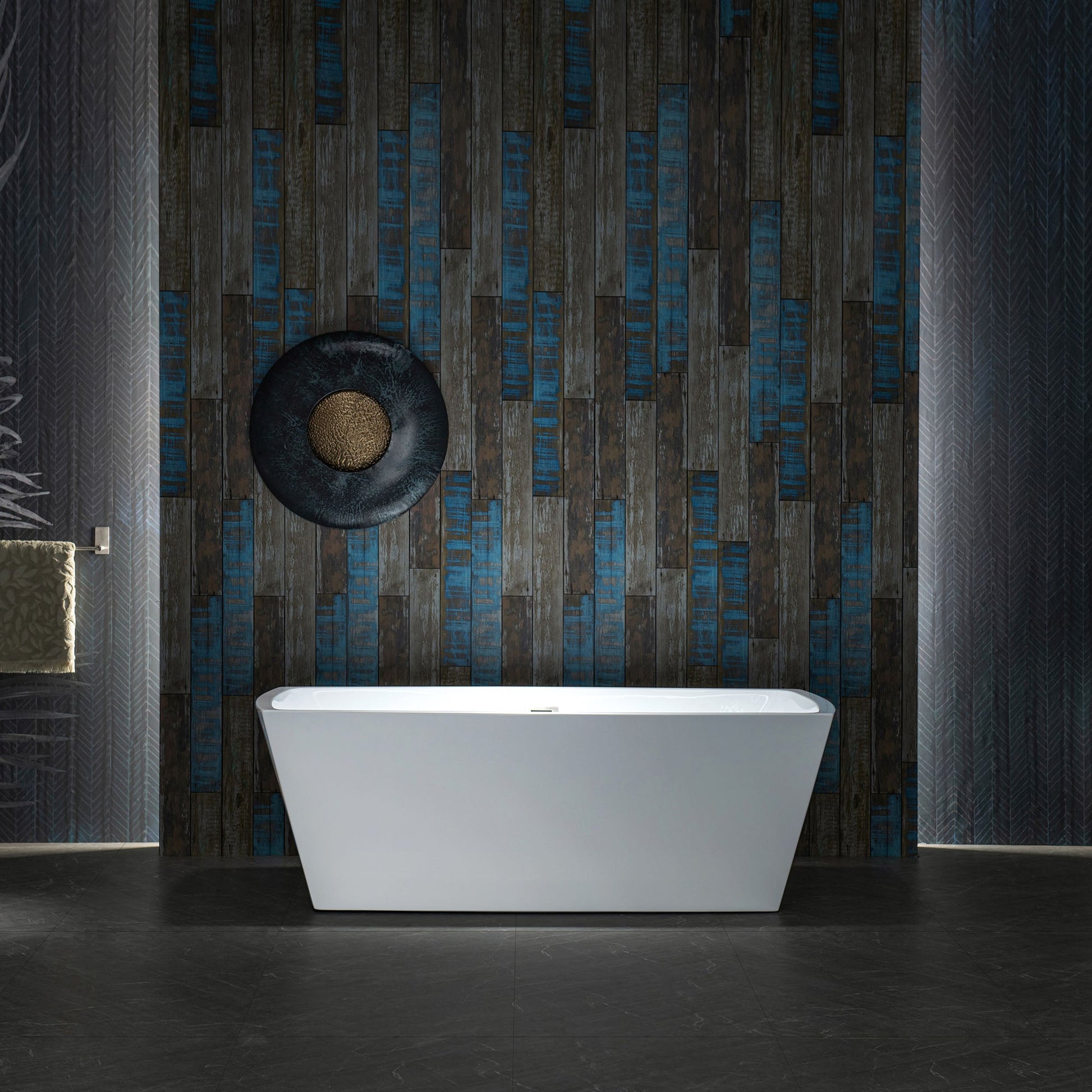 ? [DESIGN INSPIRATION]: WOODBRIDGE bathtub is luxury, comfort and chic style. Its size is ample yet economical allowing it to fit a variety of spaces. Gently sloping lines follow the natural curves of your body providing exceptional comfort.