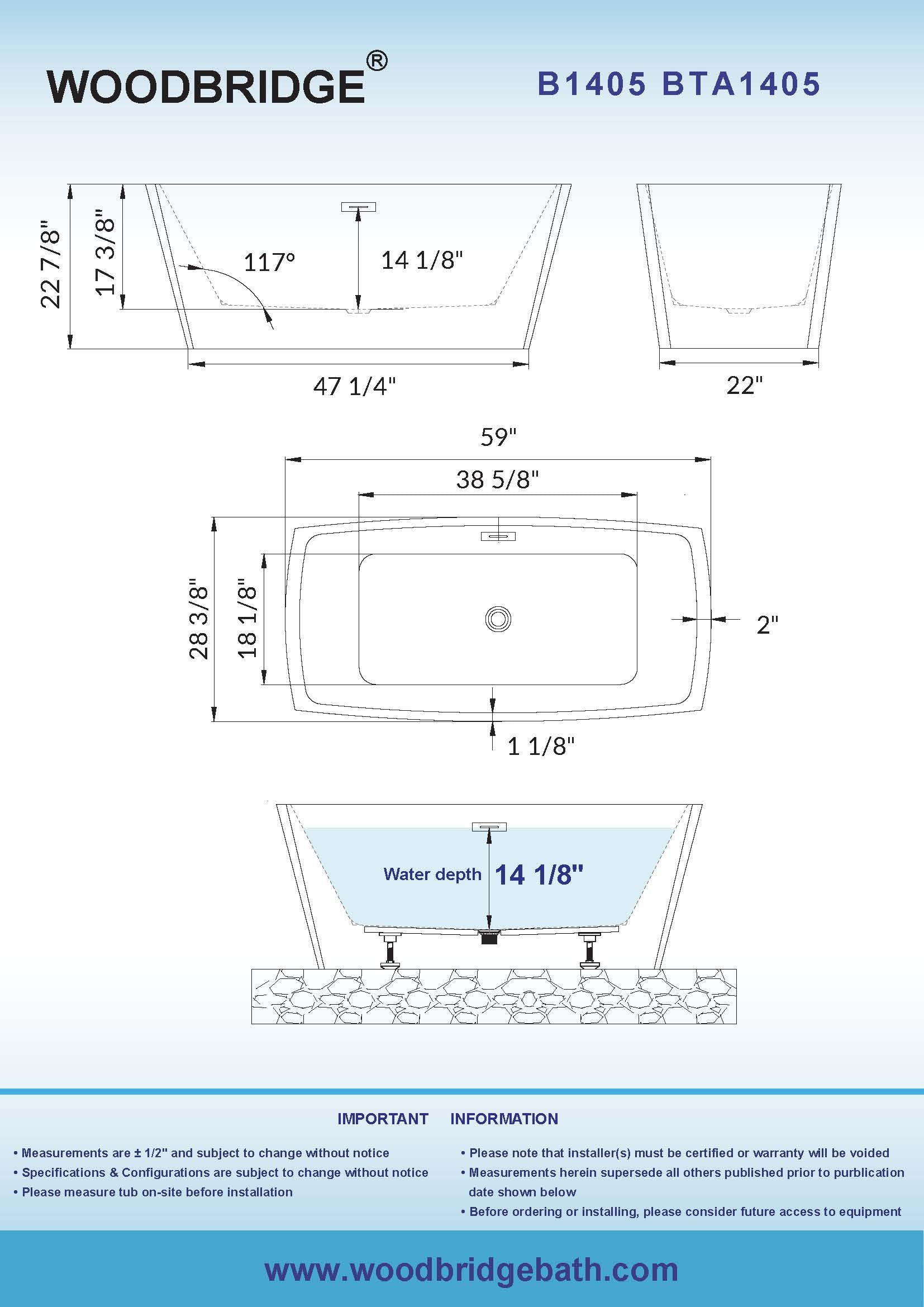 ? [PREMIUM QUALITY CONSTRUCTION]: WOODBRIDGE bathtub is made from 100% high gloss white LUCITE acrylic and reinforced with ASHLAND resin & fiberglass. All of these are top quality material which rarely used by others due to an excessive cost.
