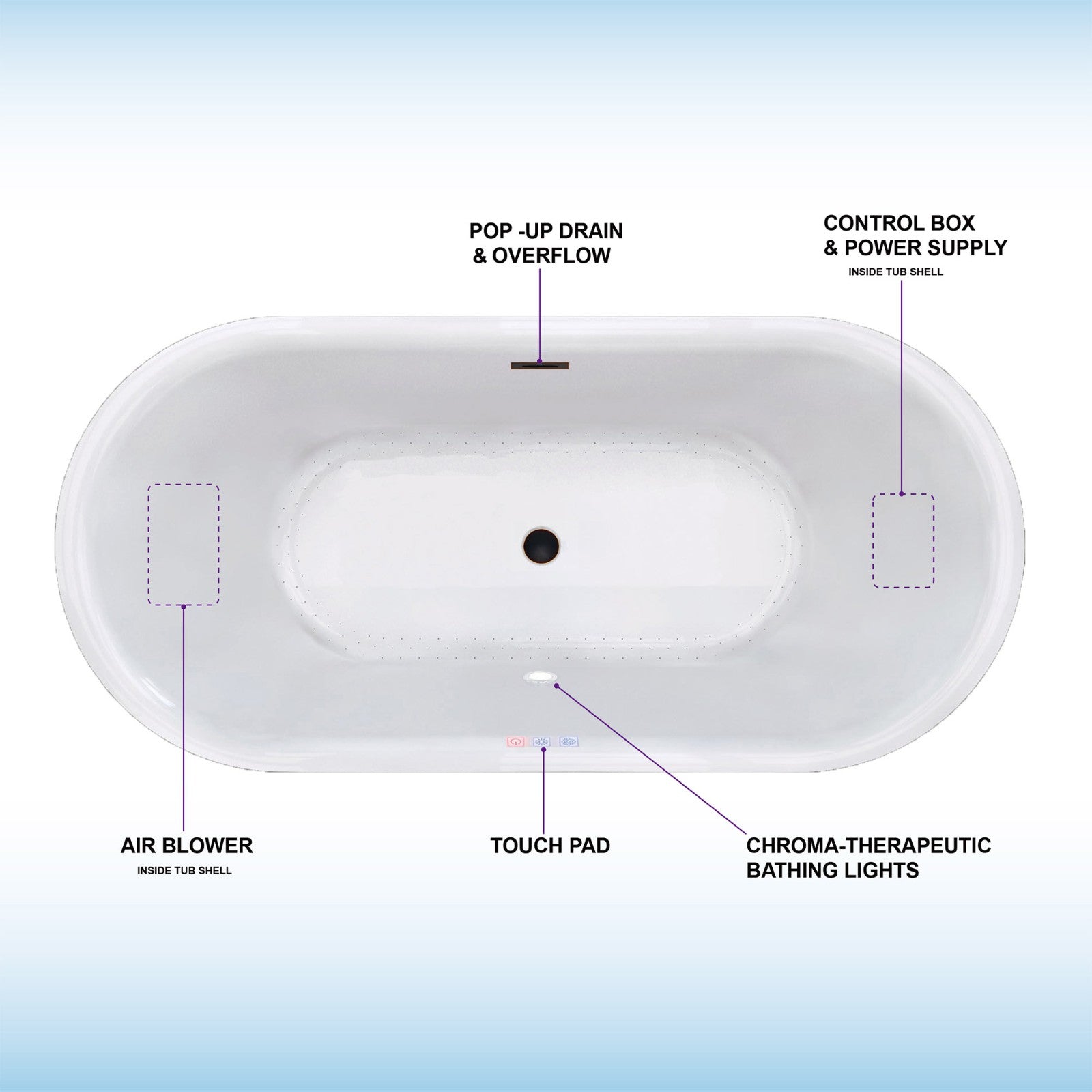 WOODBRIDGE 59" Contemporary Freestanding Acrylic Air Bubble Soaking Bathtub