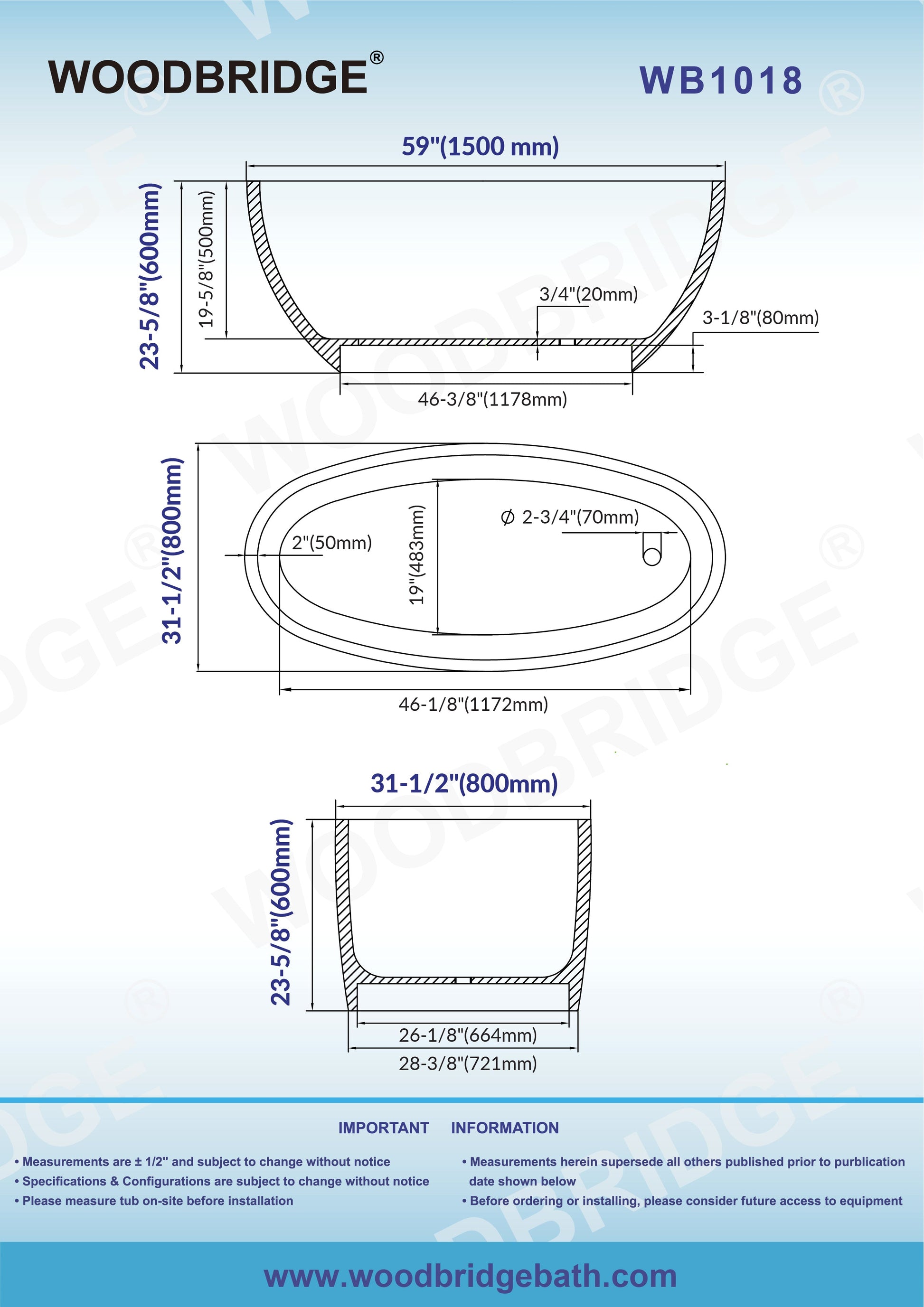 - Tub Length: 59-61 in