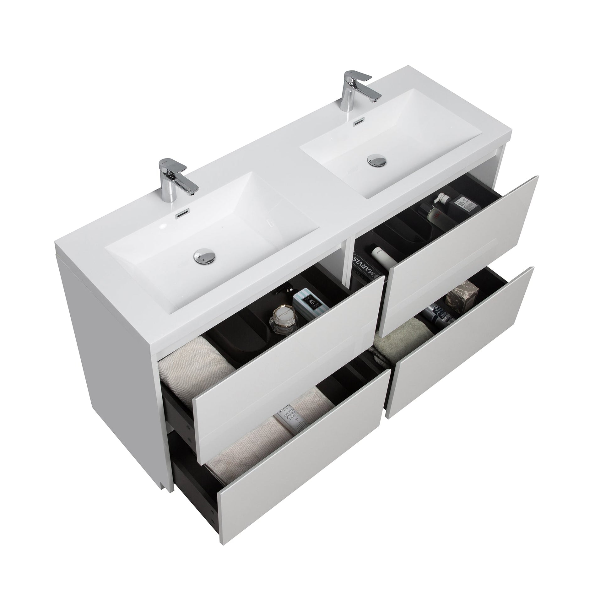 ? [STURDY STRUCTURE]: Freestanding vanities ensure stability without wall mounting, offering a durable foundation for double sinks.
