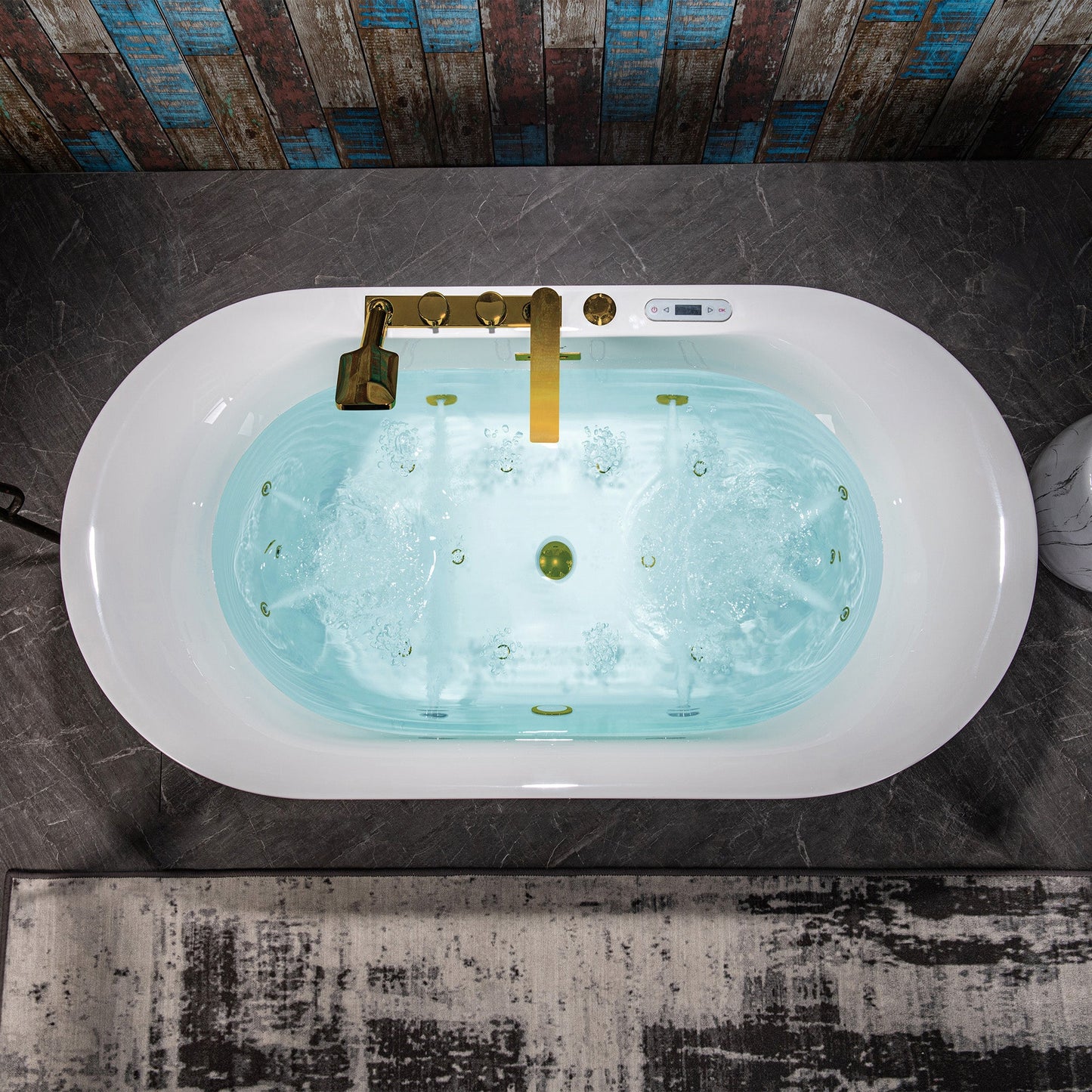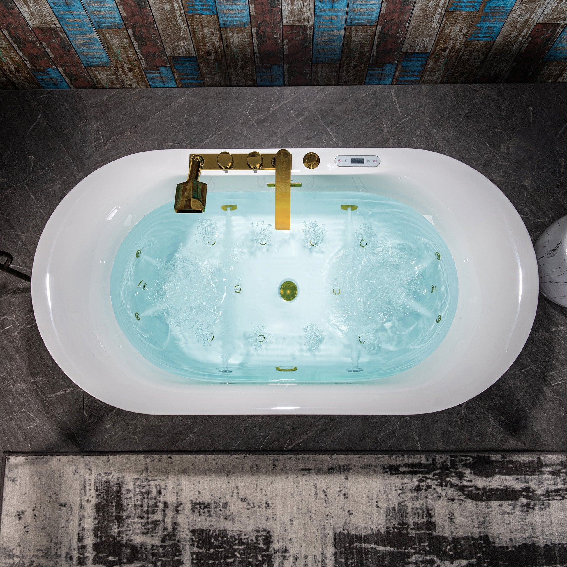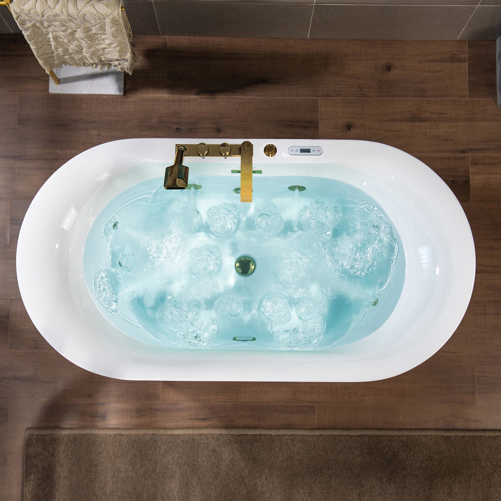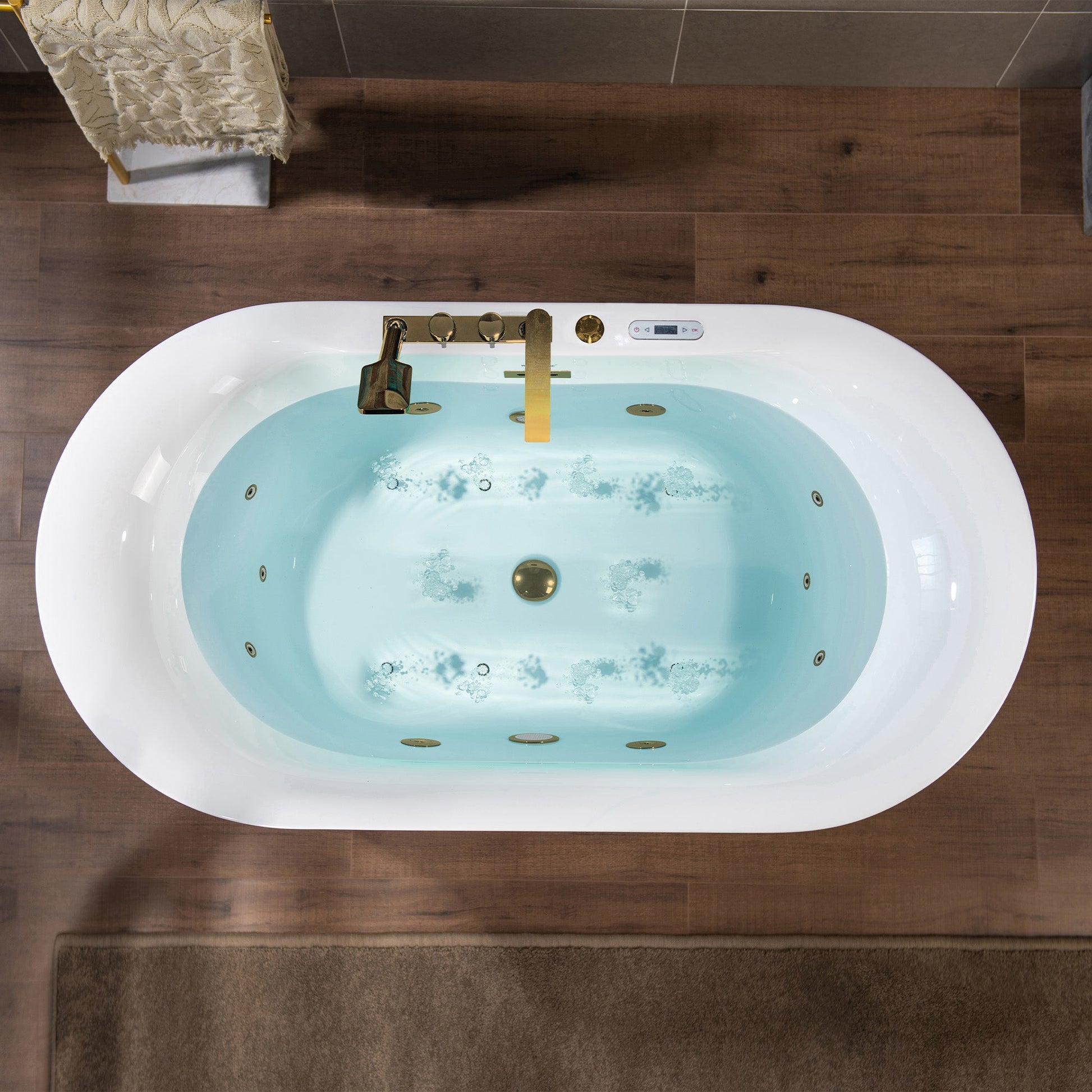 WOODBRIDGE 59" x 31-1/2" Whirlpool and Air Bath Heated Soaking Combination Tub with Adjustable Speed Air Blower, Faucet and Display Control Panel, Brushed Gold Finish Trim and Drain Kit
