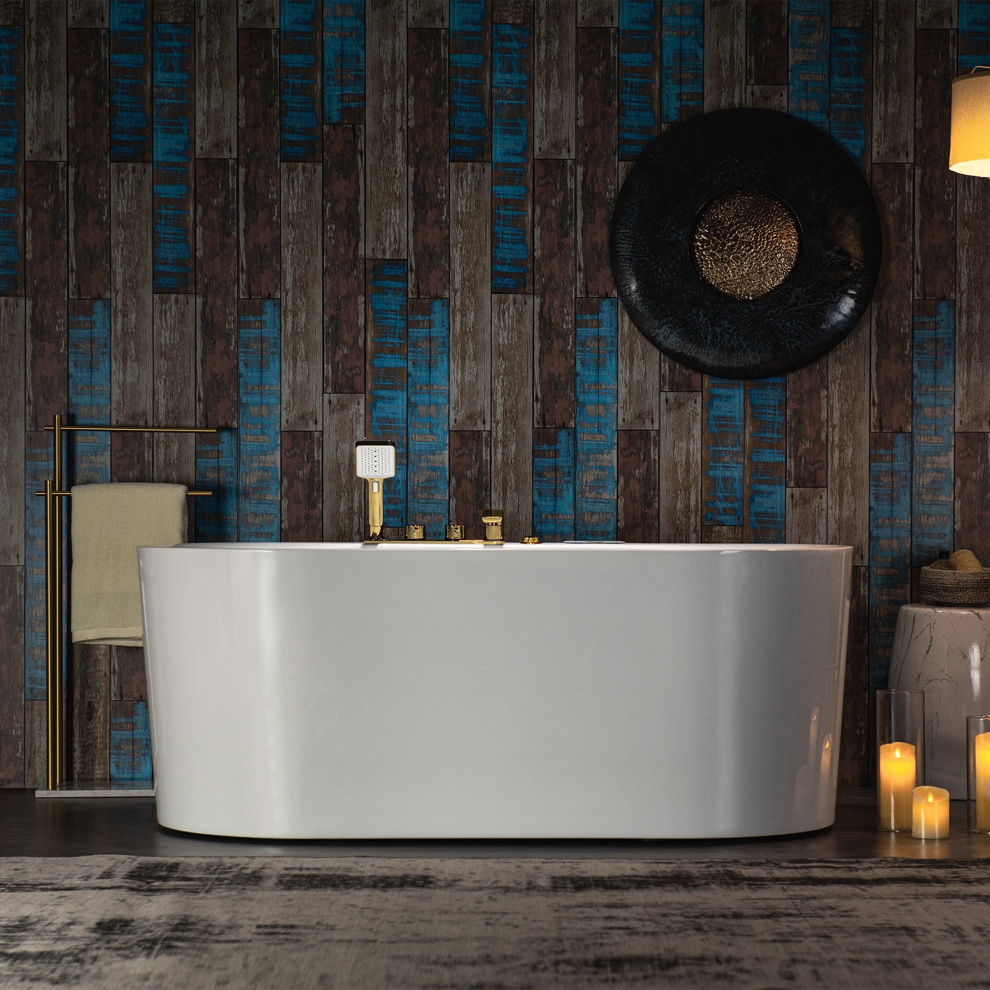 ? [PACKAGE INCLUDED]: Bathtub x 1, Pre-installed faucet x 1, Pre-assembled Brushed Gold finish drain and overflow x 1, user guide and installation manual x 1. Excellent package - a substantial carton box is used to transport bathtubs, ensuring a safe delivery.