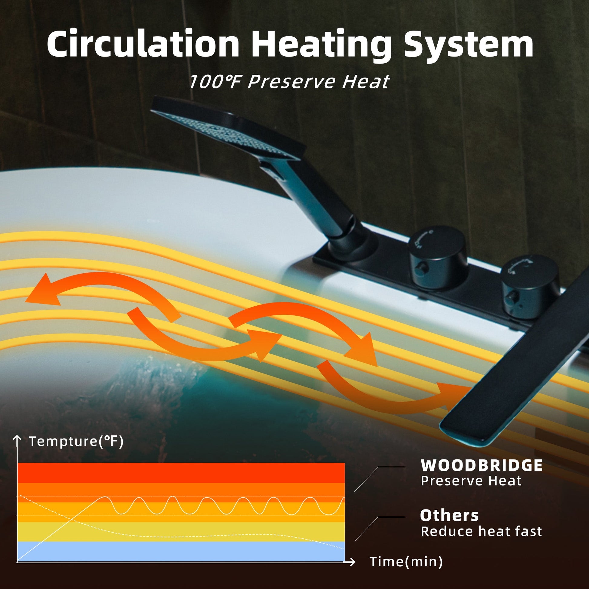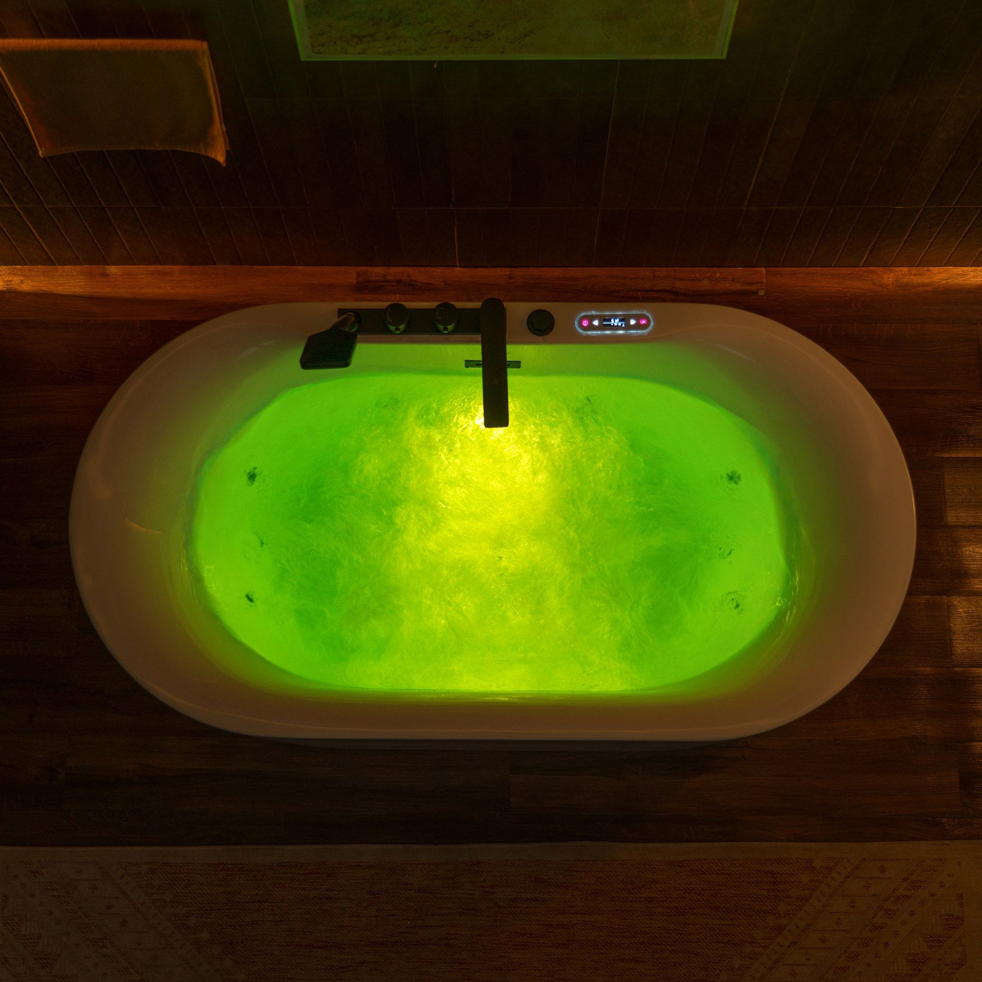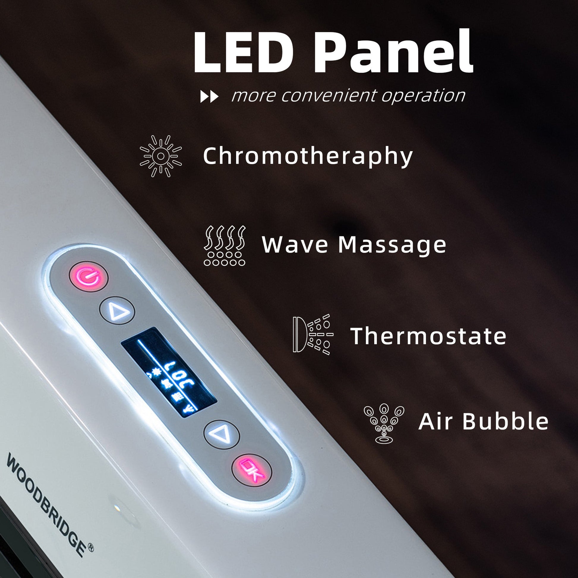 [HEATED SOAKING TUB]: With Inline Heater. This bathtub allows for a longer soak without adding more hot water. Setting the water temperature on LED control panel. Enjoy a hot bath for the entire bathing experience.