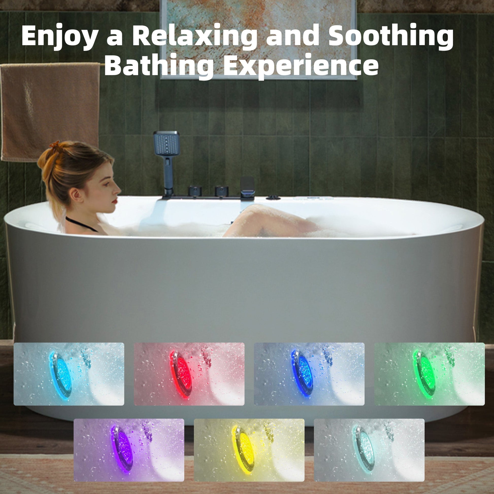 [Chromatherapy Lights]: Our chromatherapy LED lights feature has been upgraded, allowing users to manually select their preferred color and even pause the lighting effect. This enhancement enhances the spa experience, whether you seek to uplift your mood or simply unwind in relaxation.