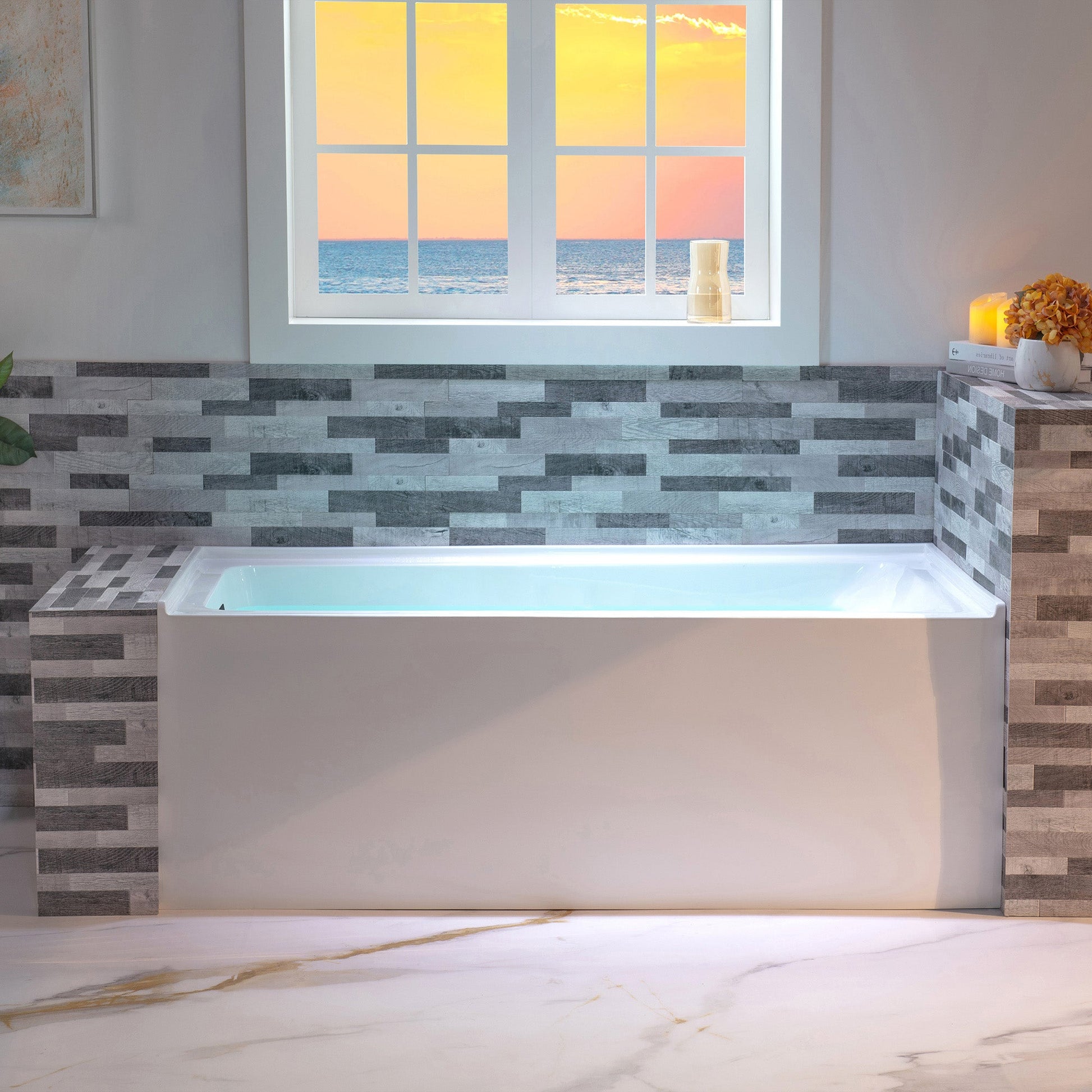 WOODBRIDGE 60" Acrylic Rectangular Alcove Soaking Bathtub in White with Left Drain