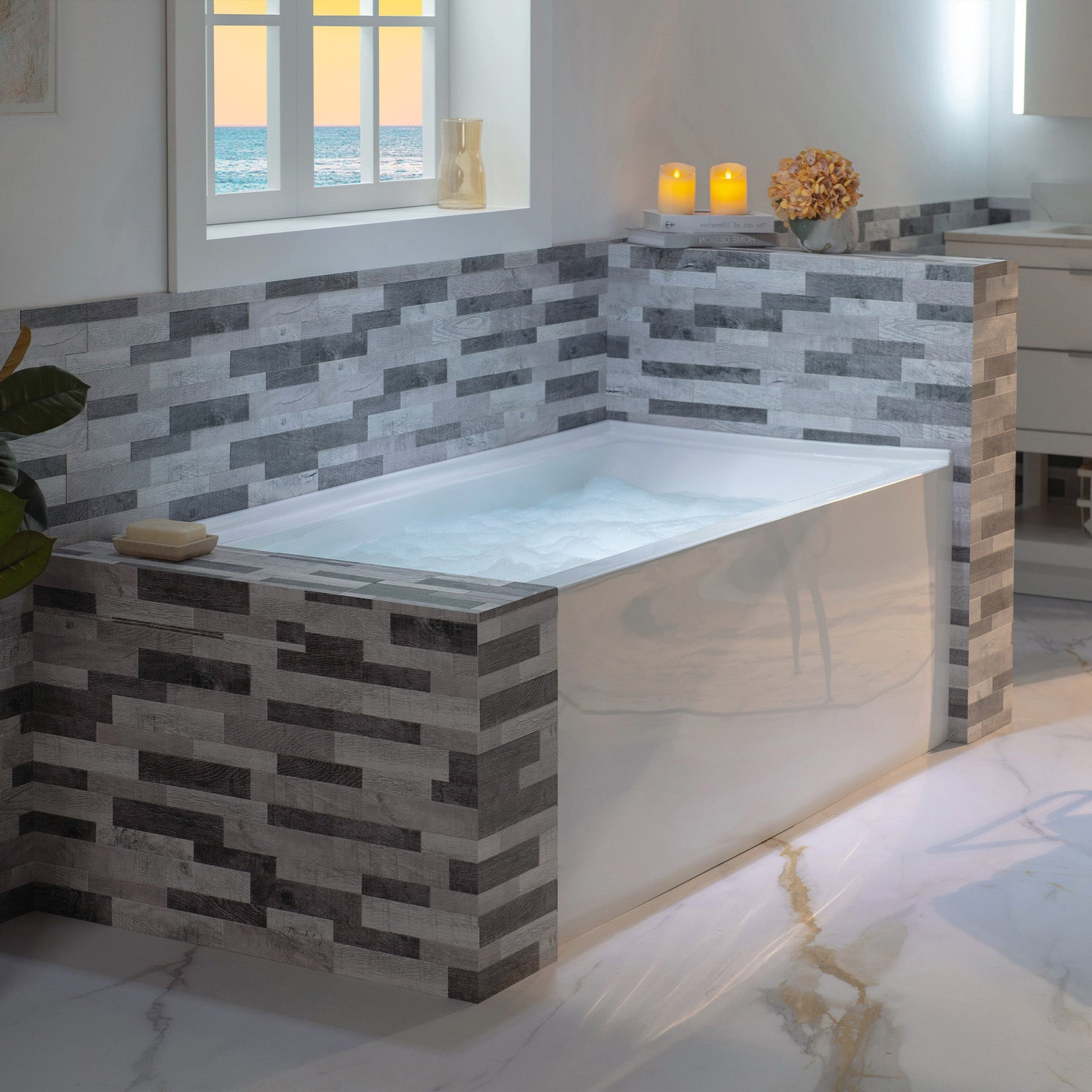 WOODBRIDGE 60" Acrylic Rectangular Alcove Soaking Bathtub in White with Left Drain