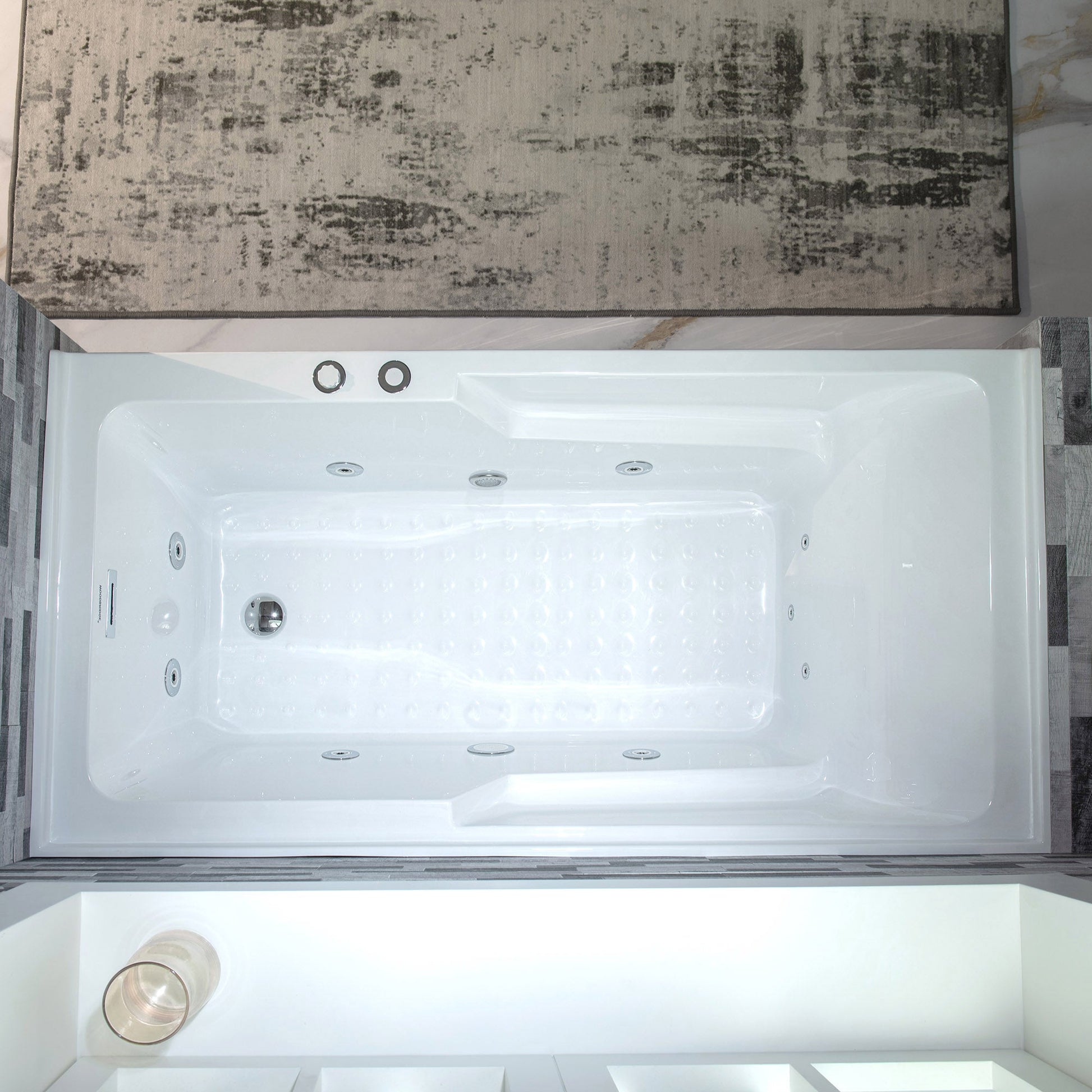 WOODBRIDGE 60" Alcove Acrylic Rectangular Whirlpool Heated Jetted Tub in White with Right Drain