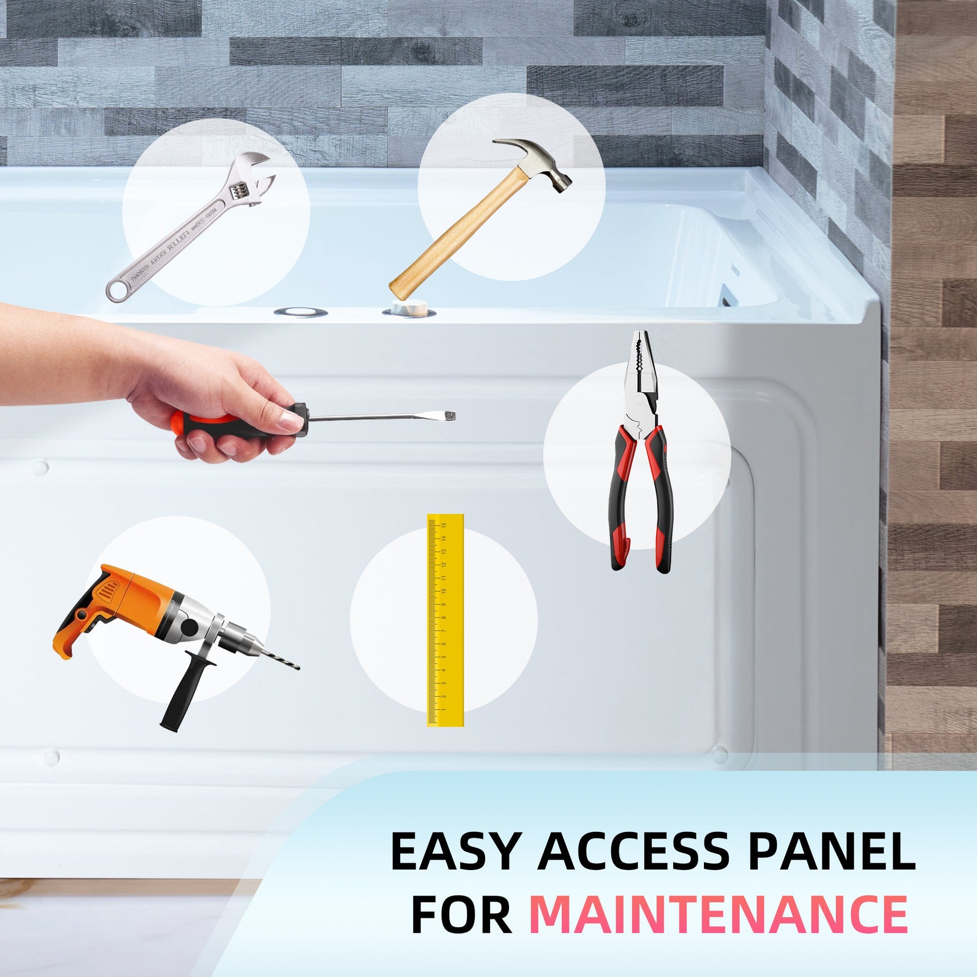? [REMOVABLE ACCESS PANEL]:The bathtub skirt has a removable access panel to access all equipment for any needed maintenance and removes the need for installing an access panel in your wall.