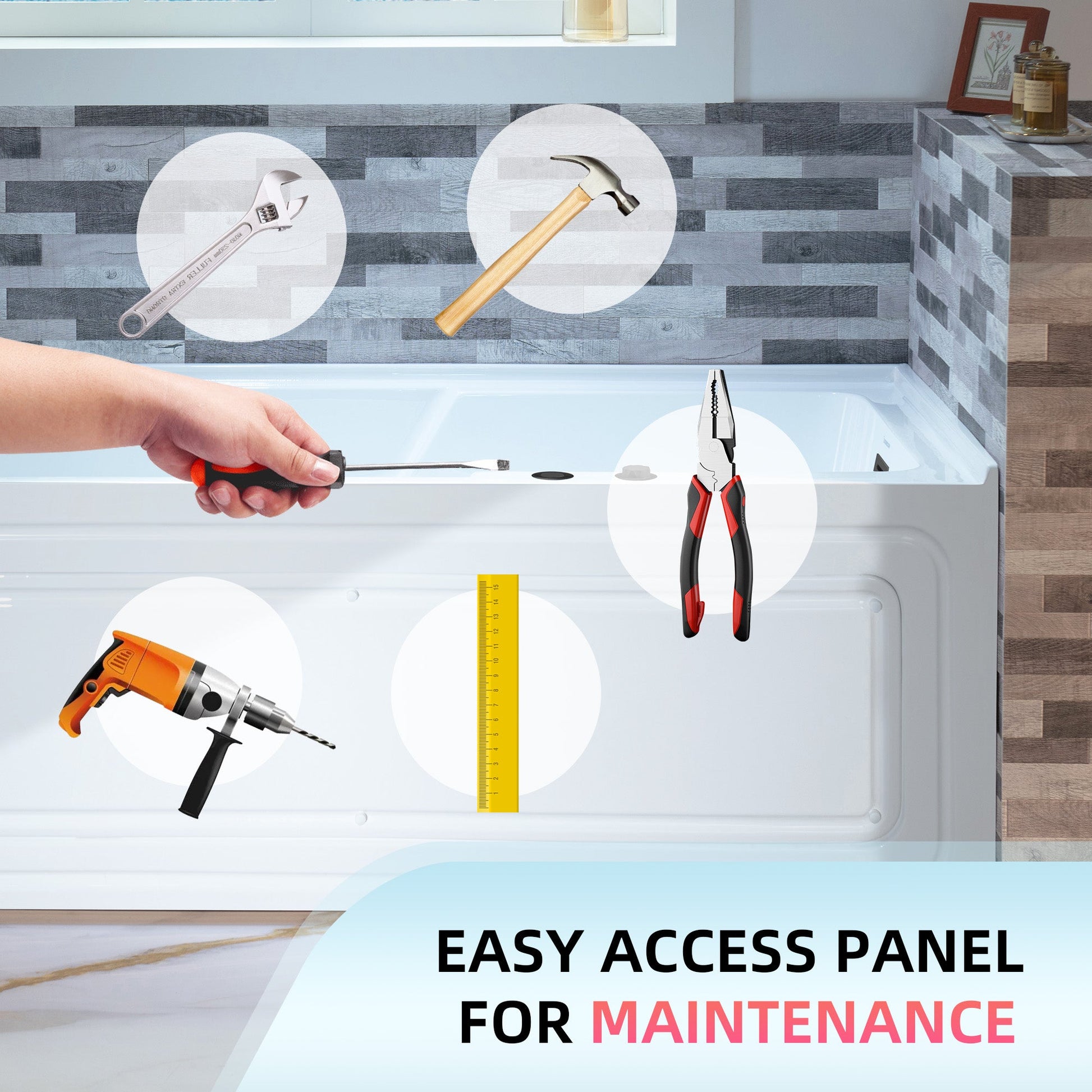 ? [REMOVABLE ACCESS PANEL]:The bathtub apron has a removable access panel to access all equipment for any needed maintenance and removes the need to install an access panel on bathroom wall.