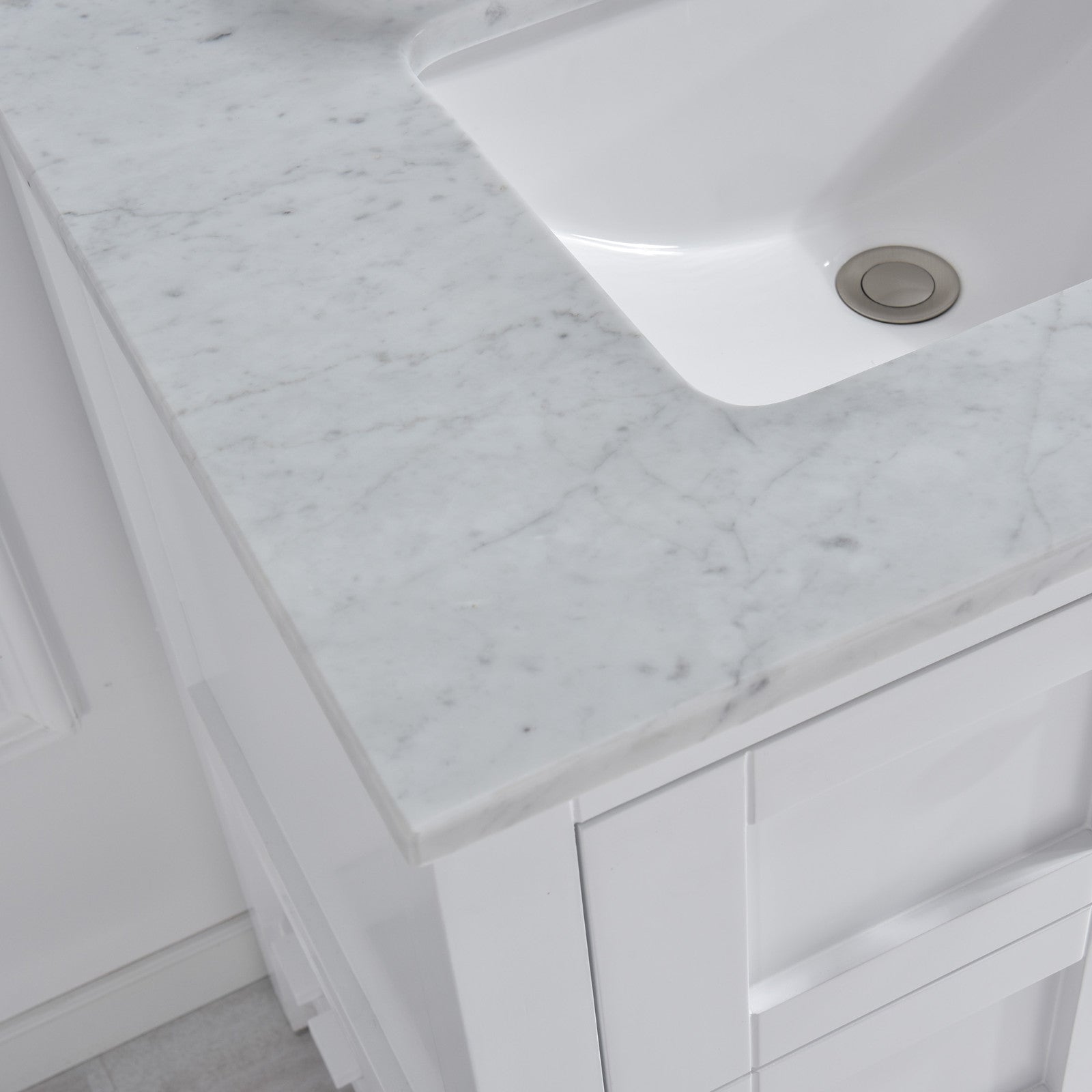 ? [Elegant & Stylish Top]: Warmly elegant and stylish, Carrara marble vanity top complement most Bathroom designs and coordinate with both light and dark cabinetry. High-end and classic natural stone top Pre-sealed and Polished for added protection.