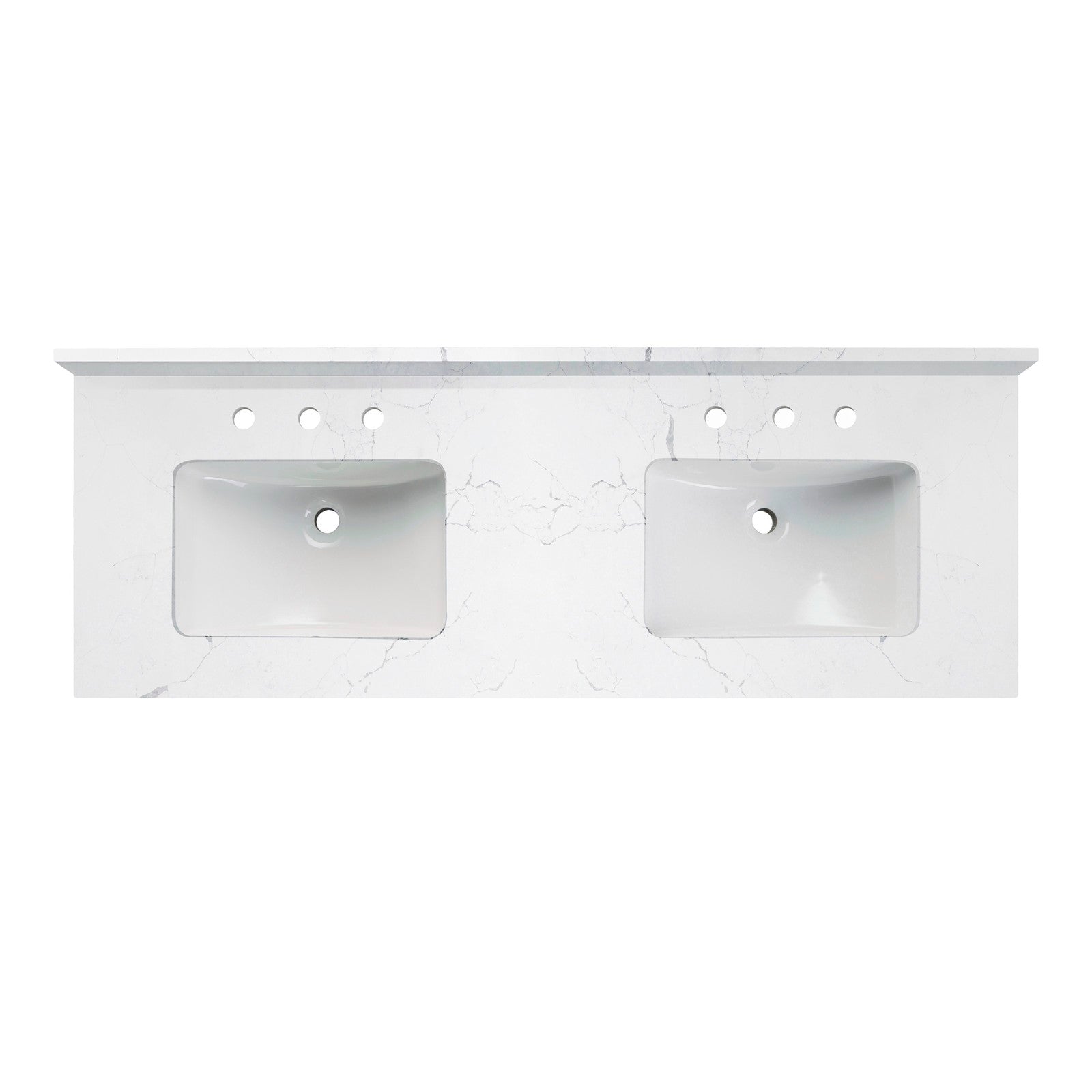WOODBRIDGE 61" x 22" Vanity Top with Double Under Mount Rectangle Bowls, Fish Belly Engineered stone, Pre-drilled with 3-hole for 4-inch Centerset Faucet set up Option